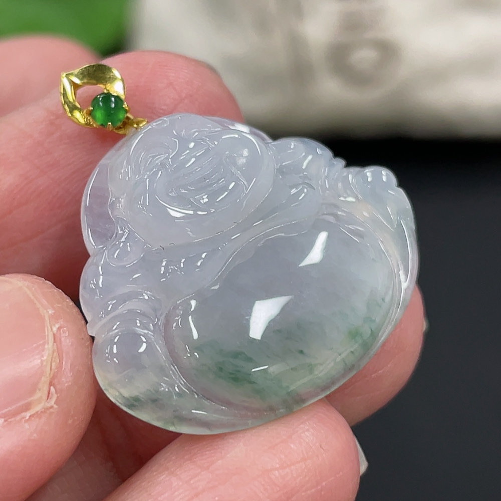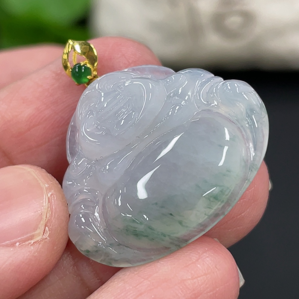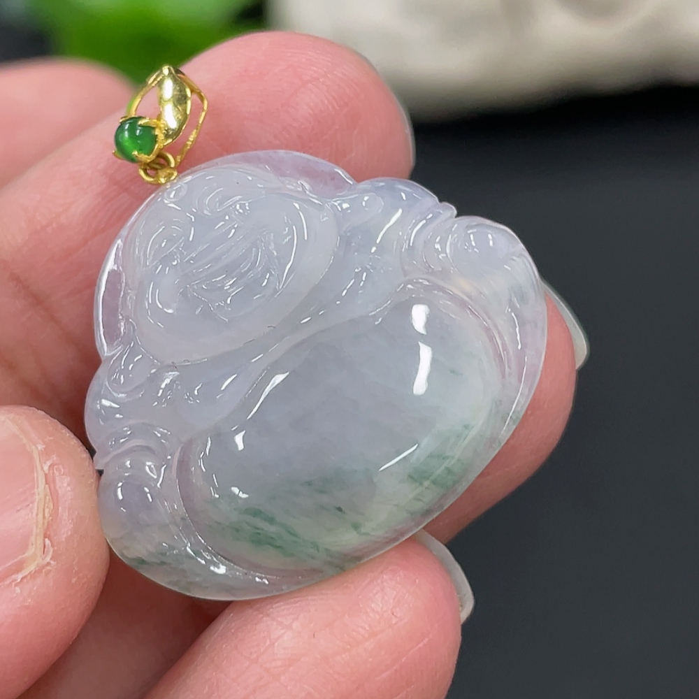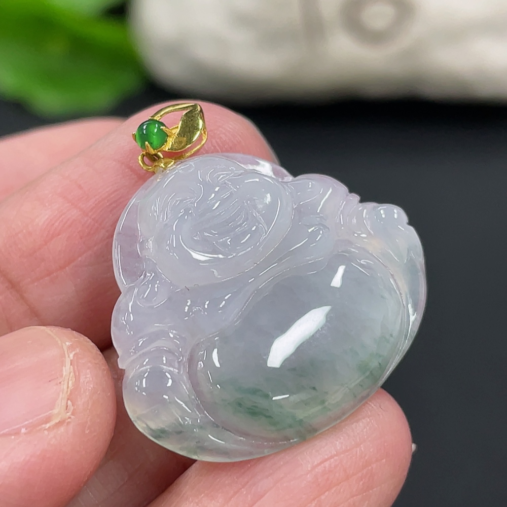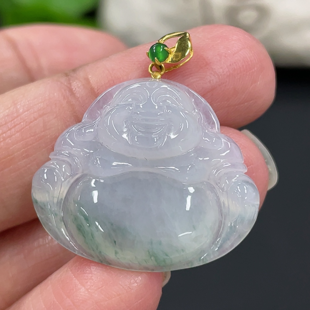 Jadeite Buddha Pendant with 18K Gold Clasp, Total Weight Approx. 4.77g