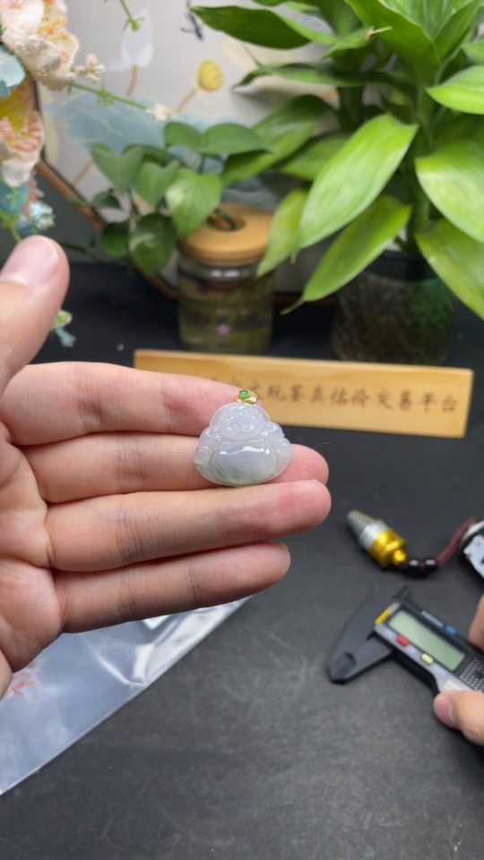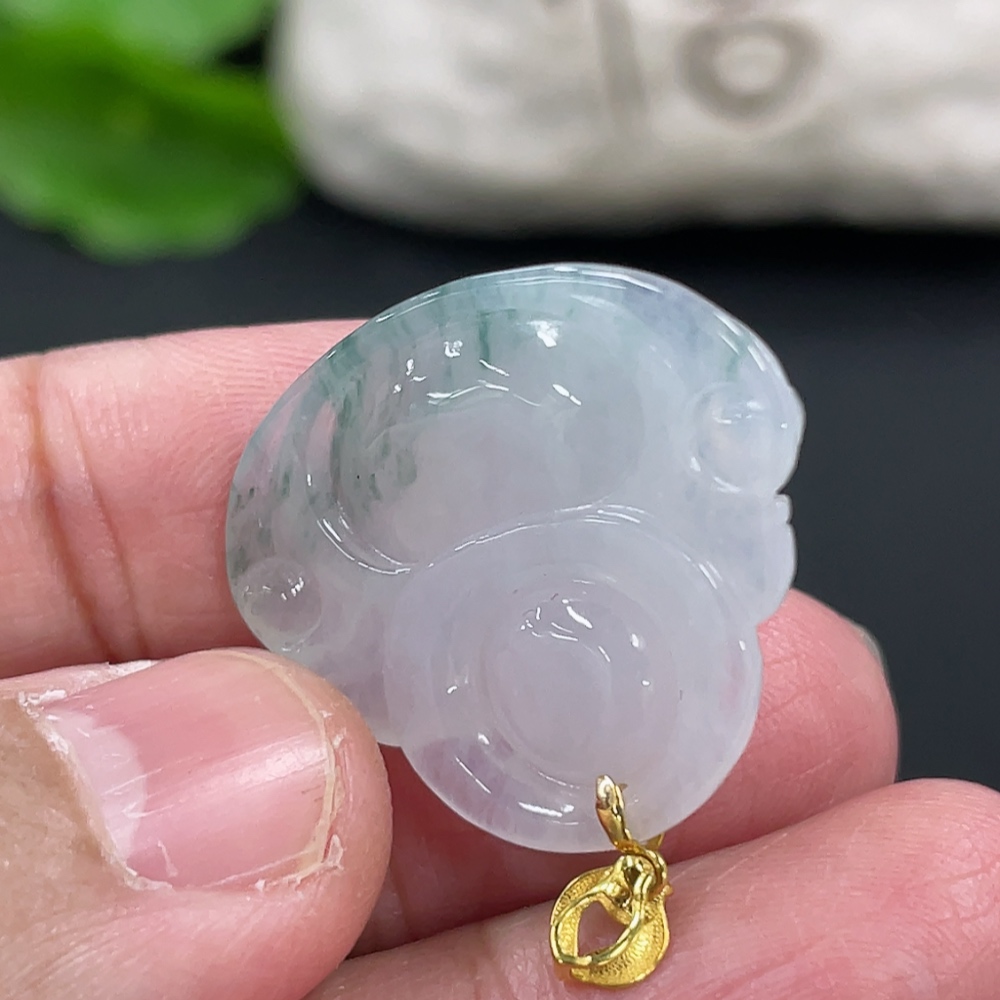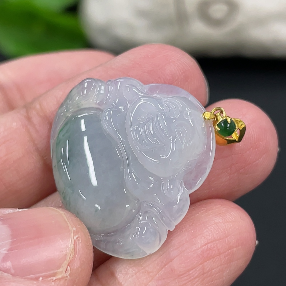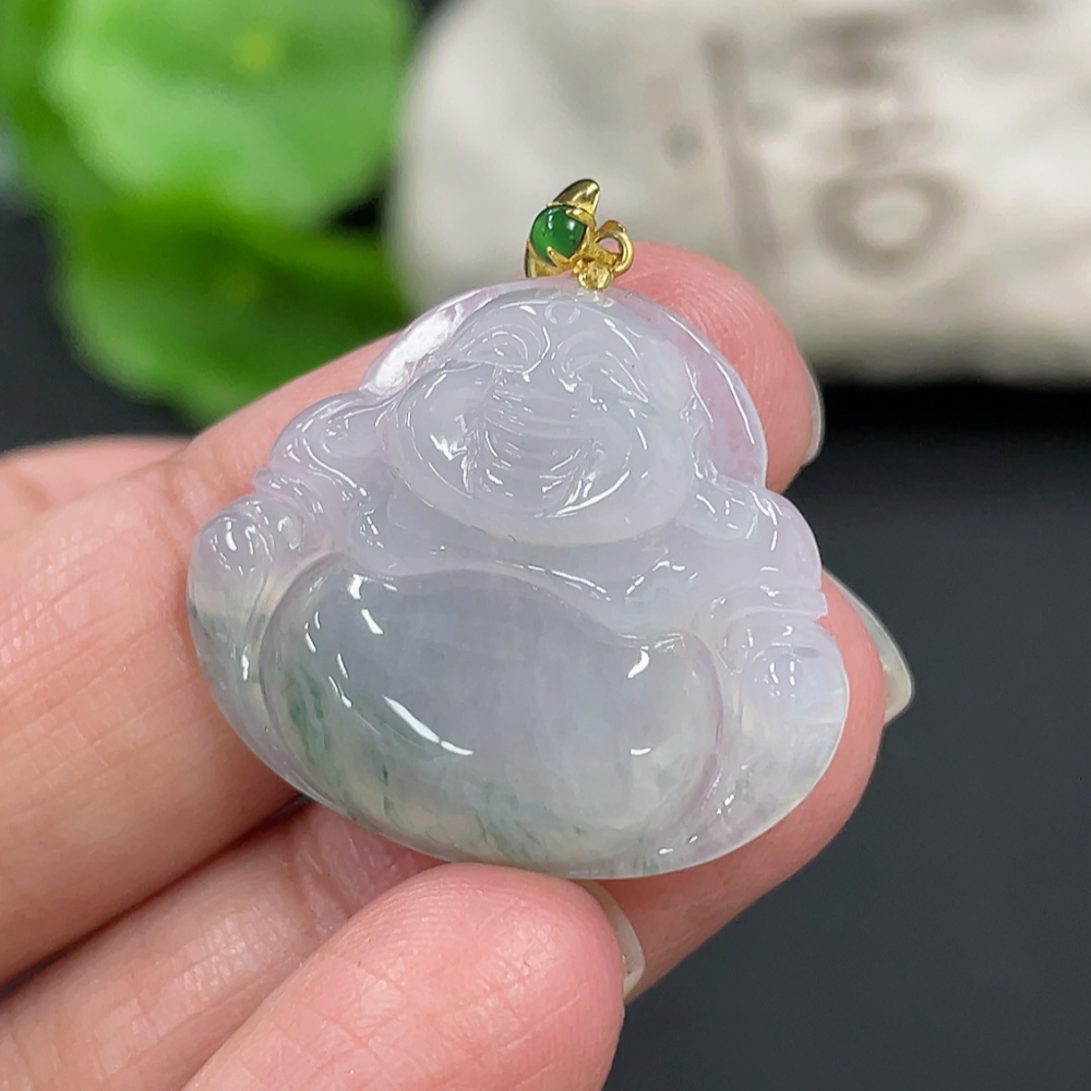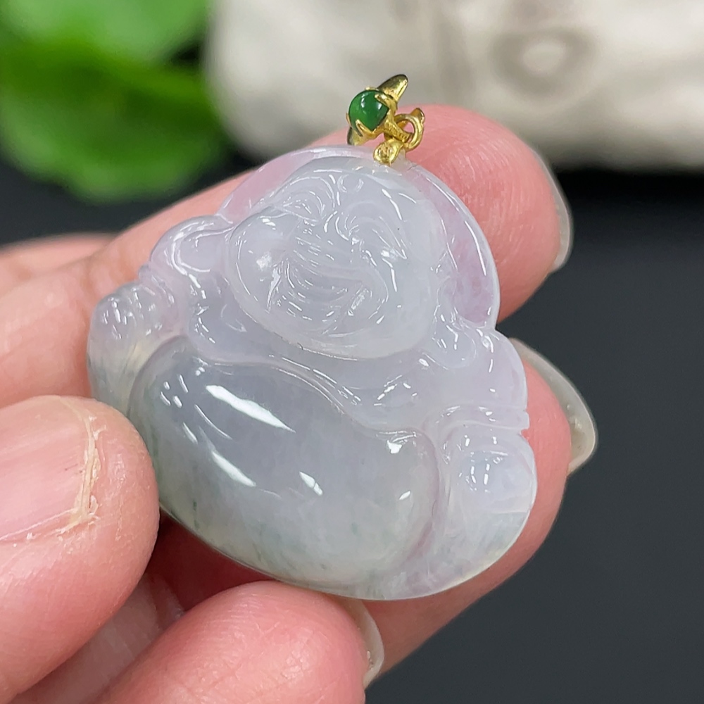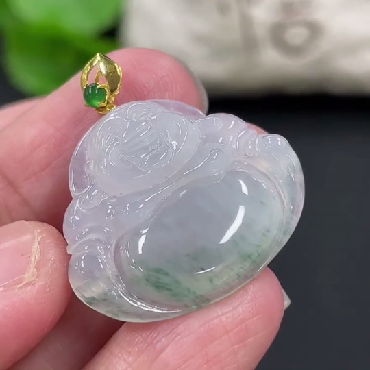 Jadeite Buddha Pendant with 18K Gold Clasp, Total Weight Approx. 4.77g
