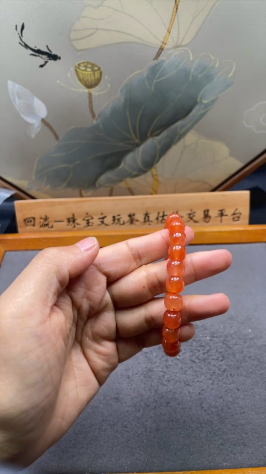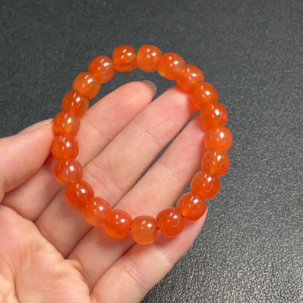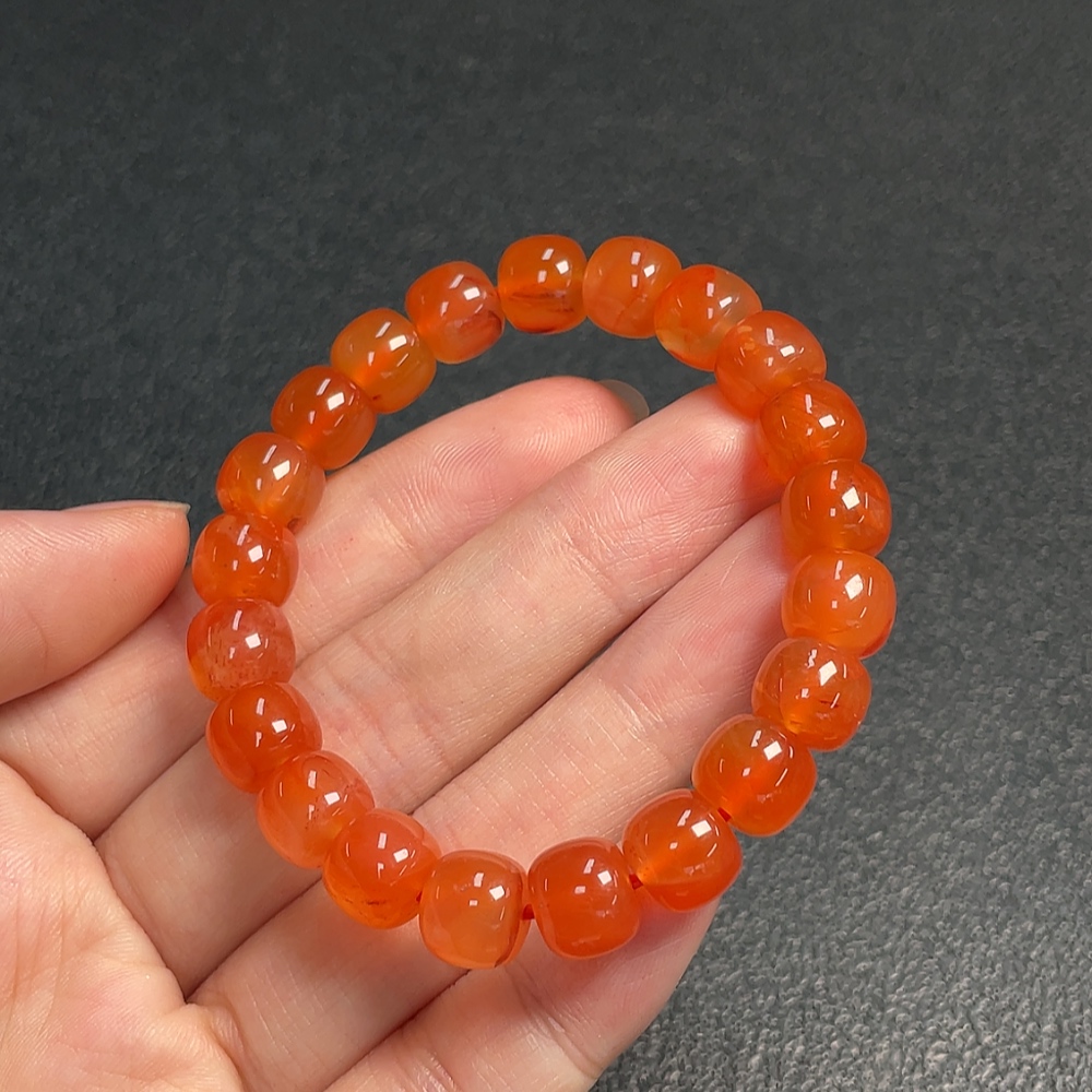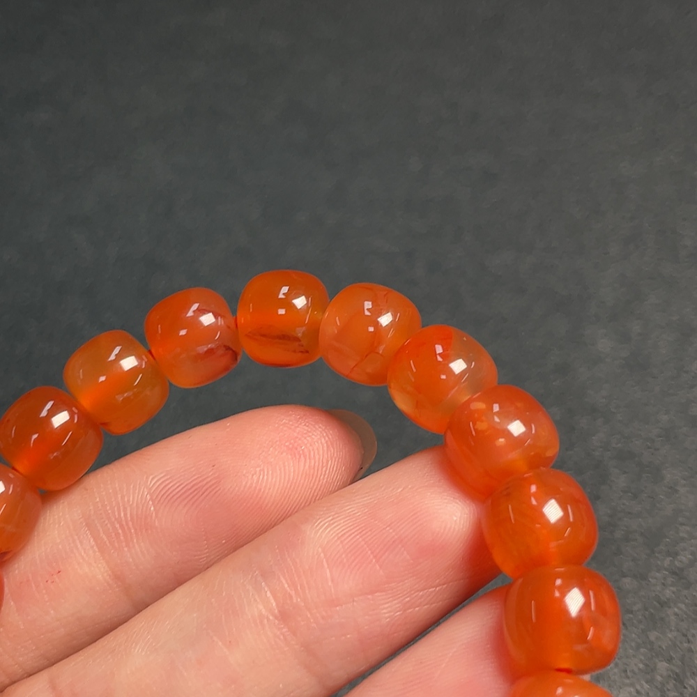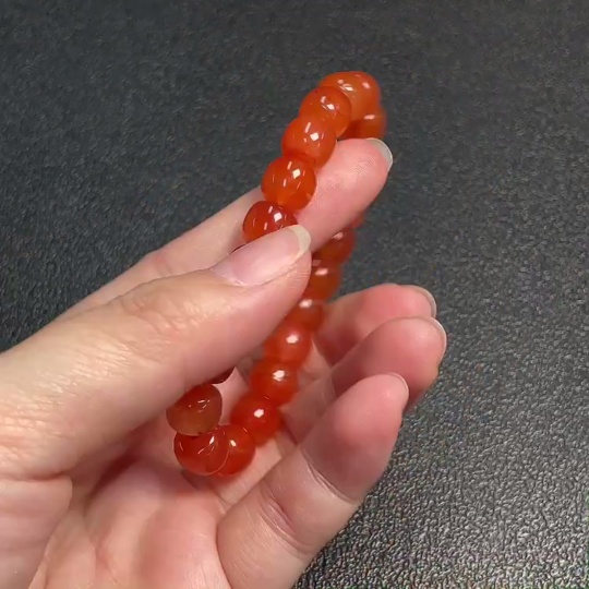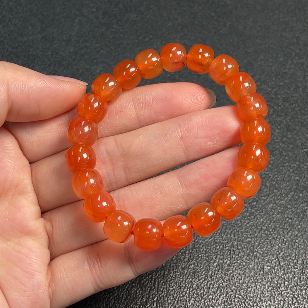 Red Agate Bracelet with Visible Organic Matter, Total Weight Approx. 22.87g, Bead Size About 9mm