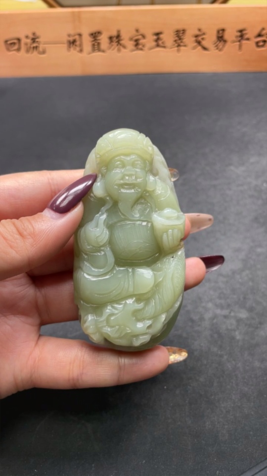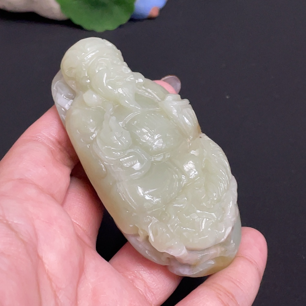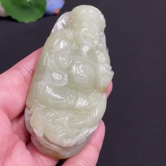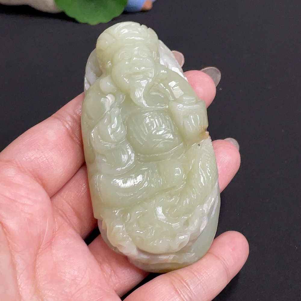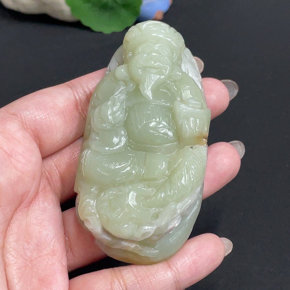 Hetian Jade Handheld Piece, God of Wealth, Undetermined Skin Color Origin, Total Weight Approximately 110g