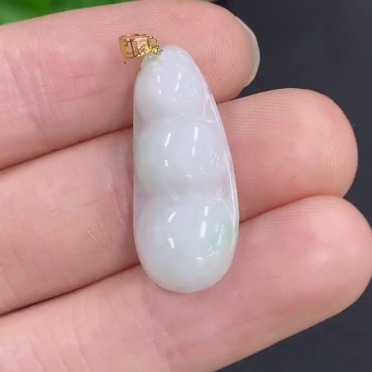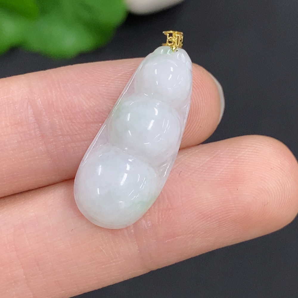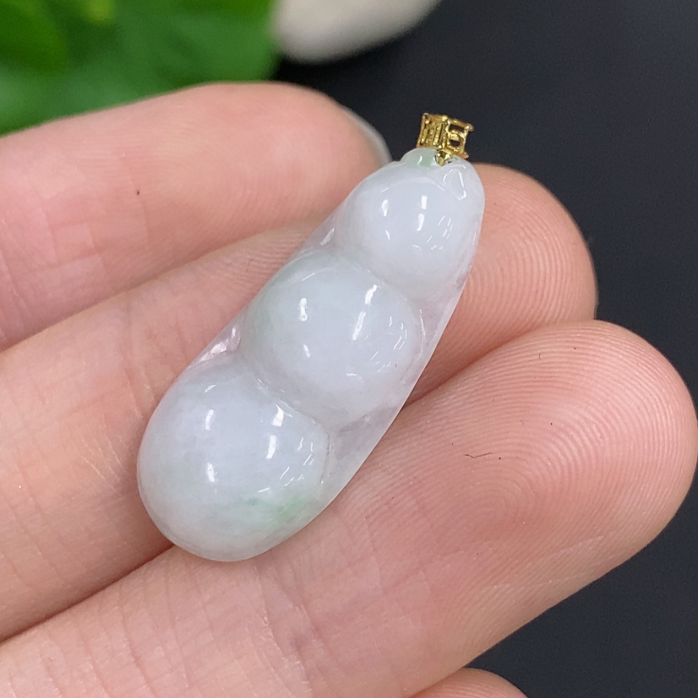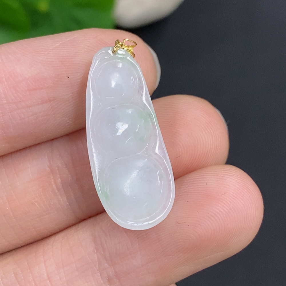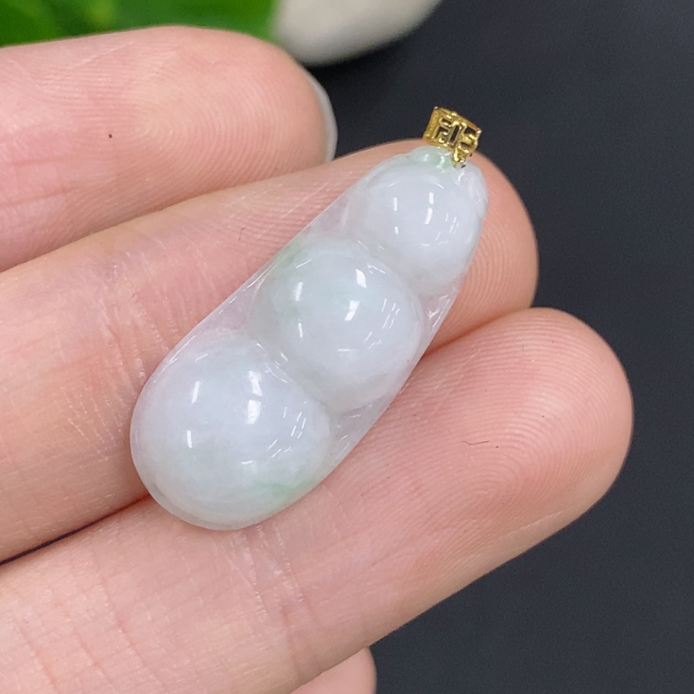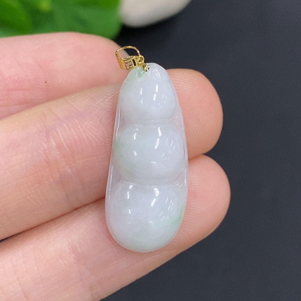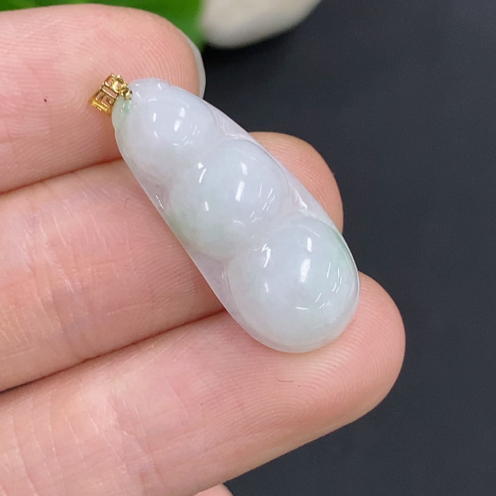 Jadeite Lucky Bean Pendant with 18K Gold Clasp, Total Weight Approx. 2.1g