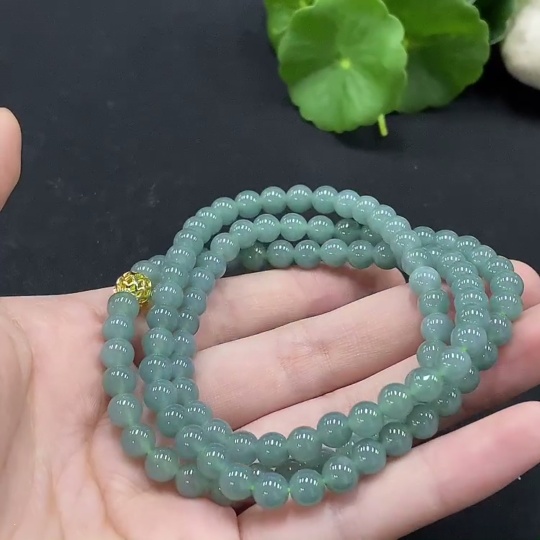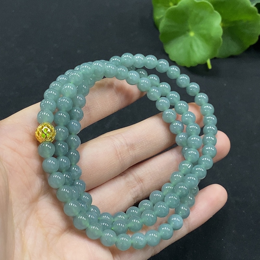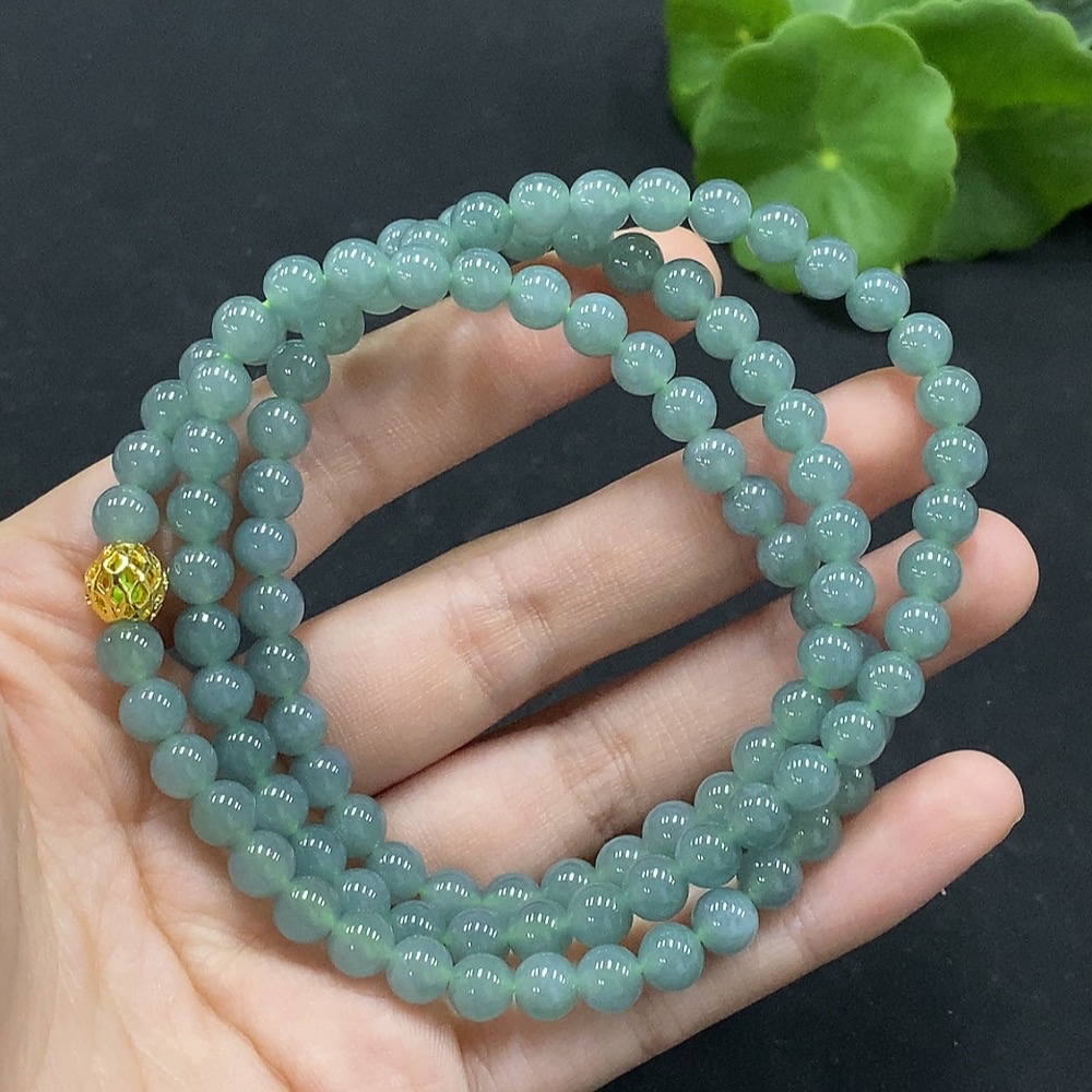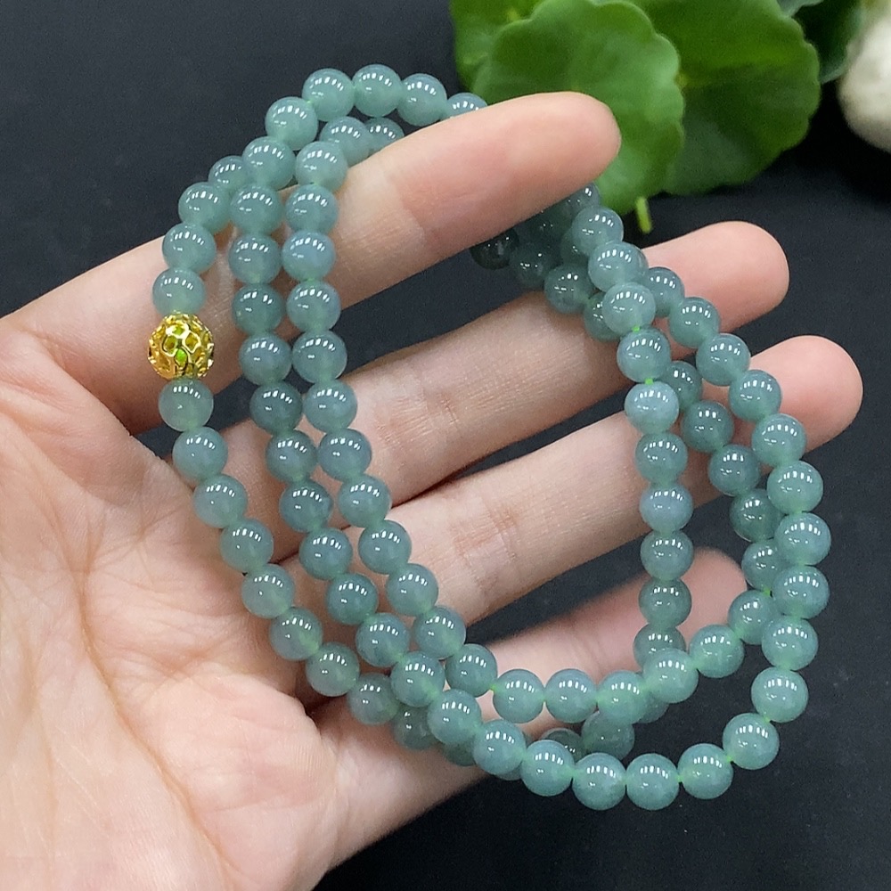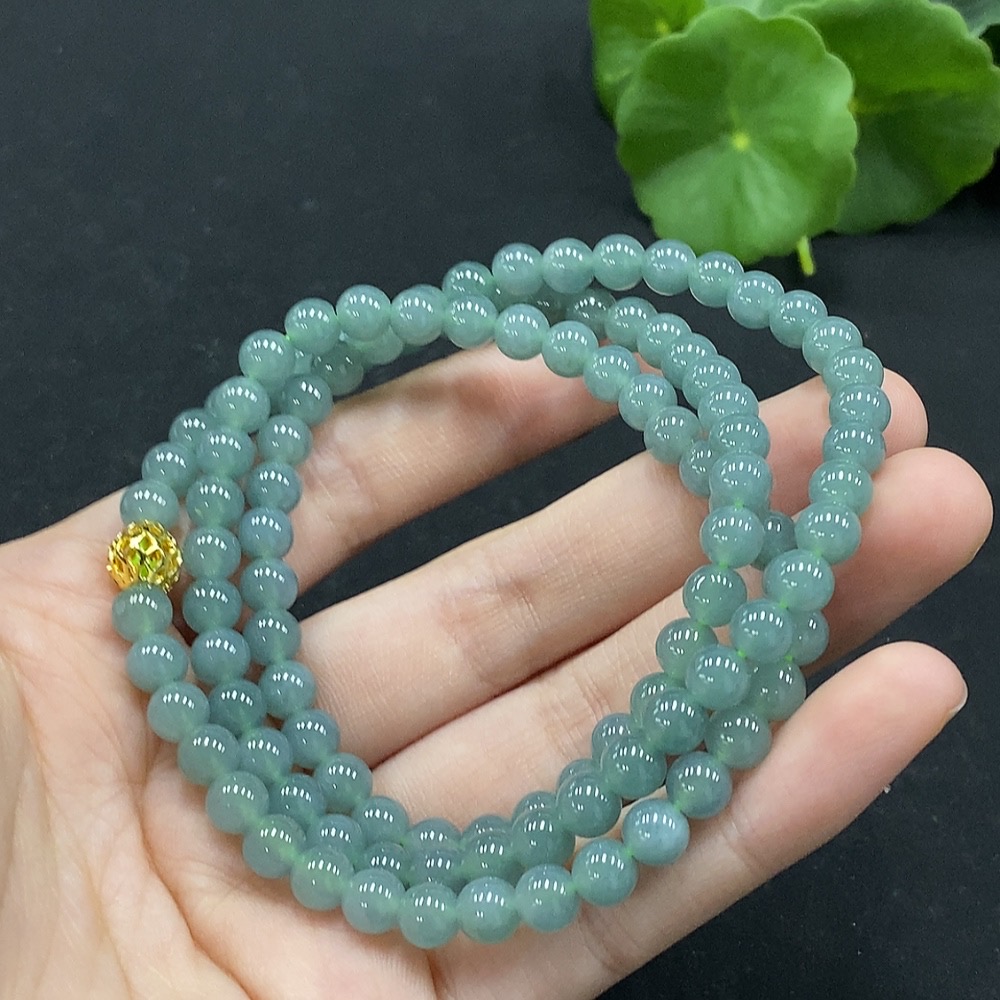 Jadeite Bead Necklace Approximately 6mm Non-Gold Inlaid Total Weight About 37.78g