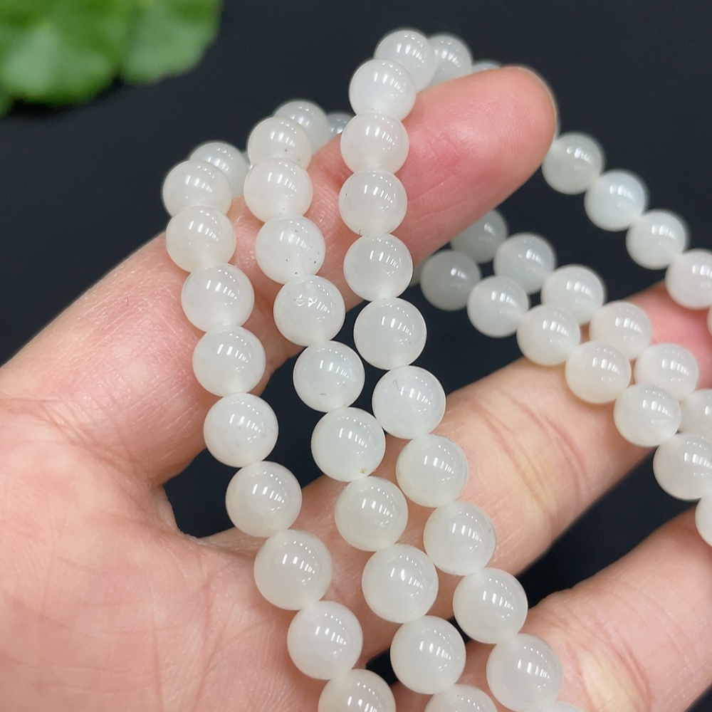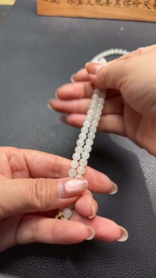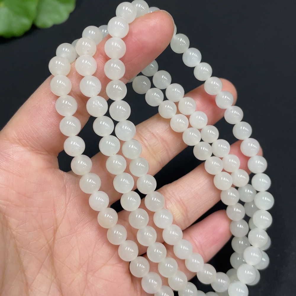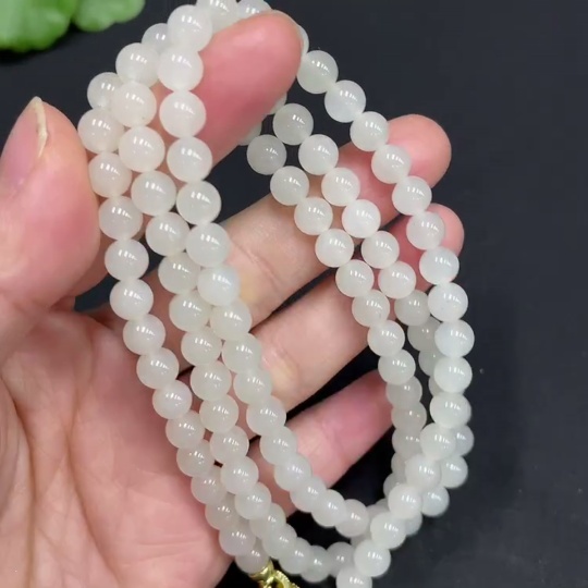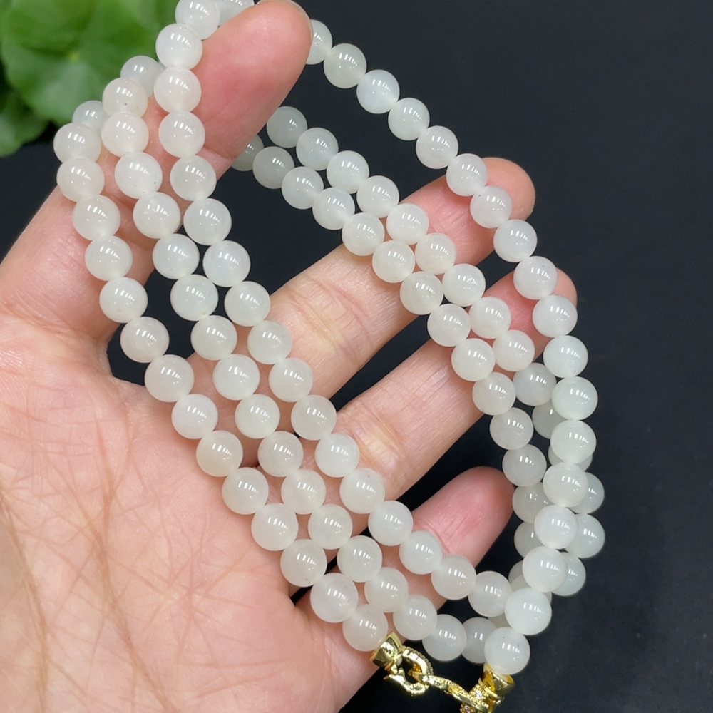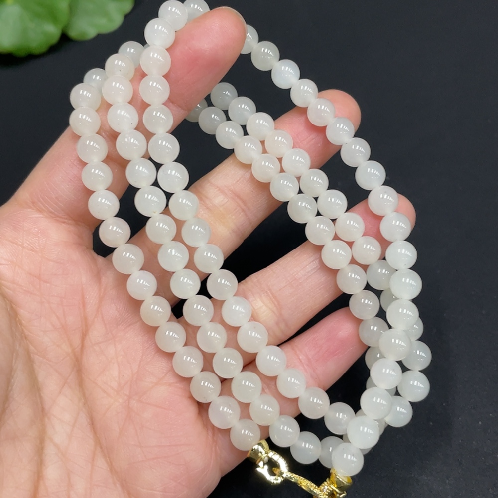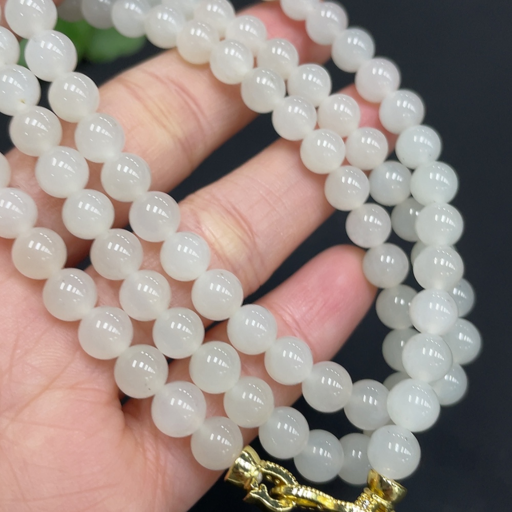 Hetian Jade Bead Necklace Approx. 5.9mm Non-Gold-Inlaid Total Weight Approx. 37.3g