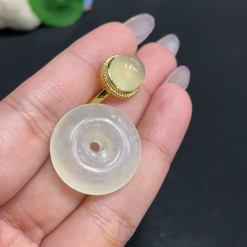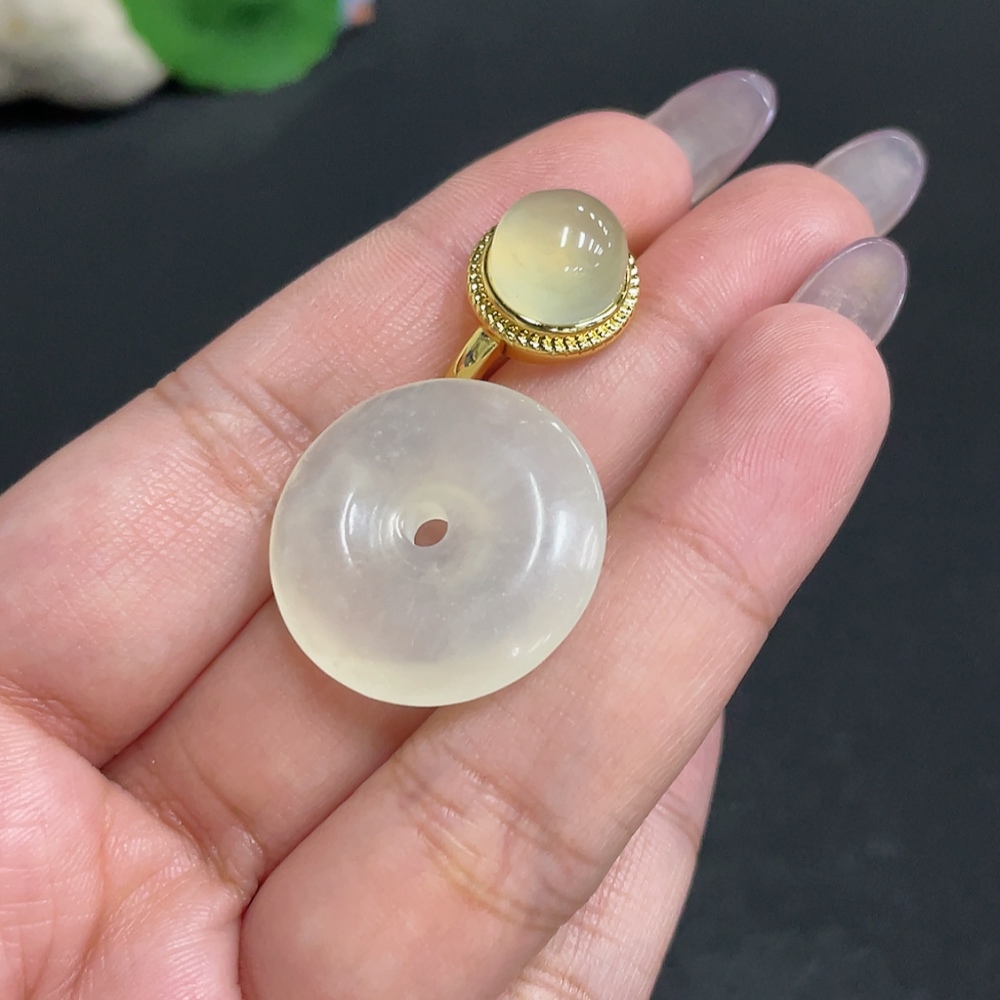 Xiuyu (Serpentine Jade) Pendant with Adjustable Ring