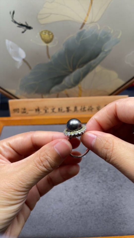 Seawater pearl ring, non-gold, adjustable, total weight approx. 6.5g, size approx. 12.1mm