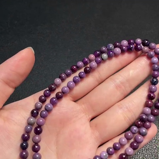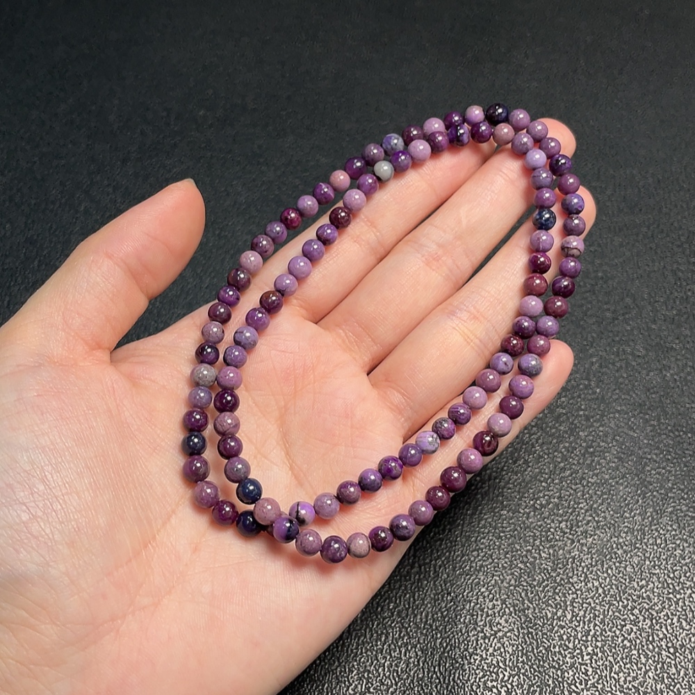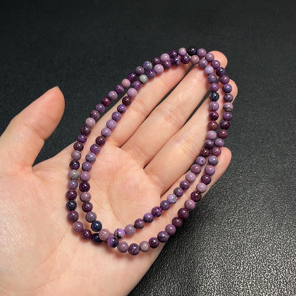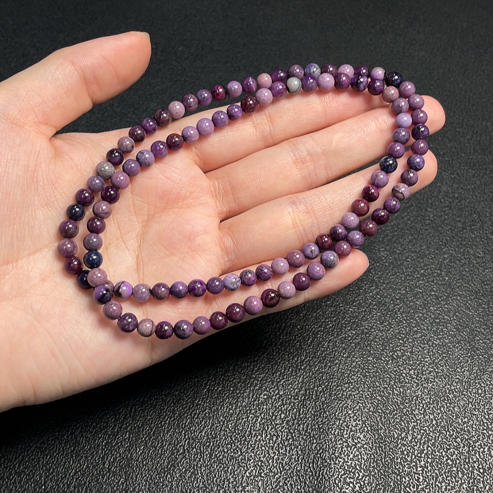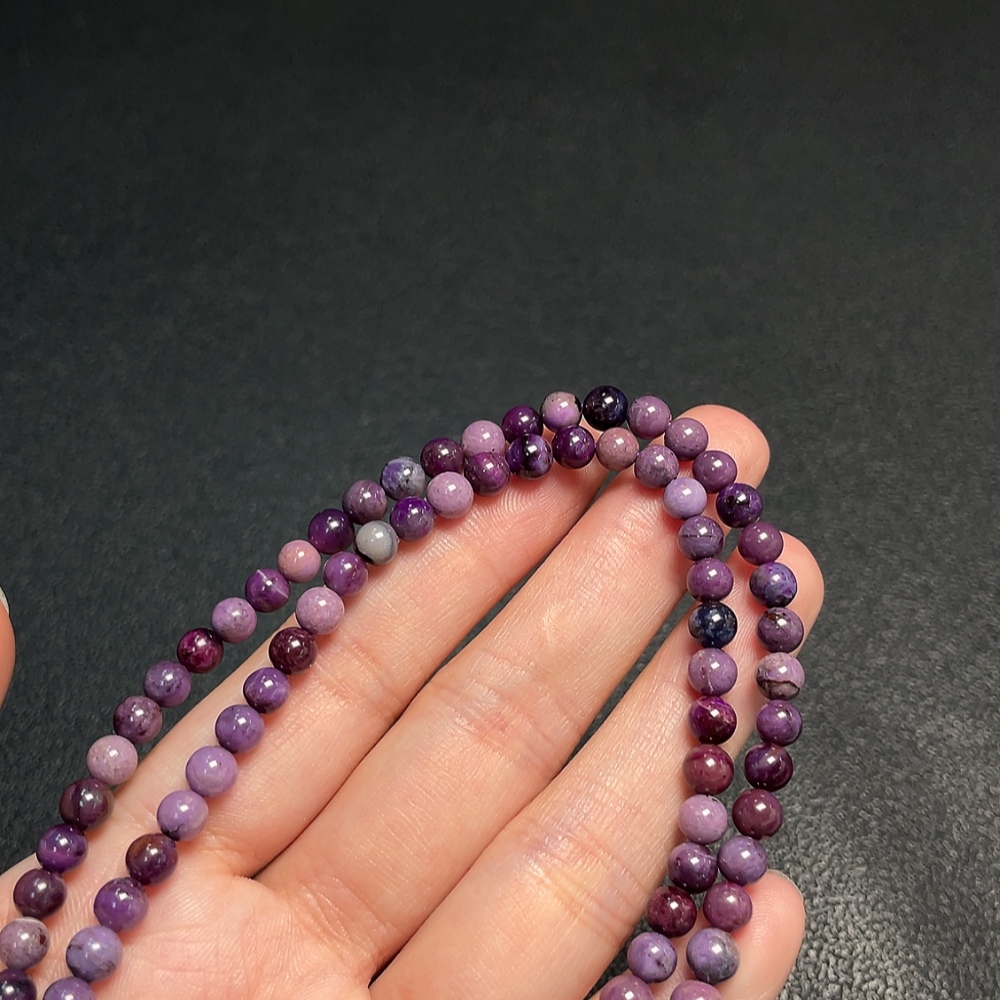 Sugilite bead strand, purple only, containing other mineral components, visible organic matter, total weight approx. 20.43g, size approx. 5.1mm (with mineral)
