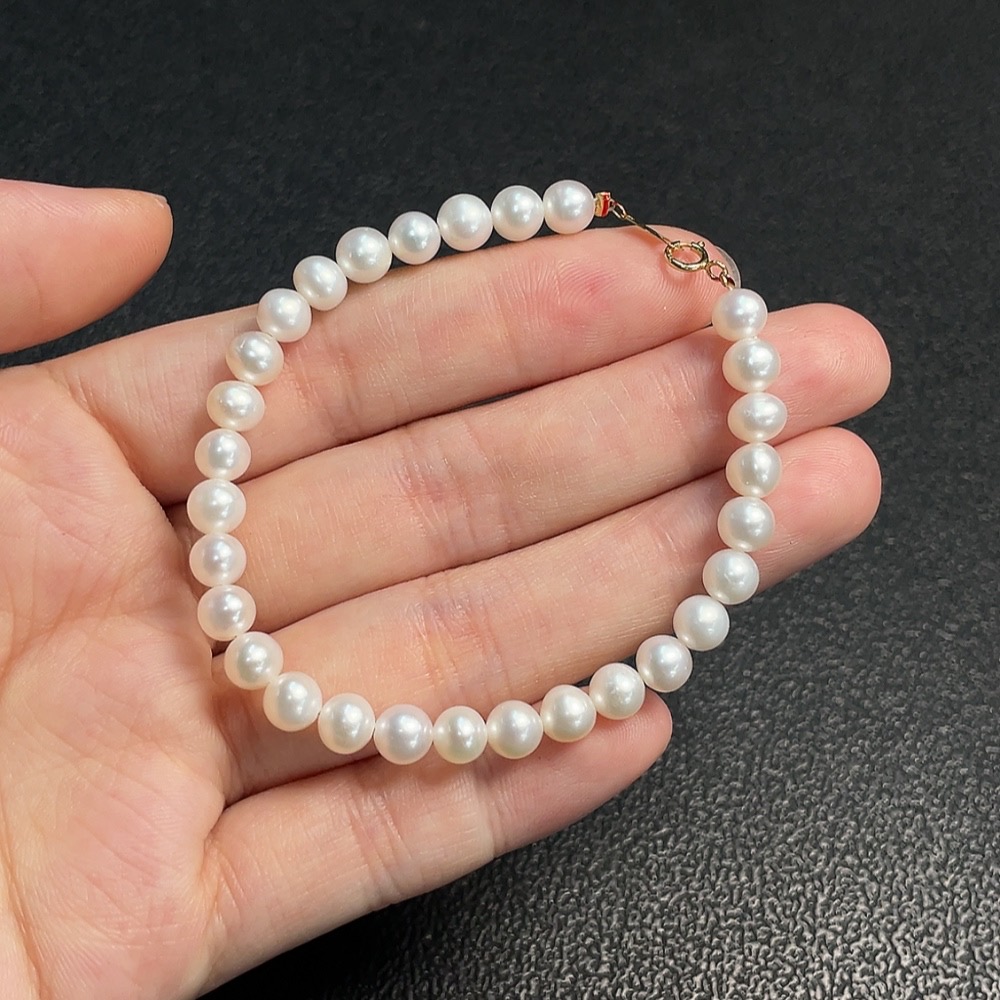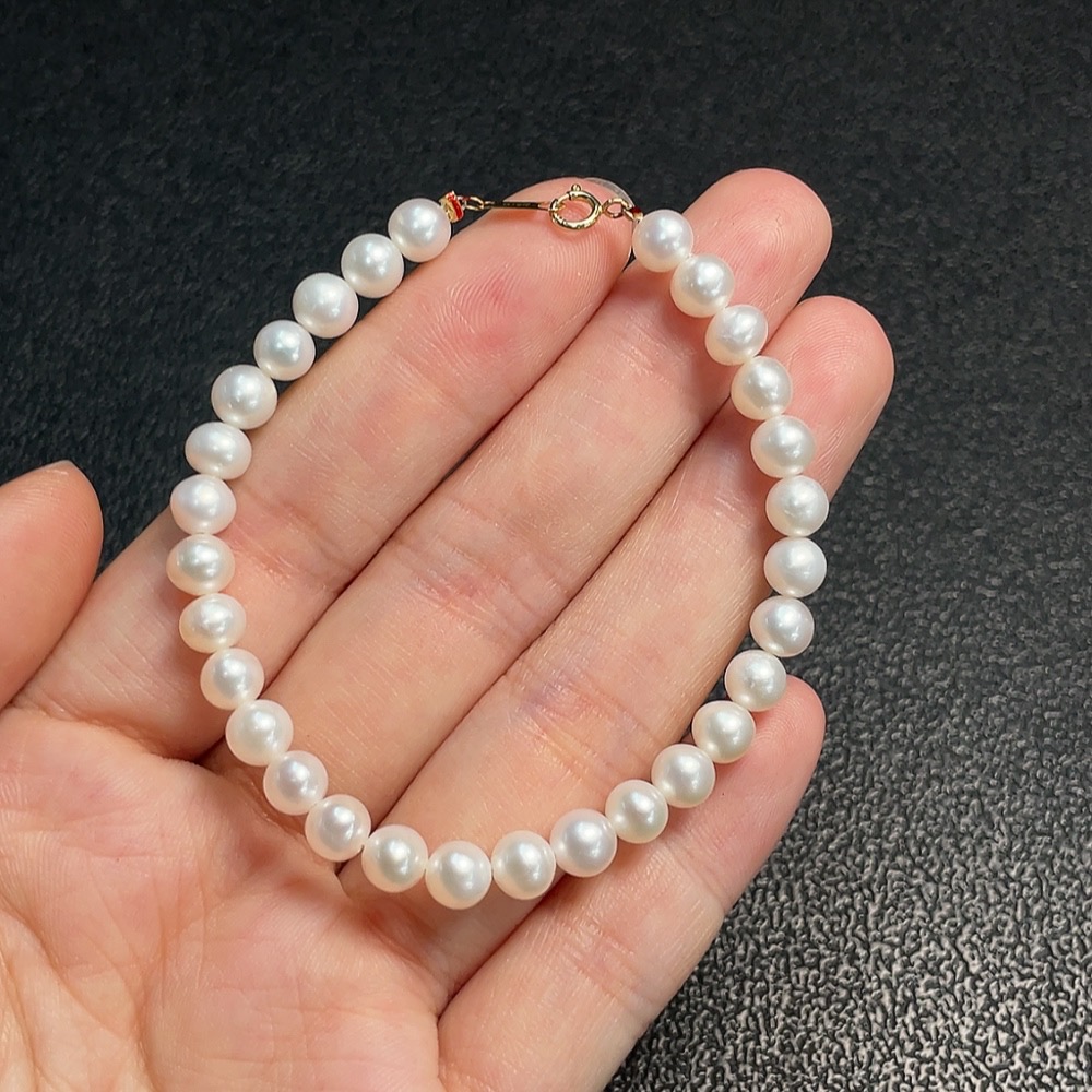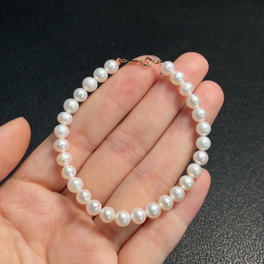Pearl Bracelet Marked Red Not Gold Rest 18k String Not Detected Total Weight Approx 6.72g Size About 5.3mm