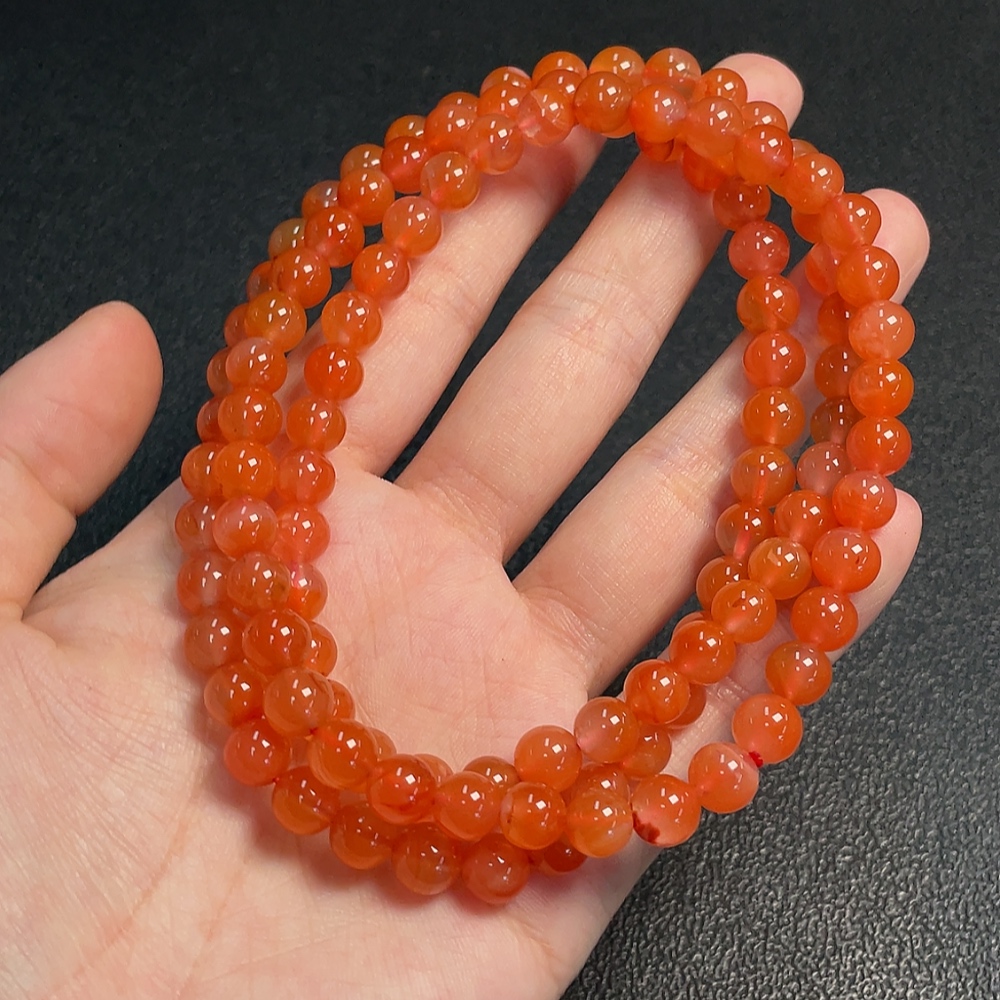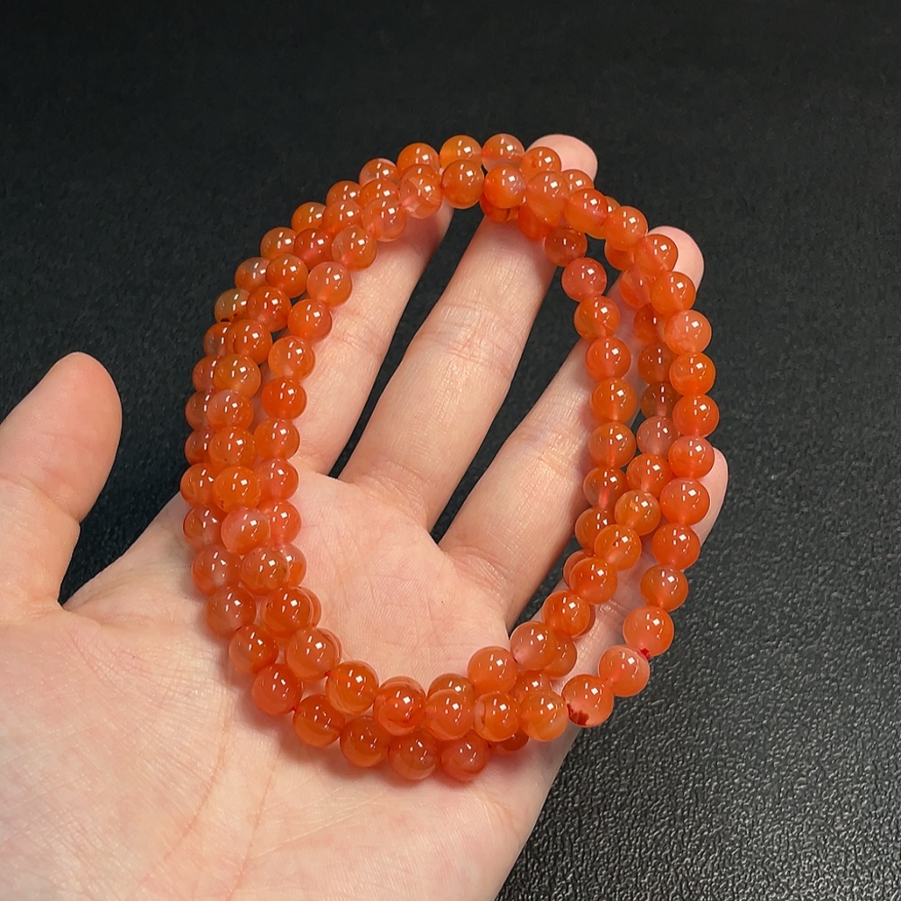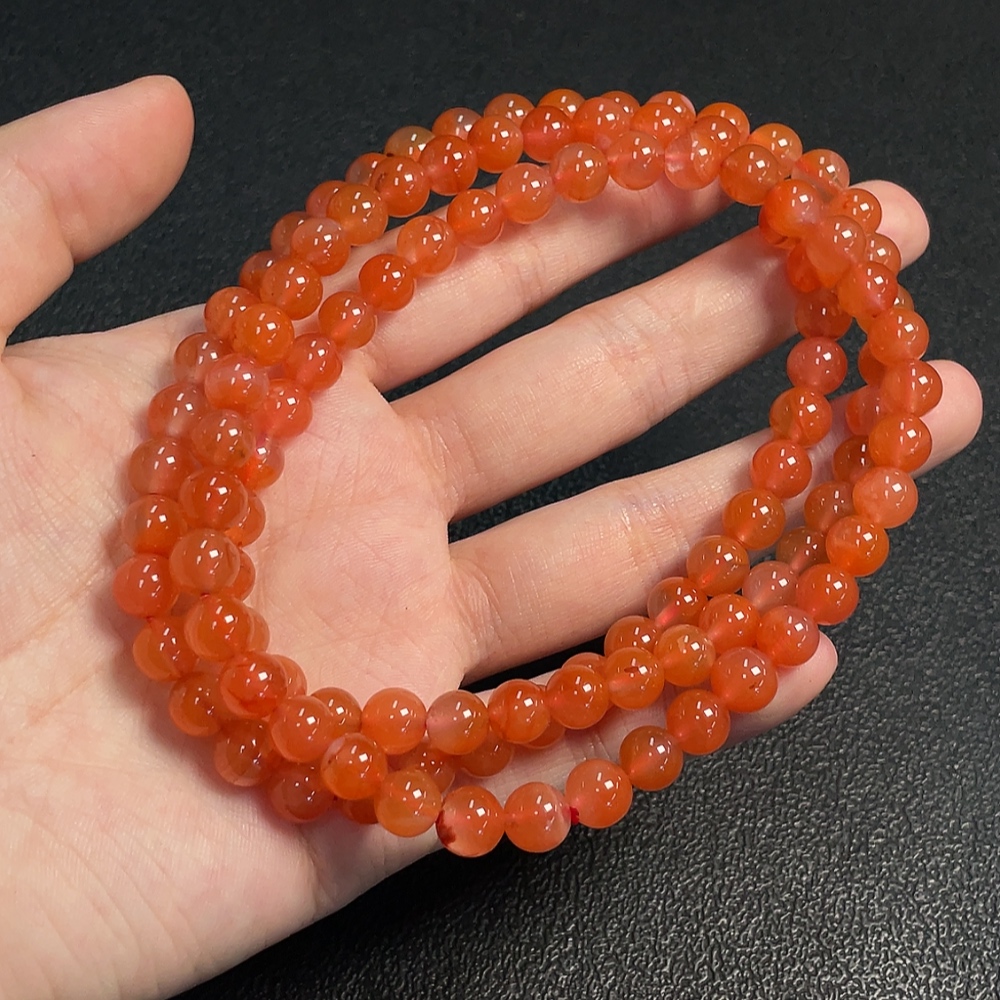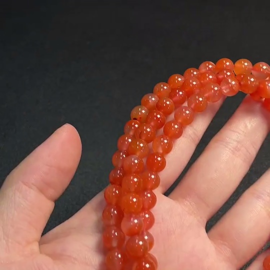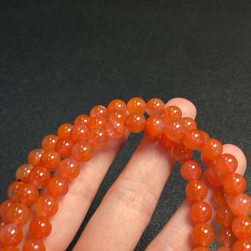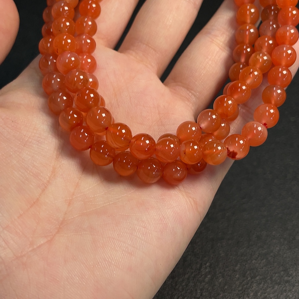 Red Agate Bead Strand with Visible Organic Matter, Total Weight Approx. 54.04g, Size About 7.3mm