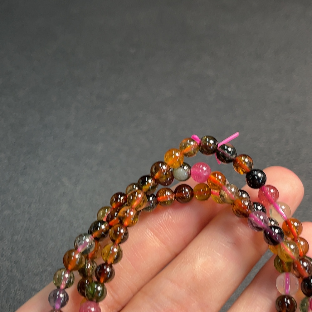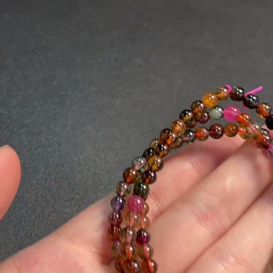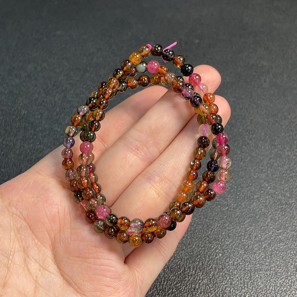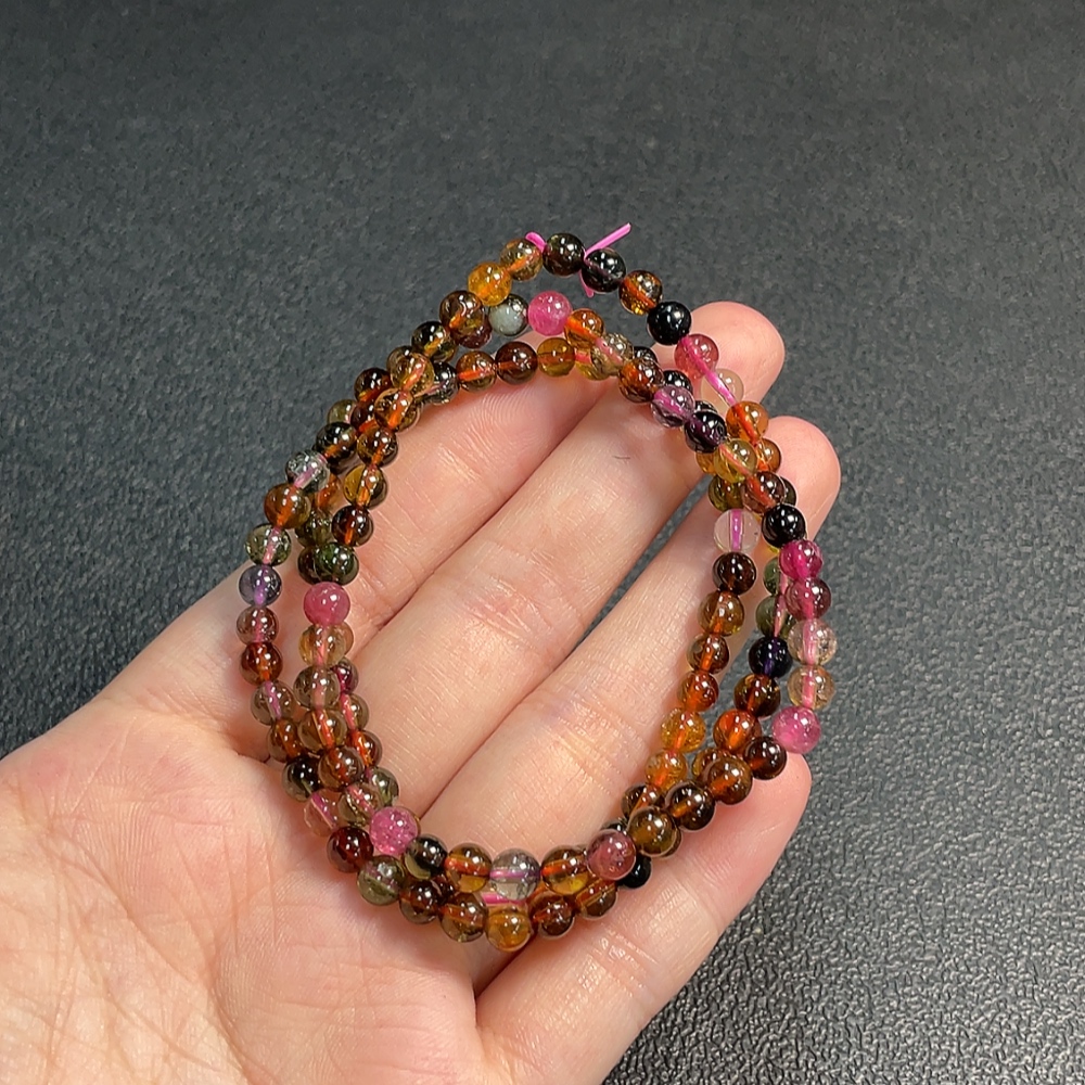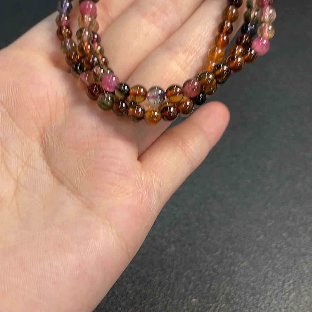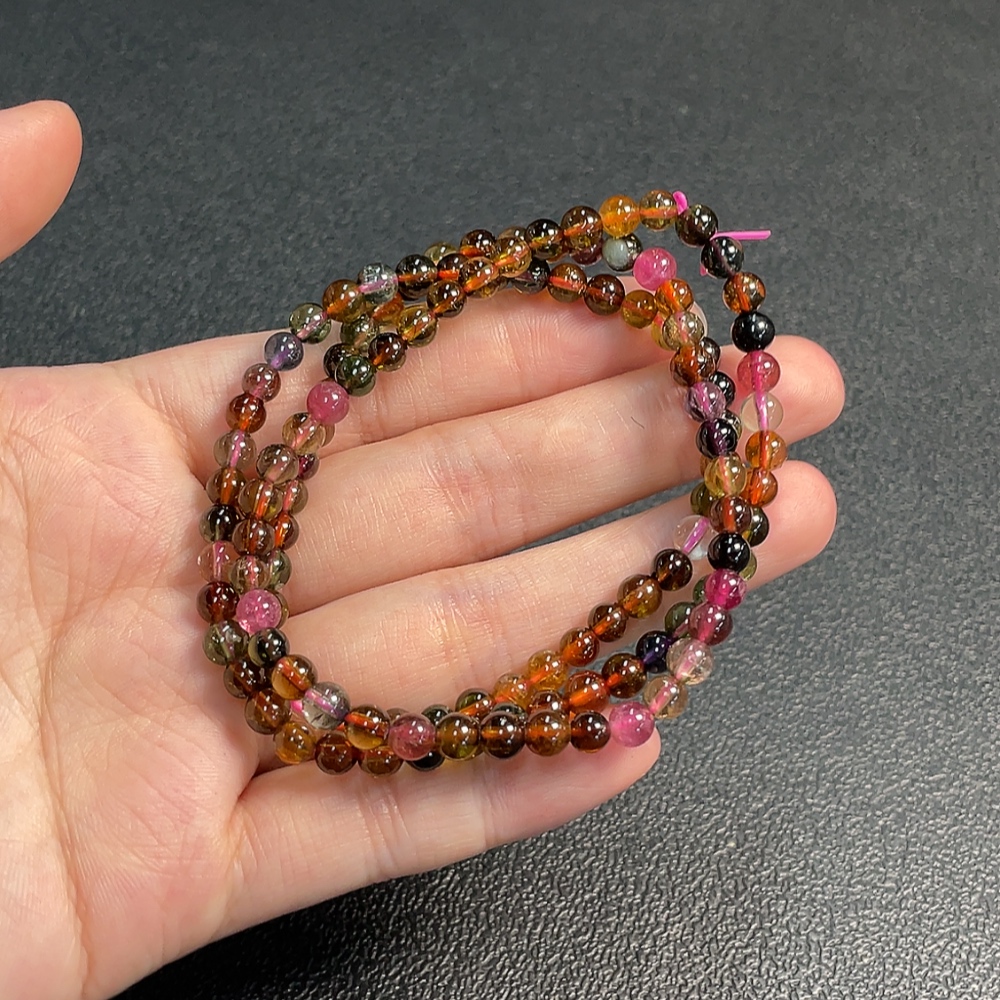 Tourmaline bead bracelet with other mineral components, visible organic matter, total weight approx. 20.58g, size approx. 4.7mm