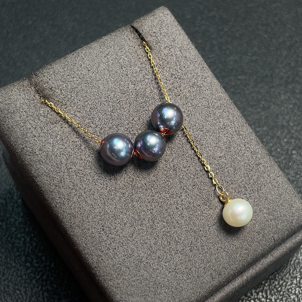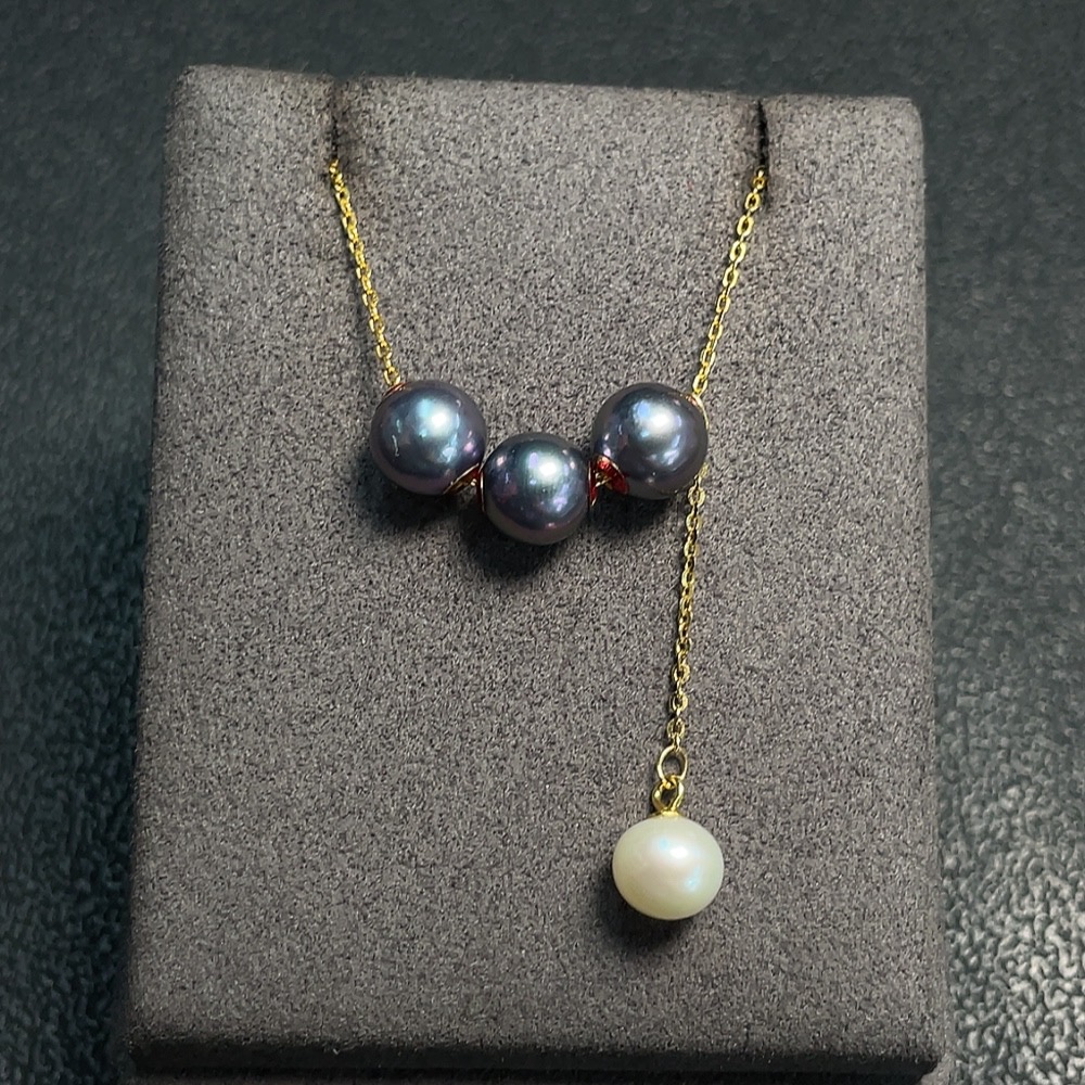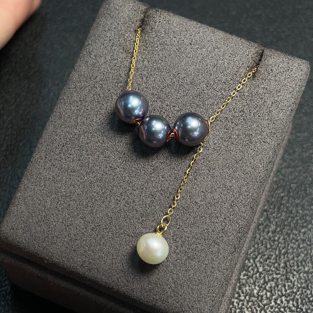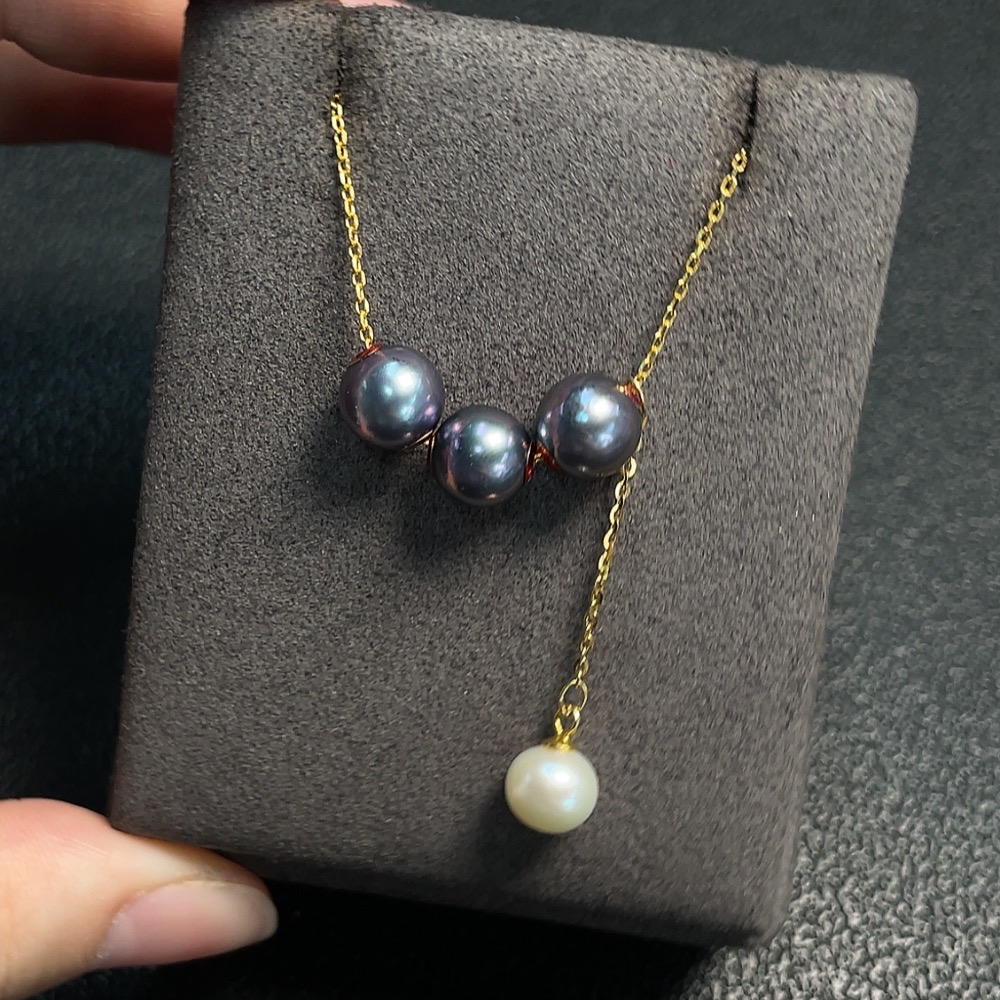 Seawater pearl necklace with pearls, color origin undetermined, marked red containing 65% gold, the rest non-gold, total weight about 4 grams, seawater pearl size about 8.1mm