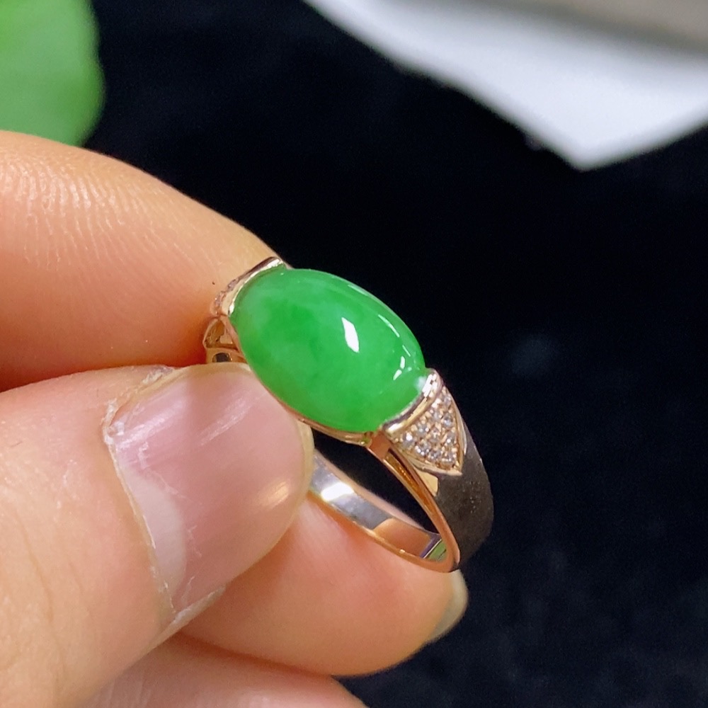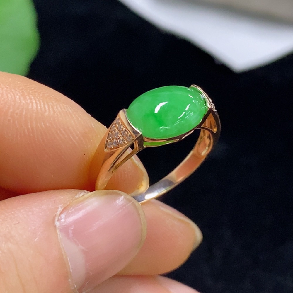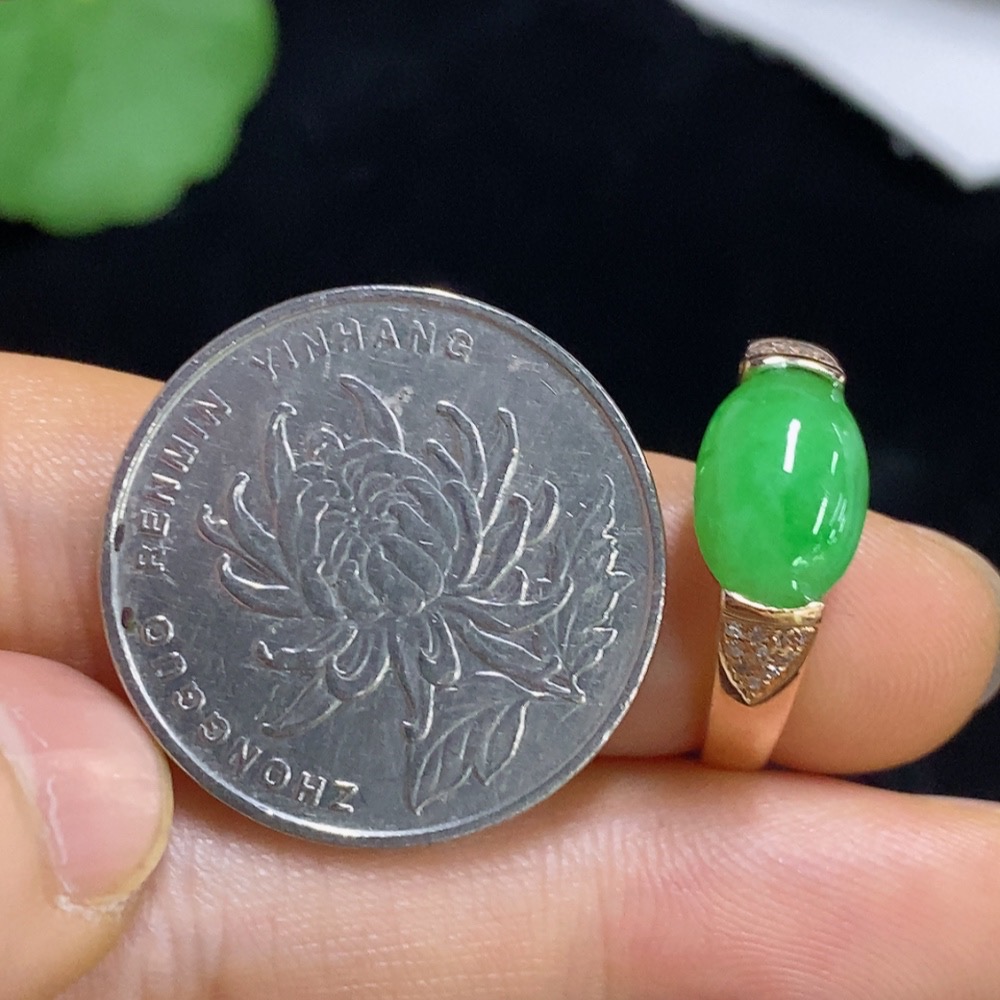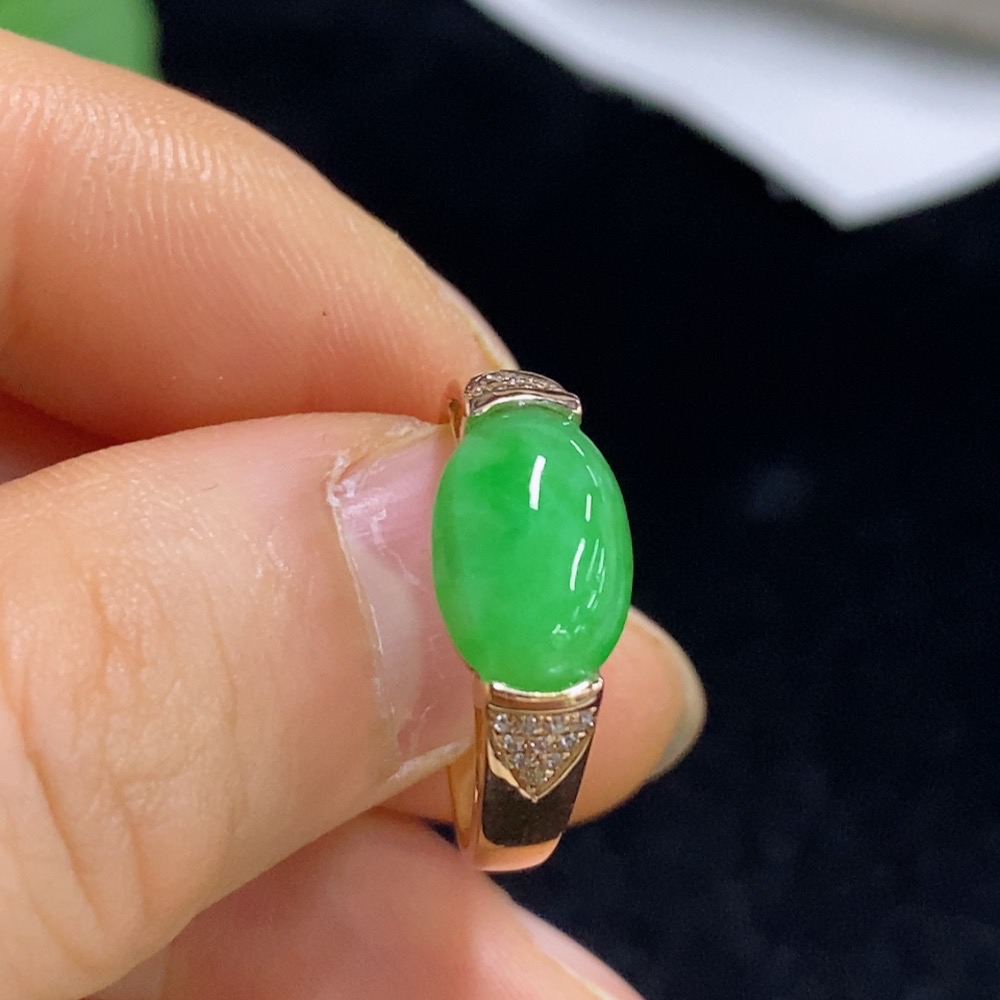 Jadeite inlaid ring 18k with diamond size 15 total weight about 2.95g