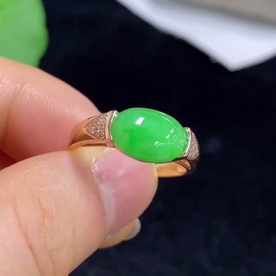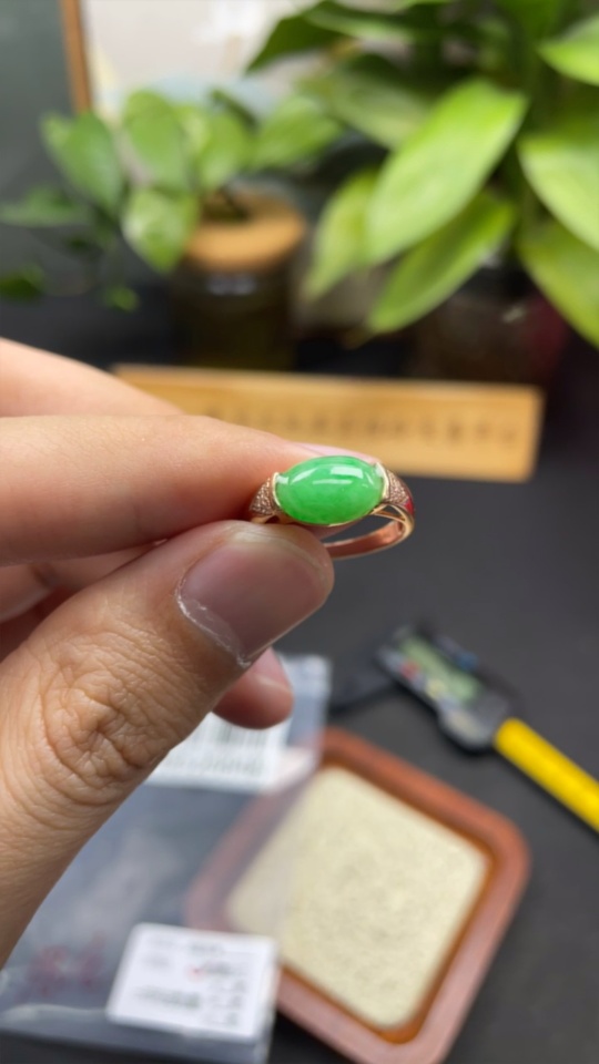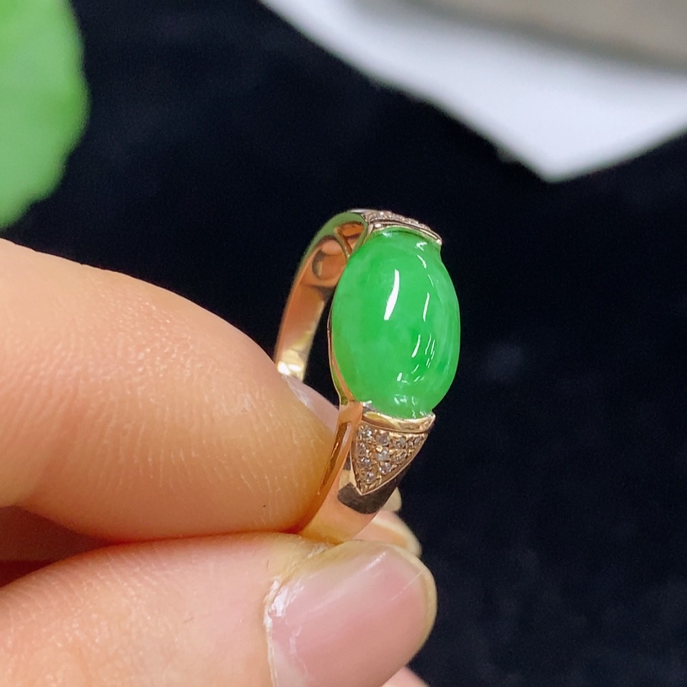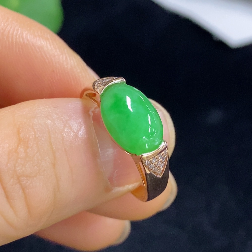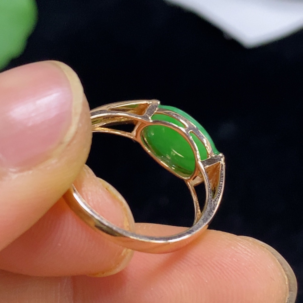 Jadeite inlaid ring 18k with diamond size 15 total weight about 2.95g