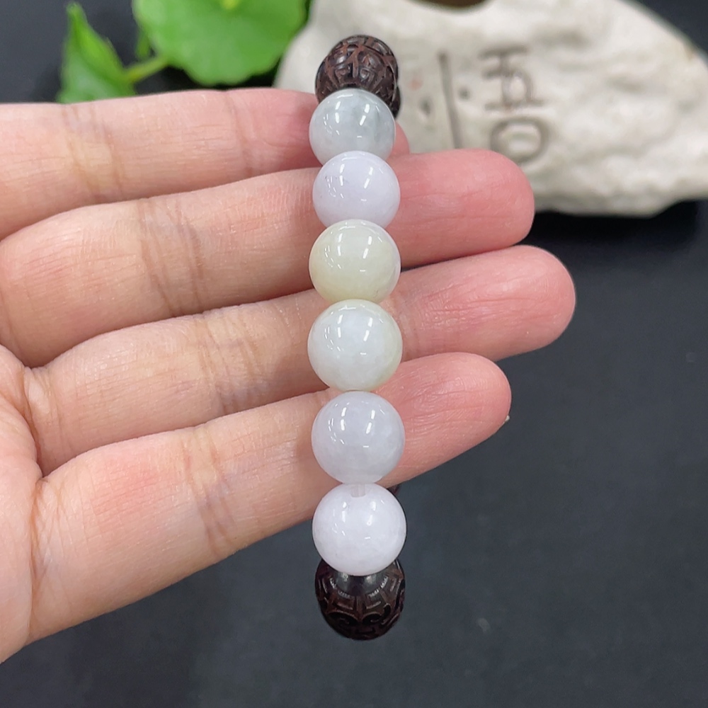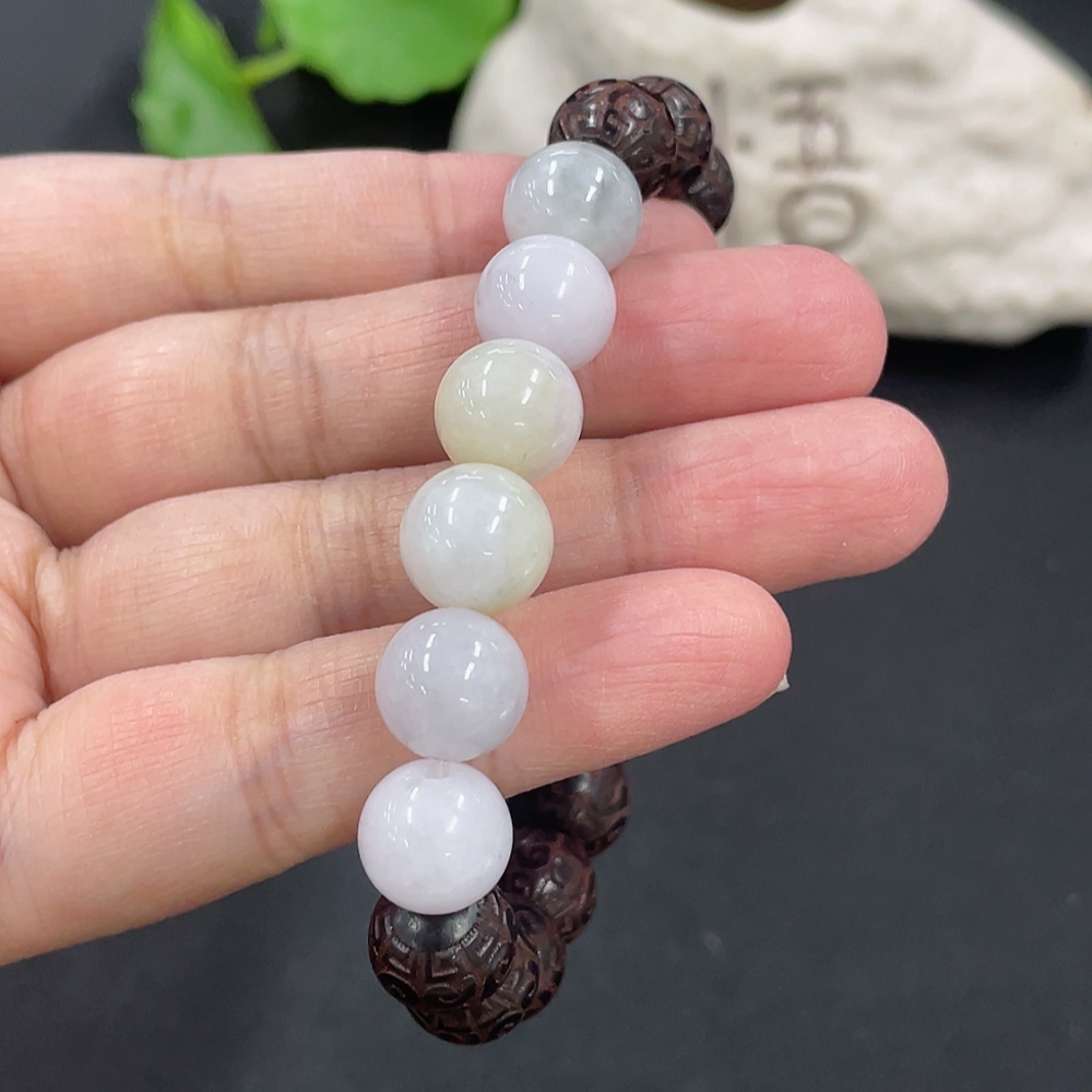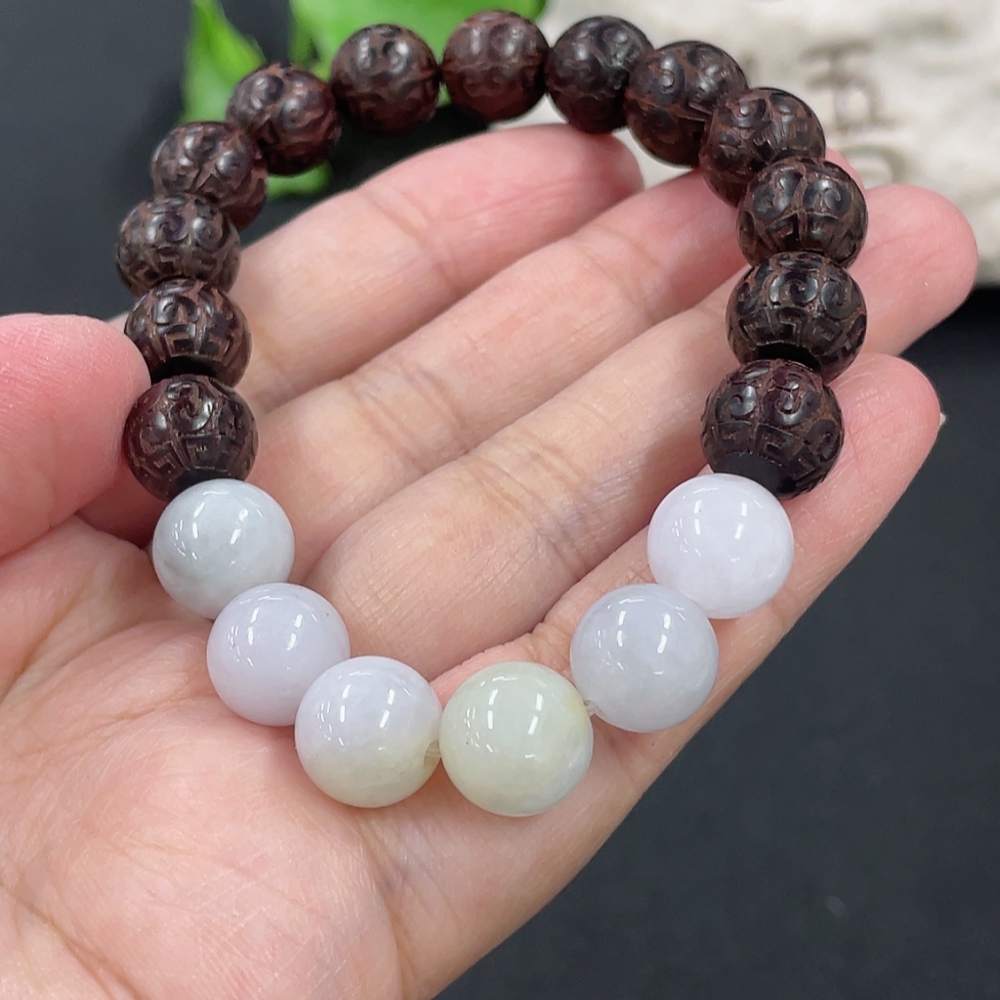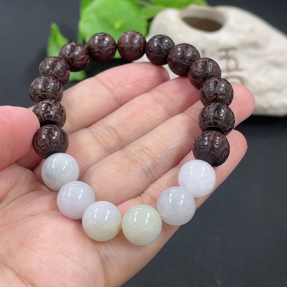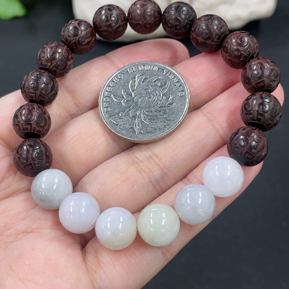 Jadeite and Wood Bead Bracelet, Approx. 10.3mm, Total Weight Approx. 19.29g