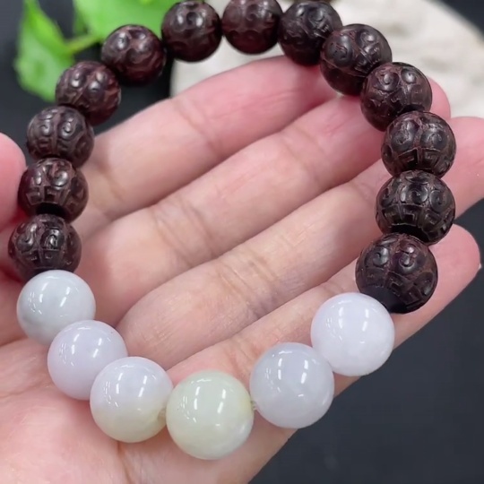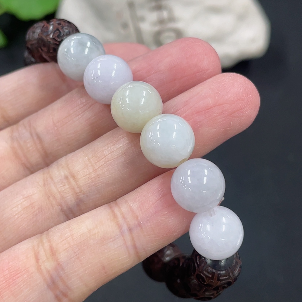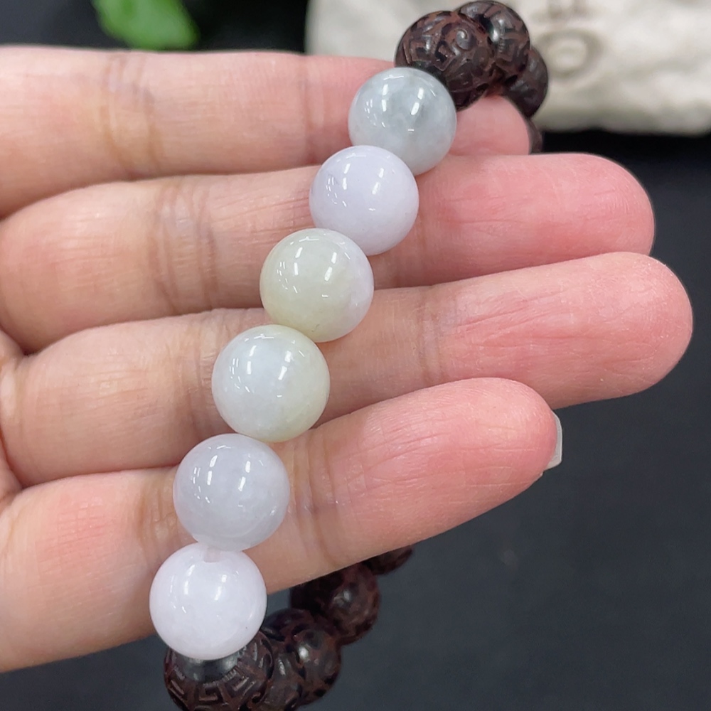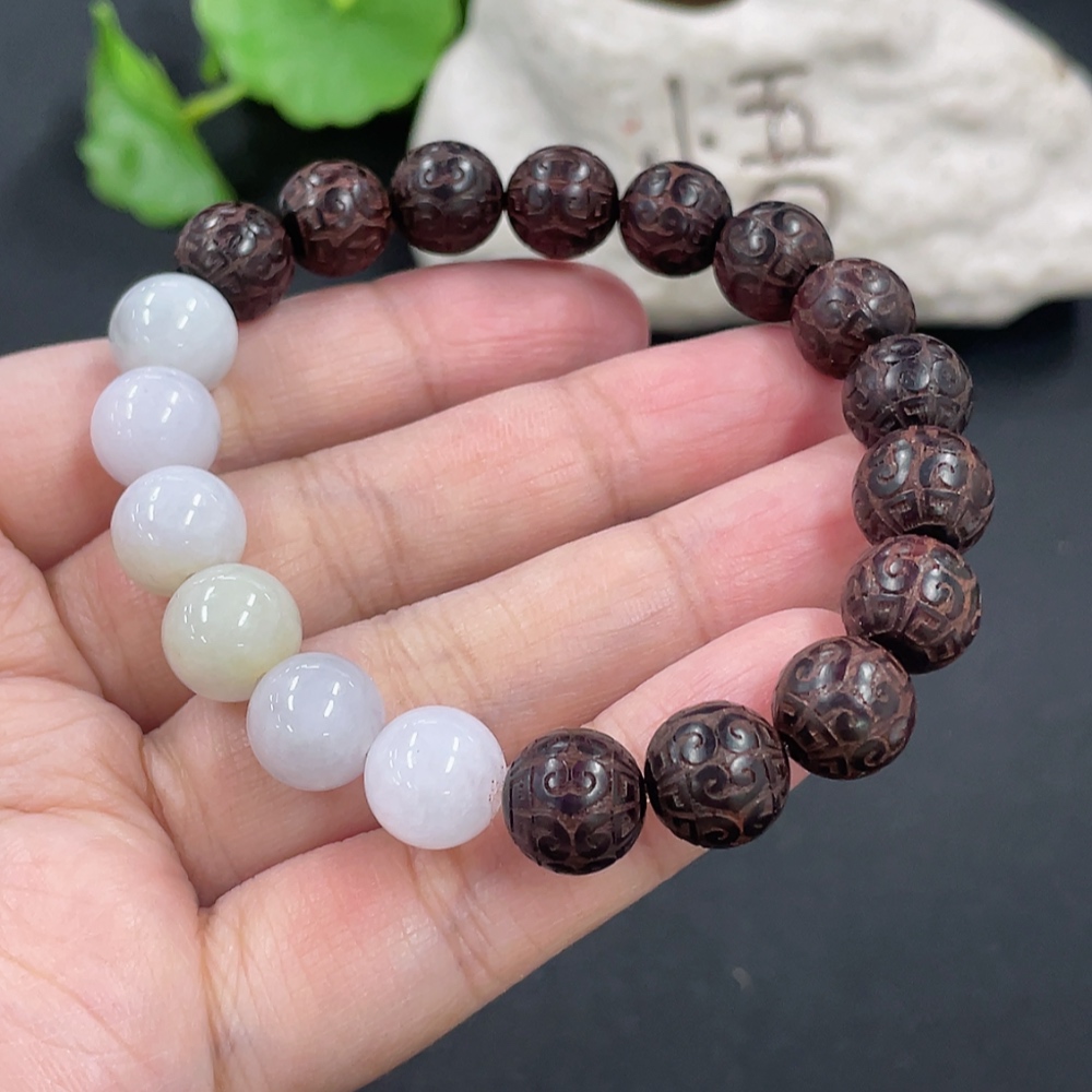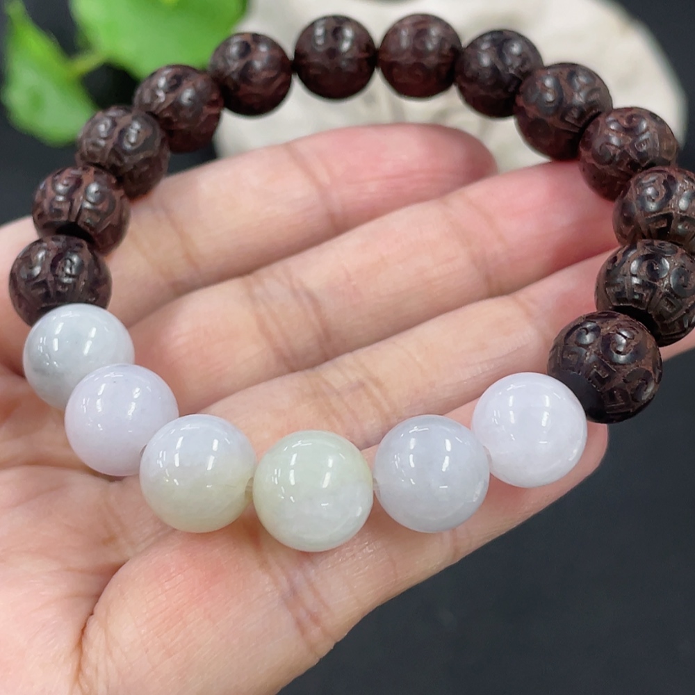 Jadeite and Wood Bead Bracelet, Approx. 10.3mm, Total Weight Approx. 19.29g