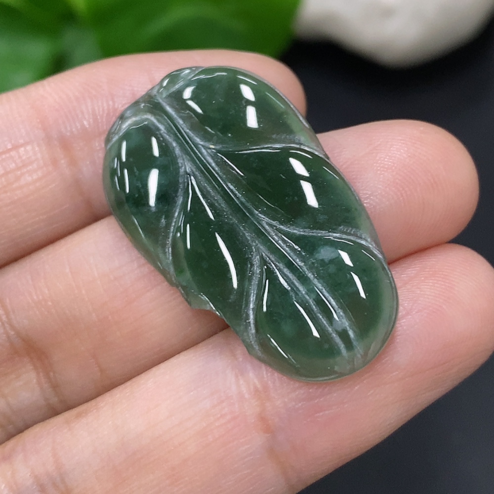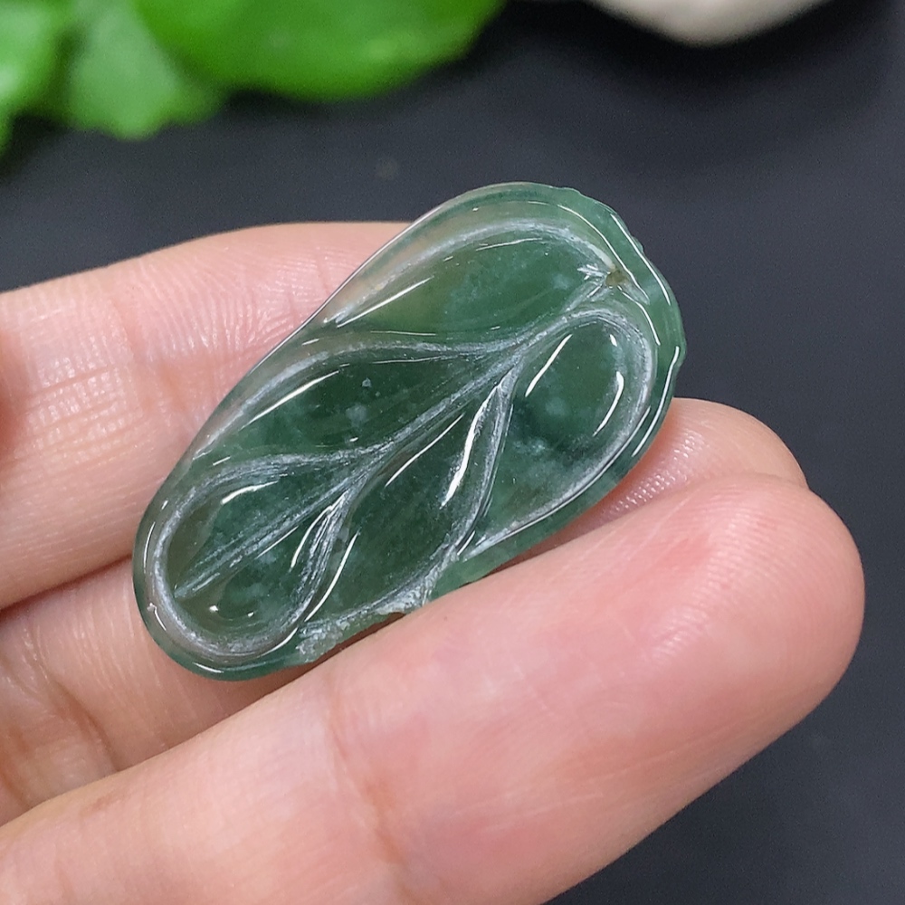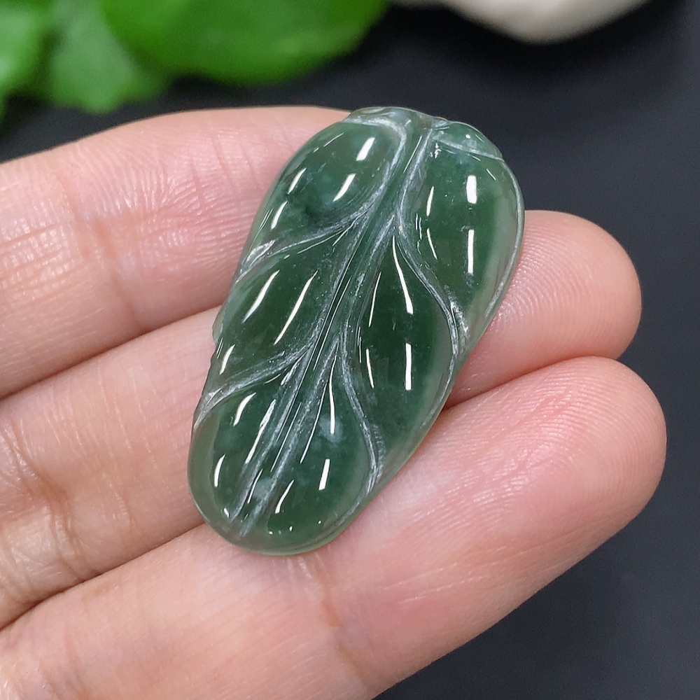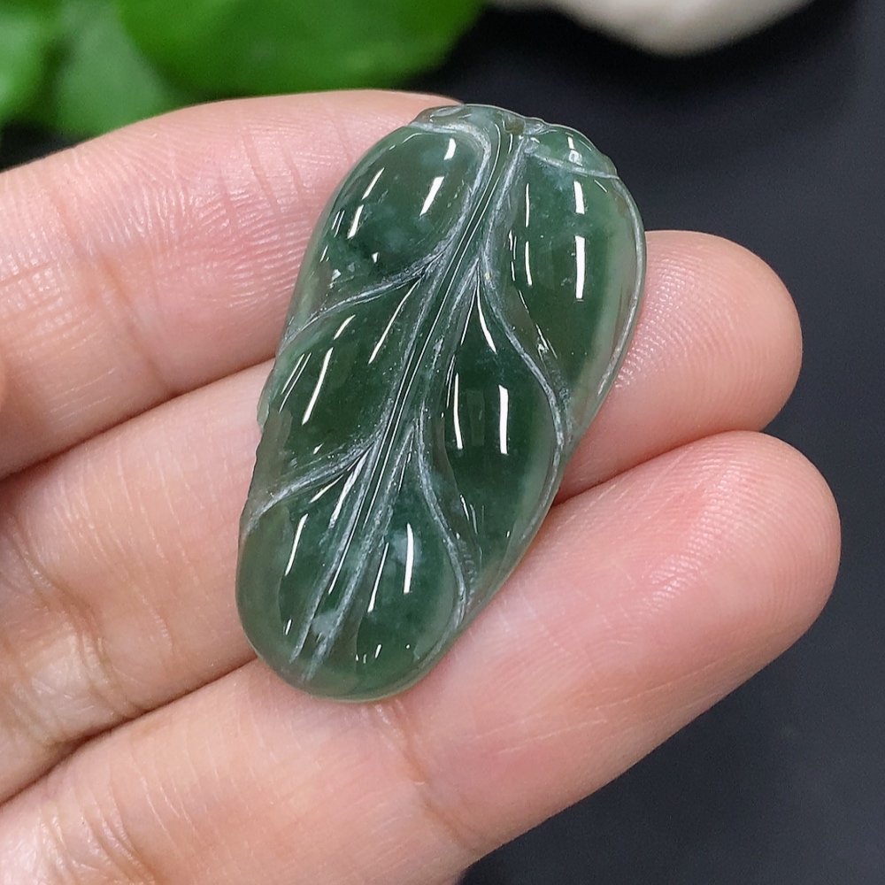 Jadeite Leaf Pendant Total Weight Approx. 2.9g (Damaged)