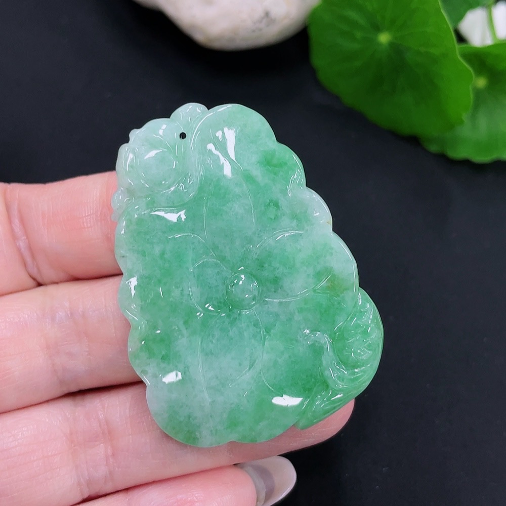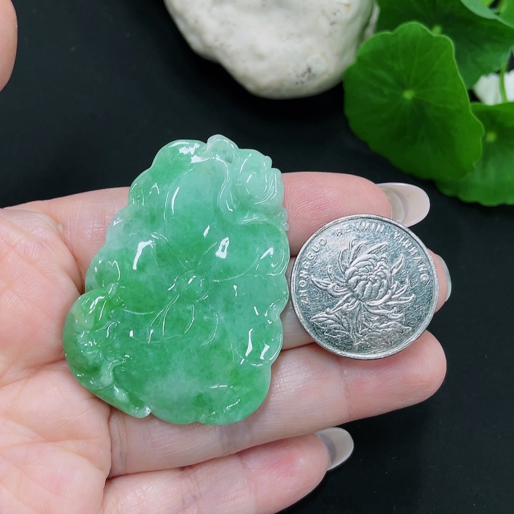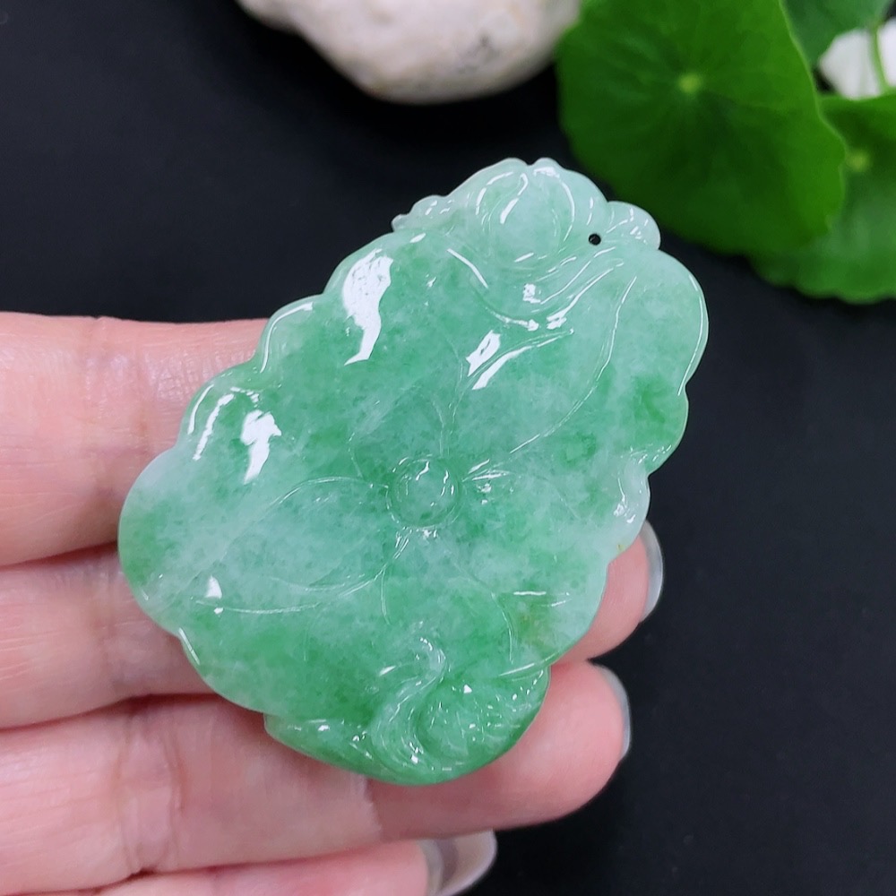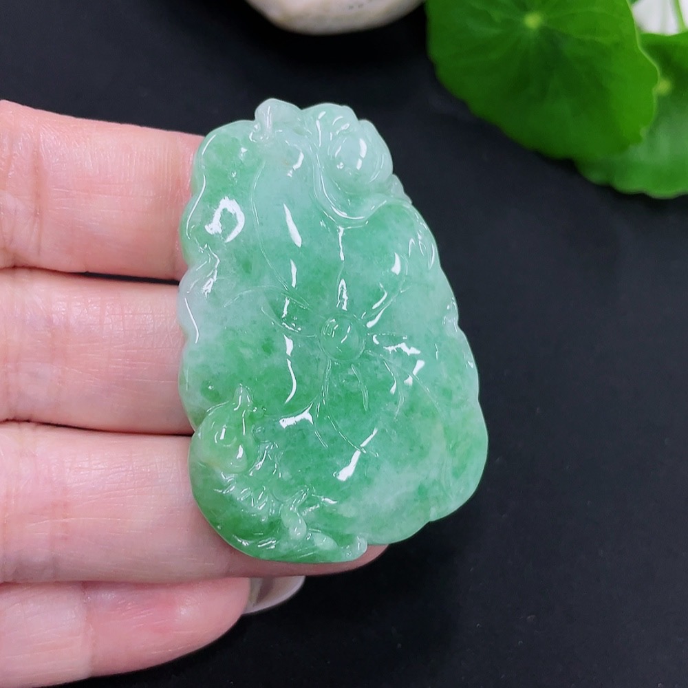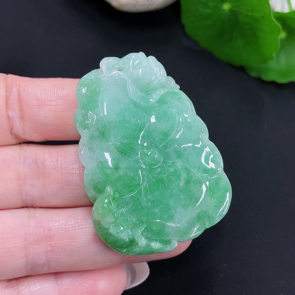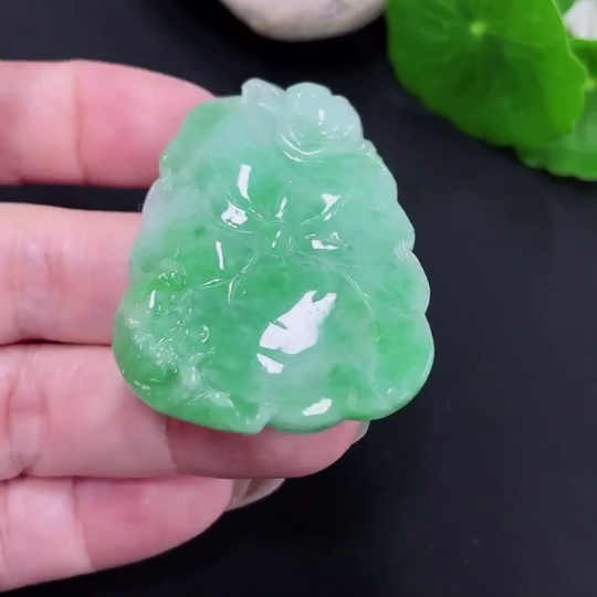 Jadeite Lotus Leaf Fish Pendant Total Weight Approx. 23.7g