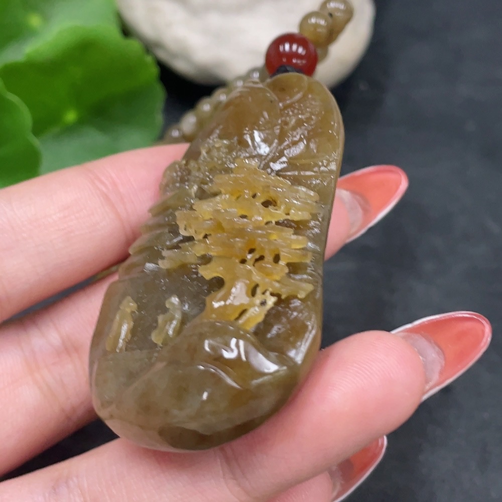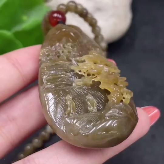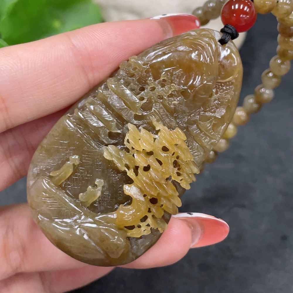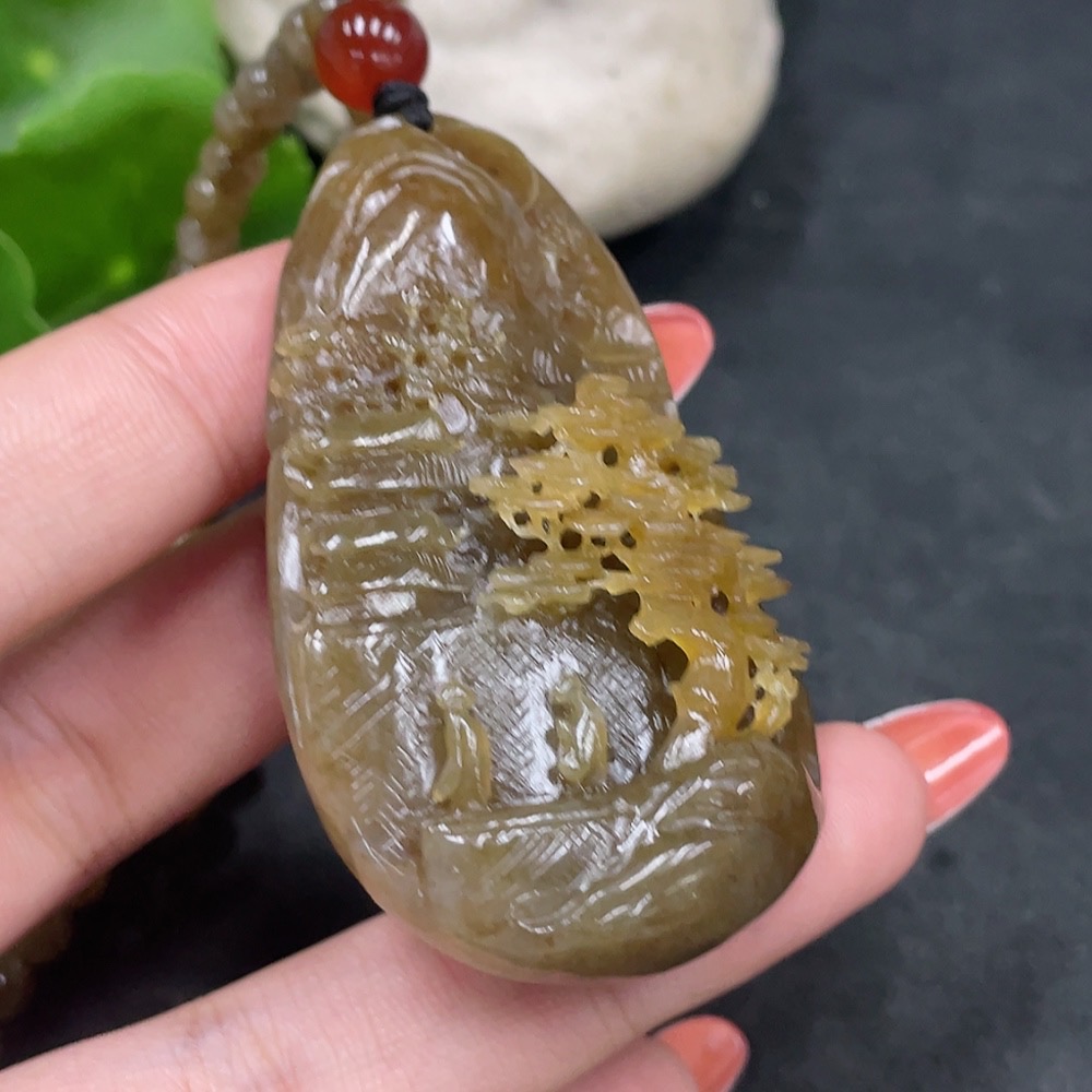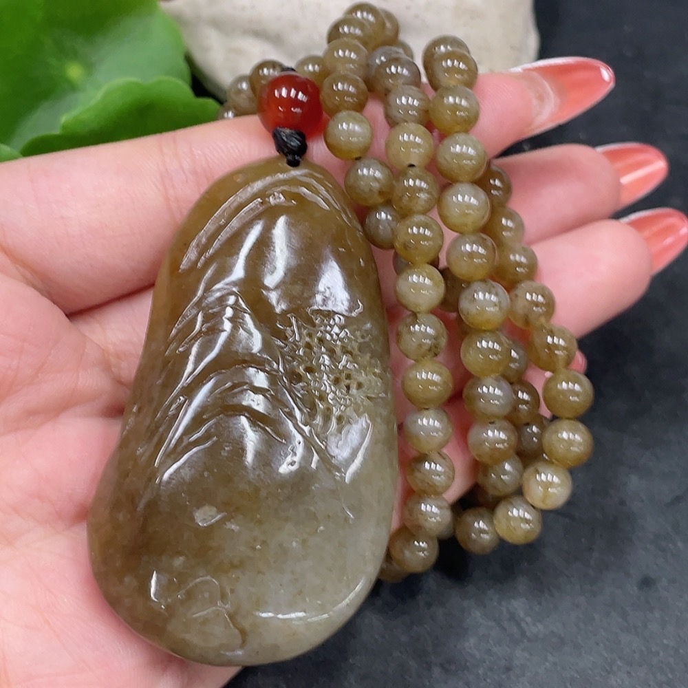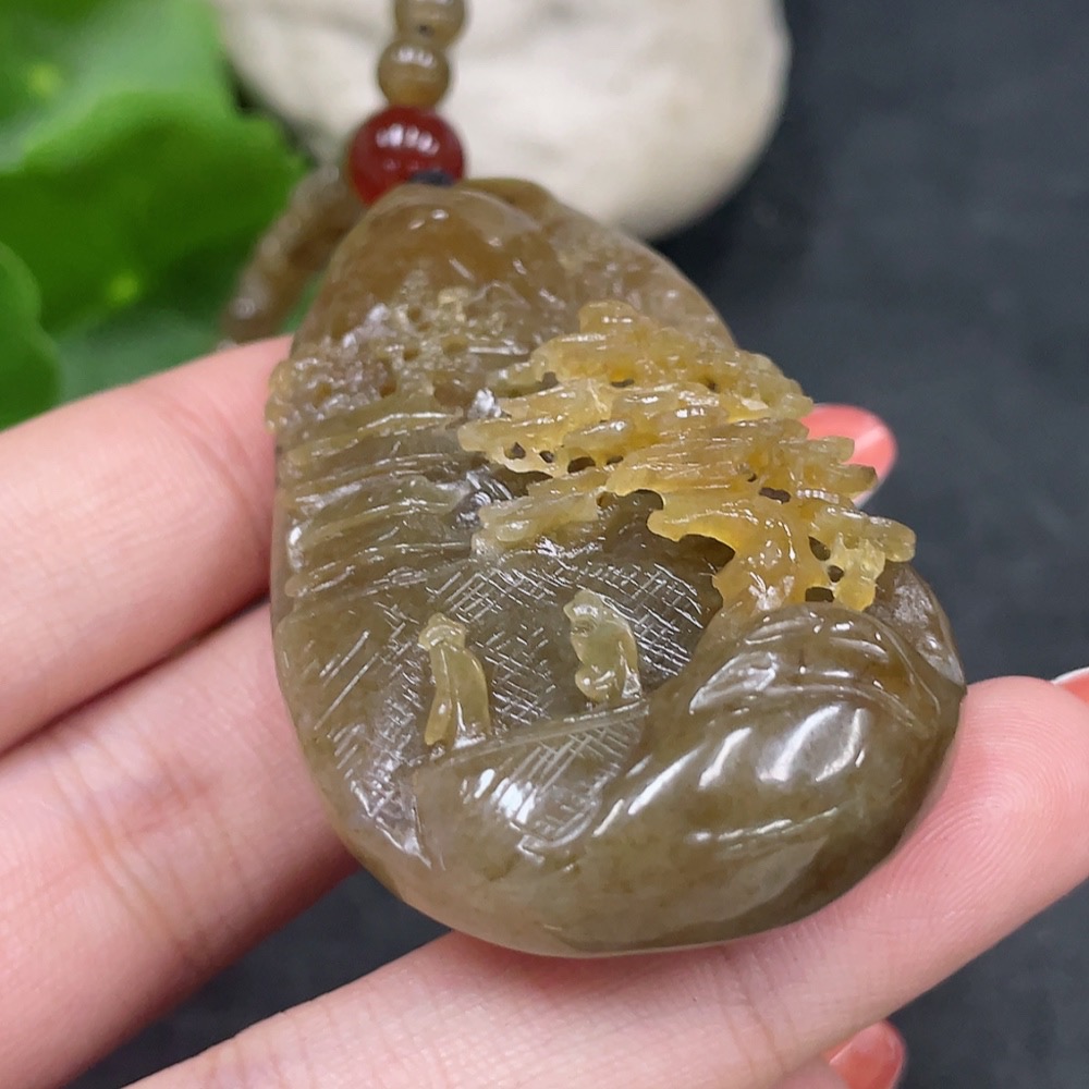 Hetian Jade Pendant Landscape with Non-Hetian Jade Beads Total Weight Approx. (Incl. Chain) 76.1g