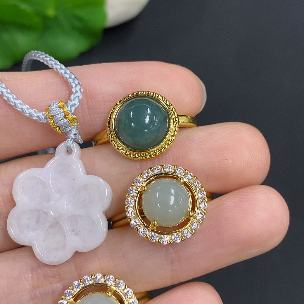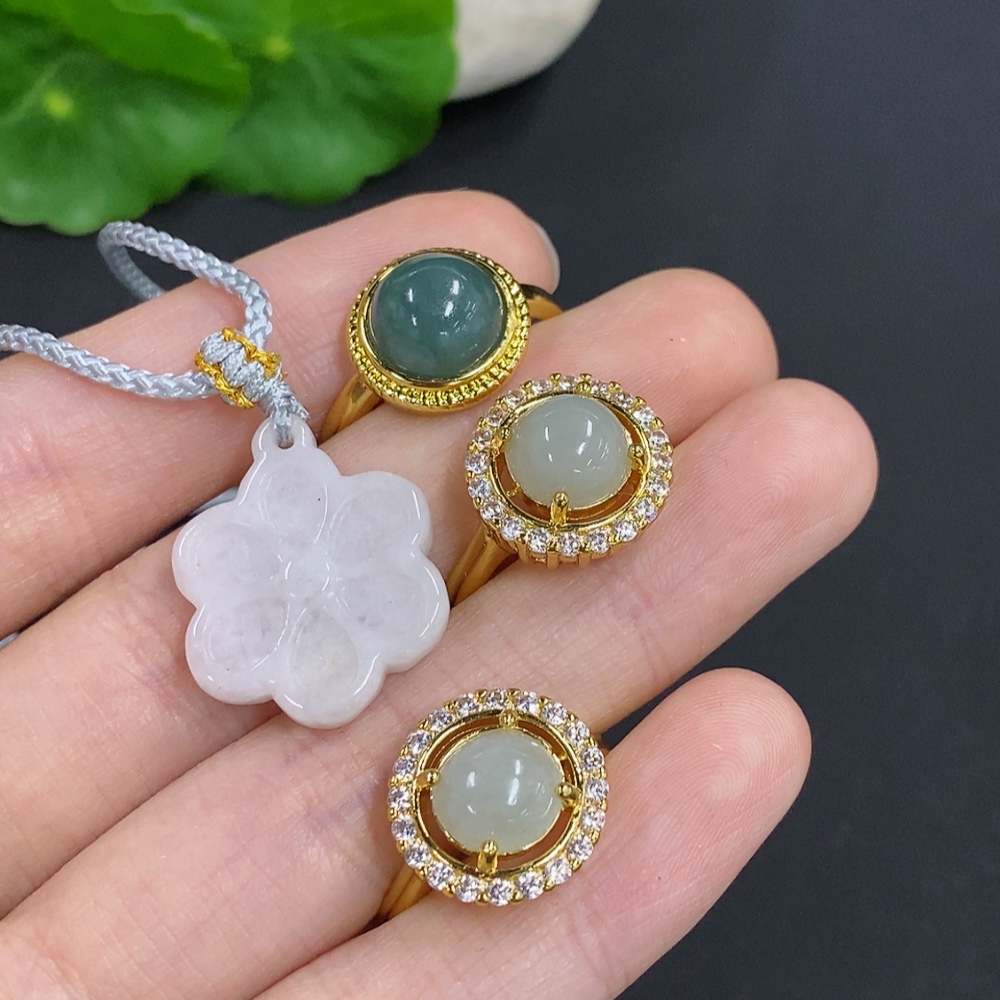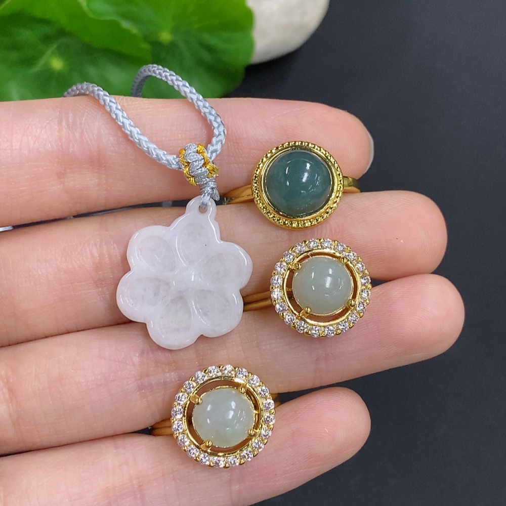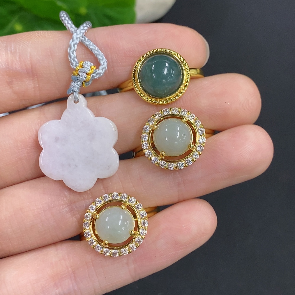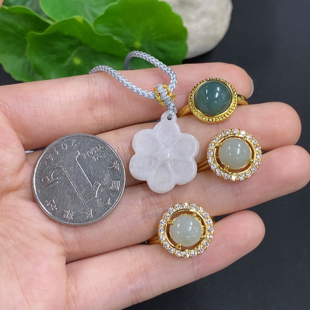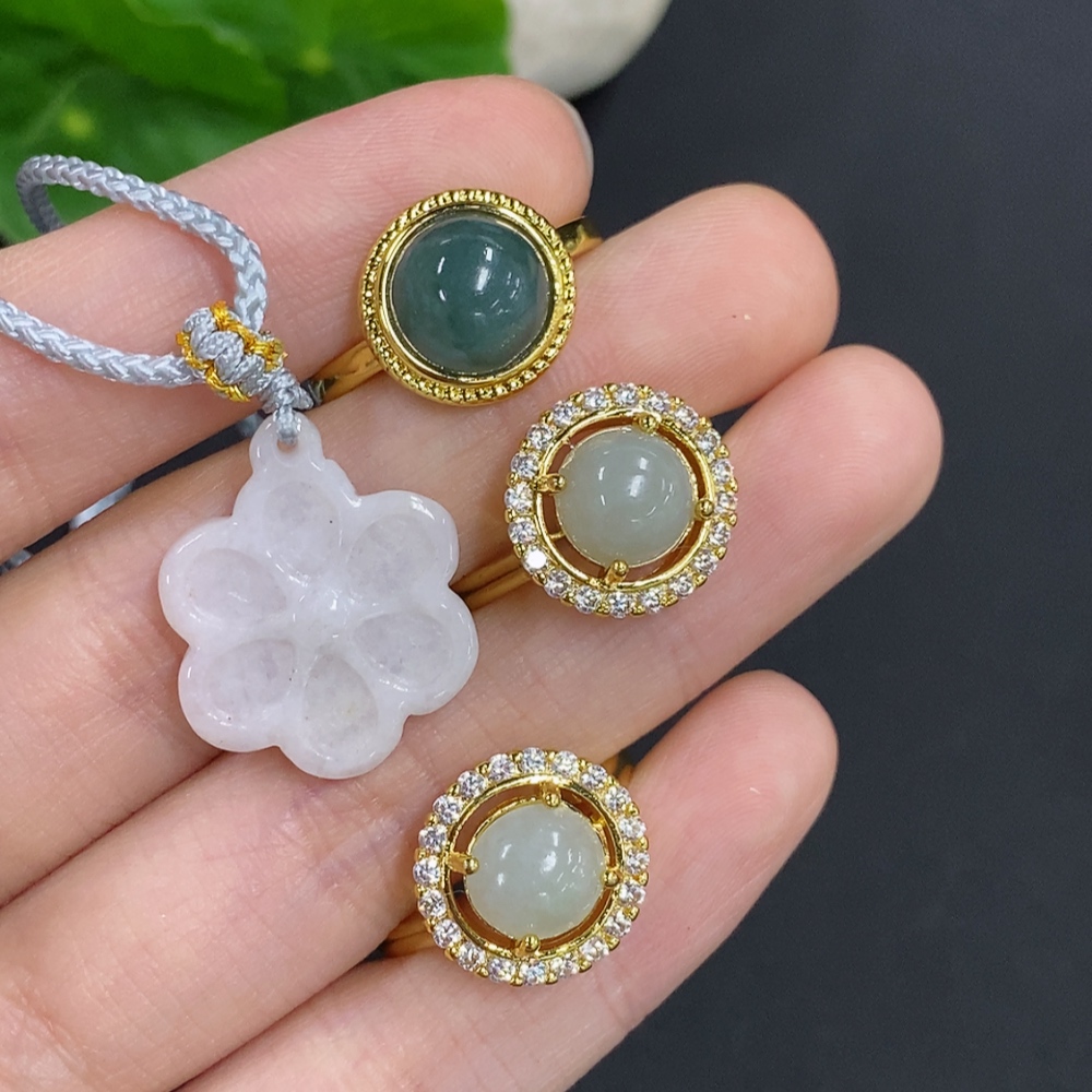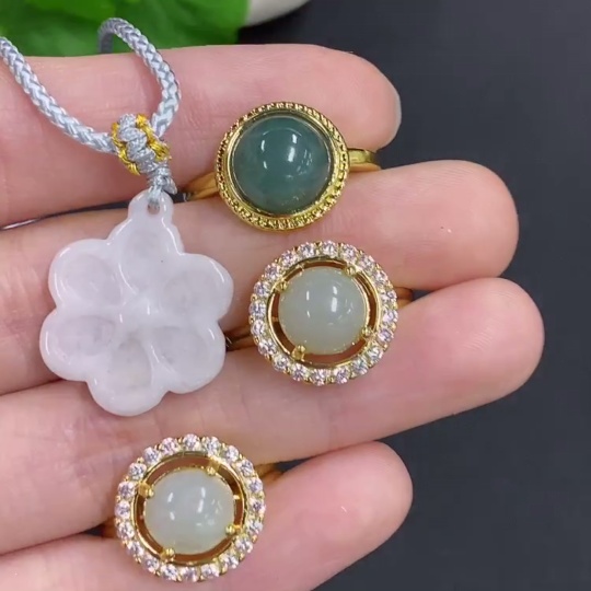 Jadeite Pendant and Ring Sell as a Lot Size Adjustable Non-Gold Inlaid