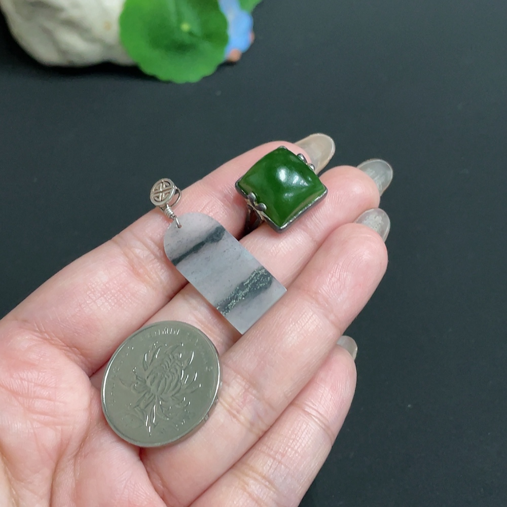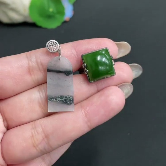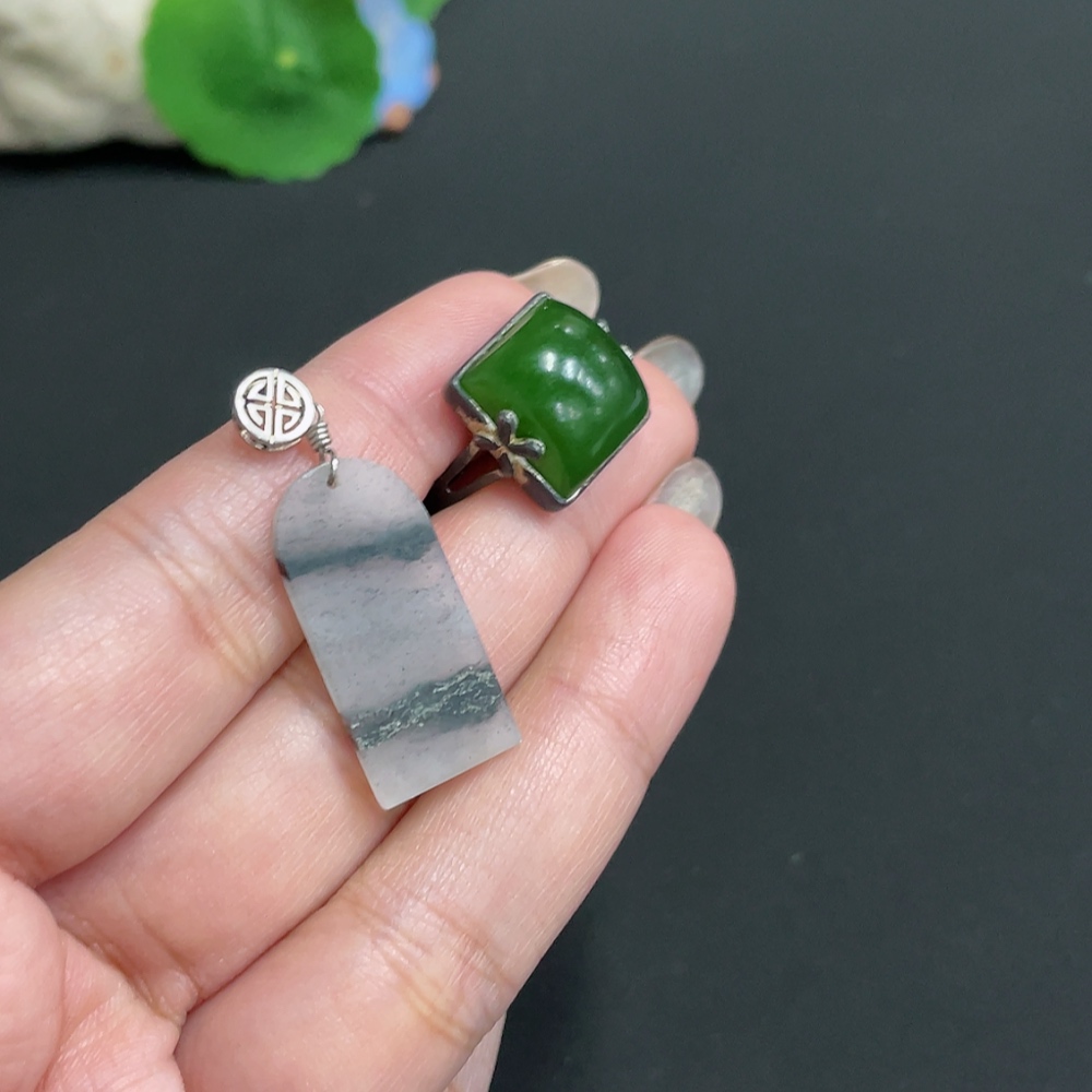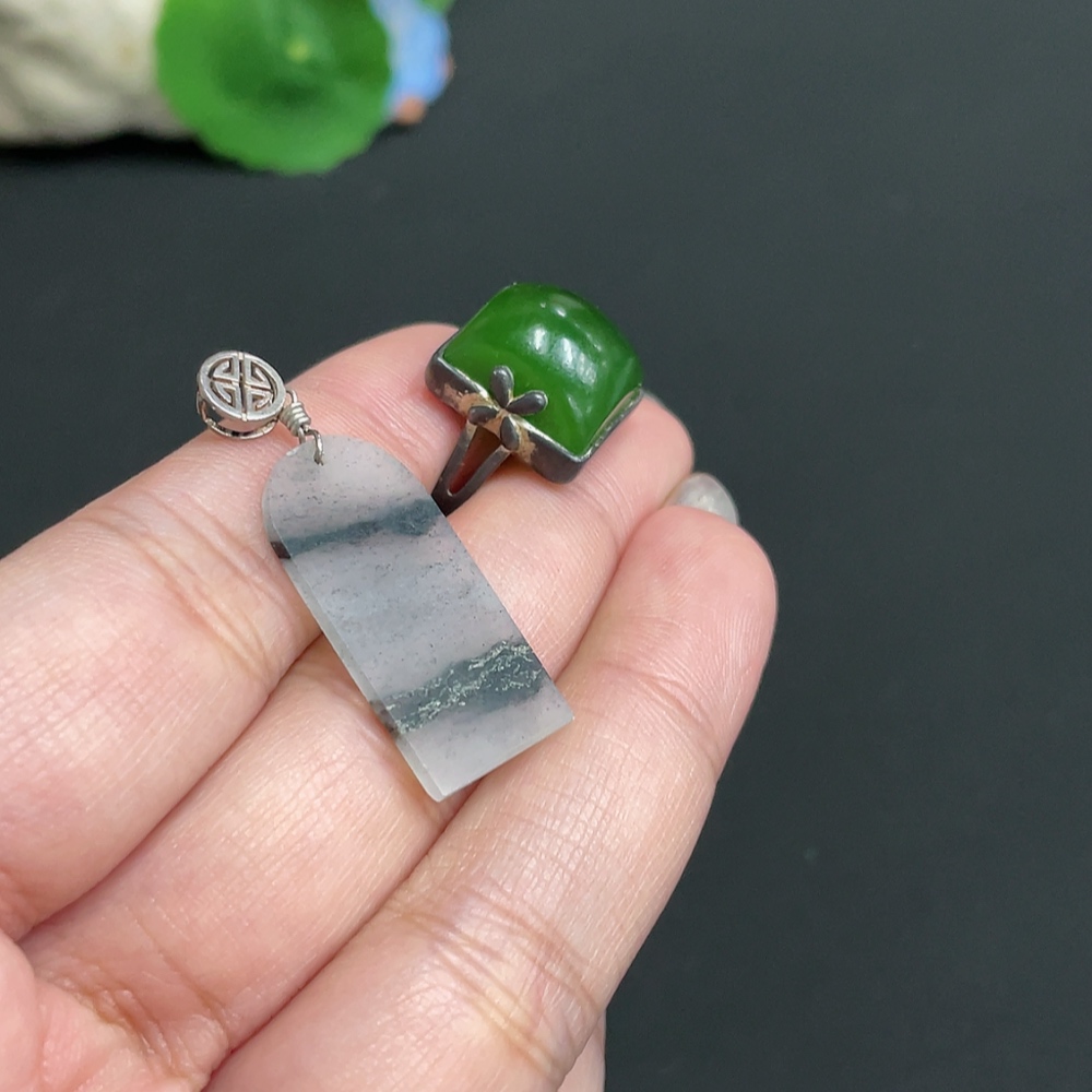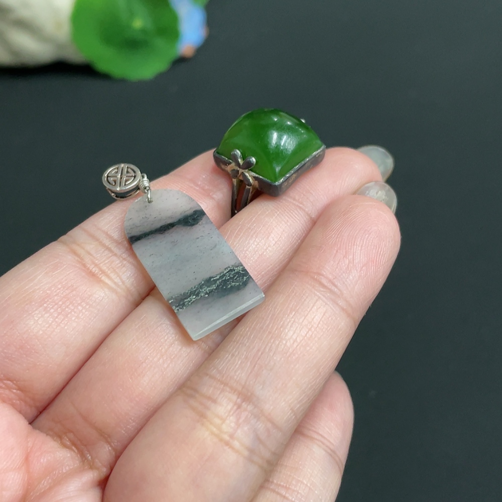 Hetian Jade Pendant + Adjustable Ring, Total Weight Approx. 7.3g, Non-Gold