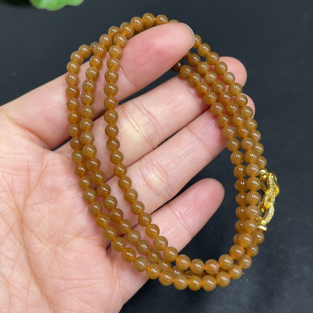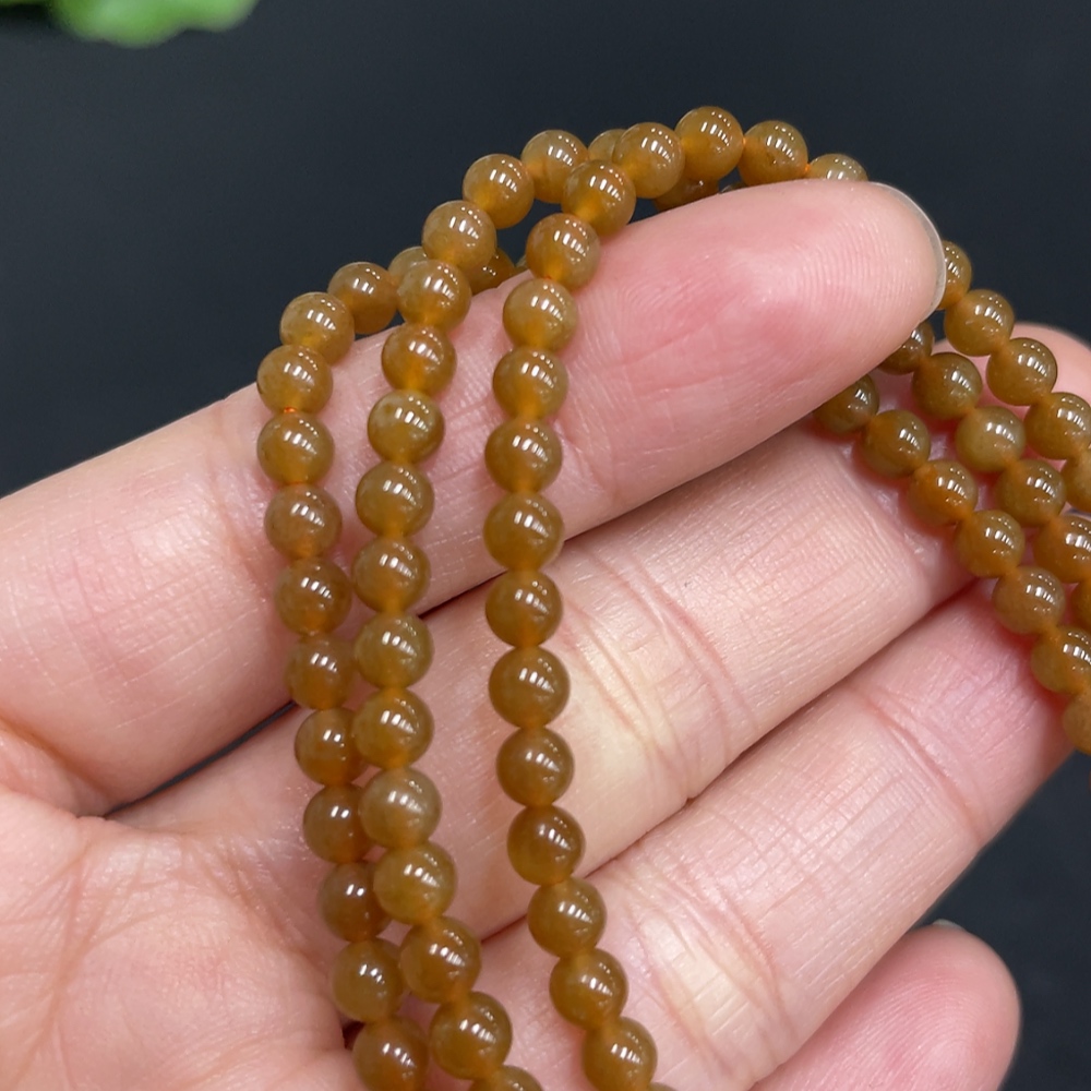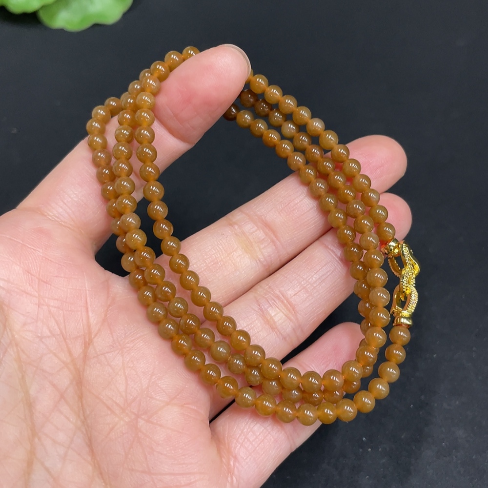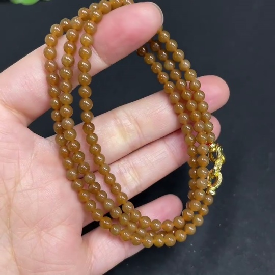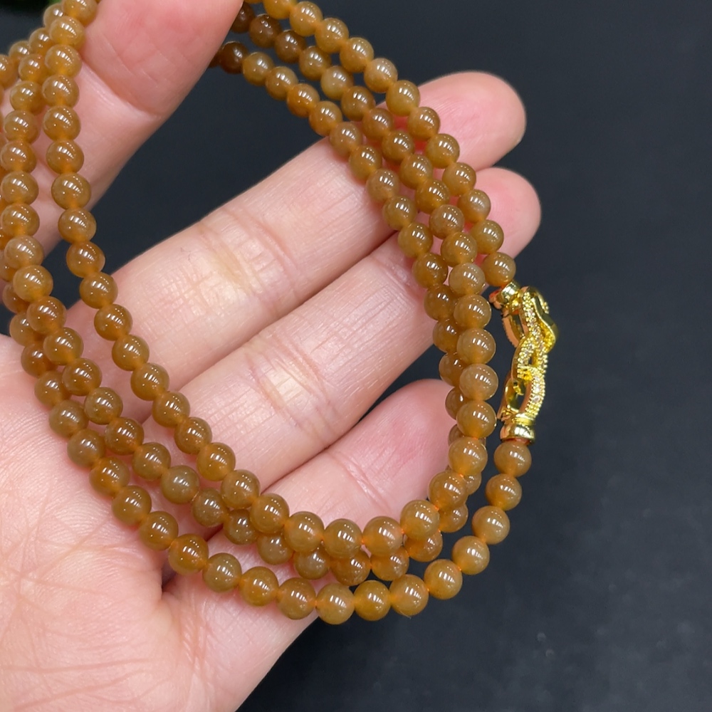 Hetian Jade Bead Necklace Approx. 3.8mm Non-Gold-Inlaid Total Weight Approx. 14.2g