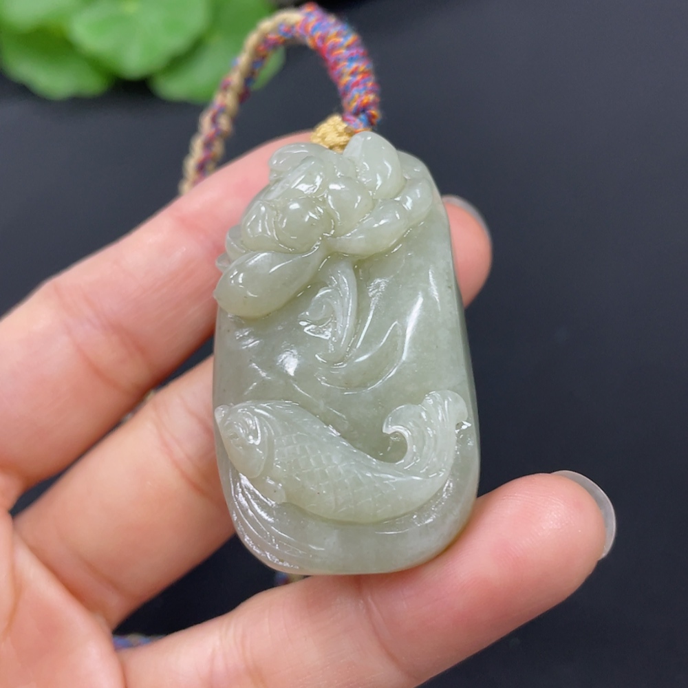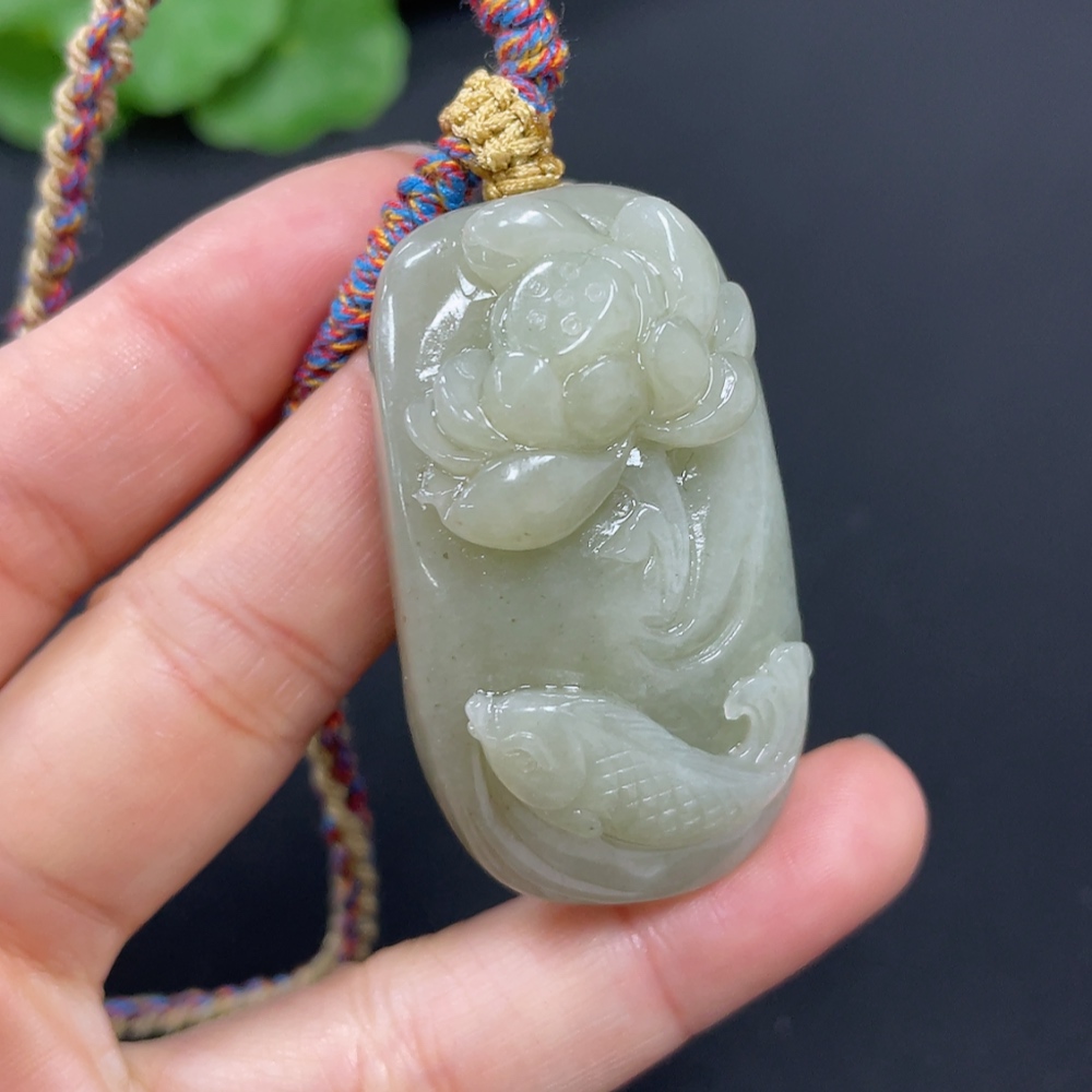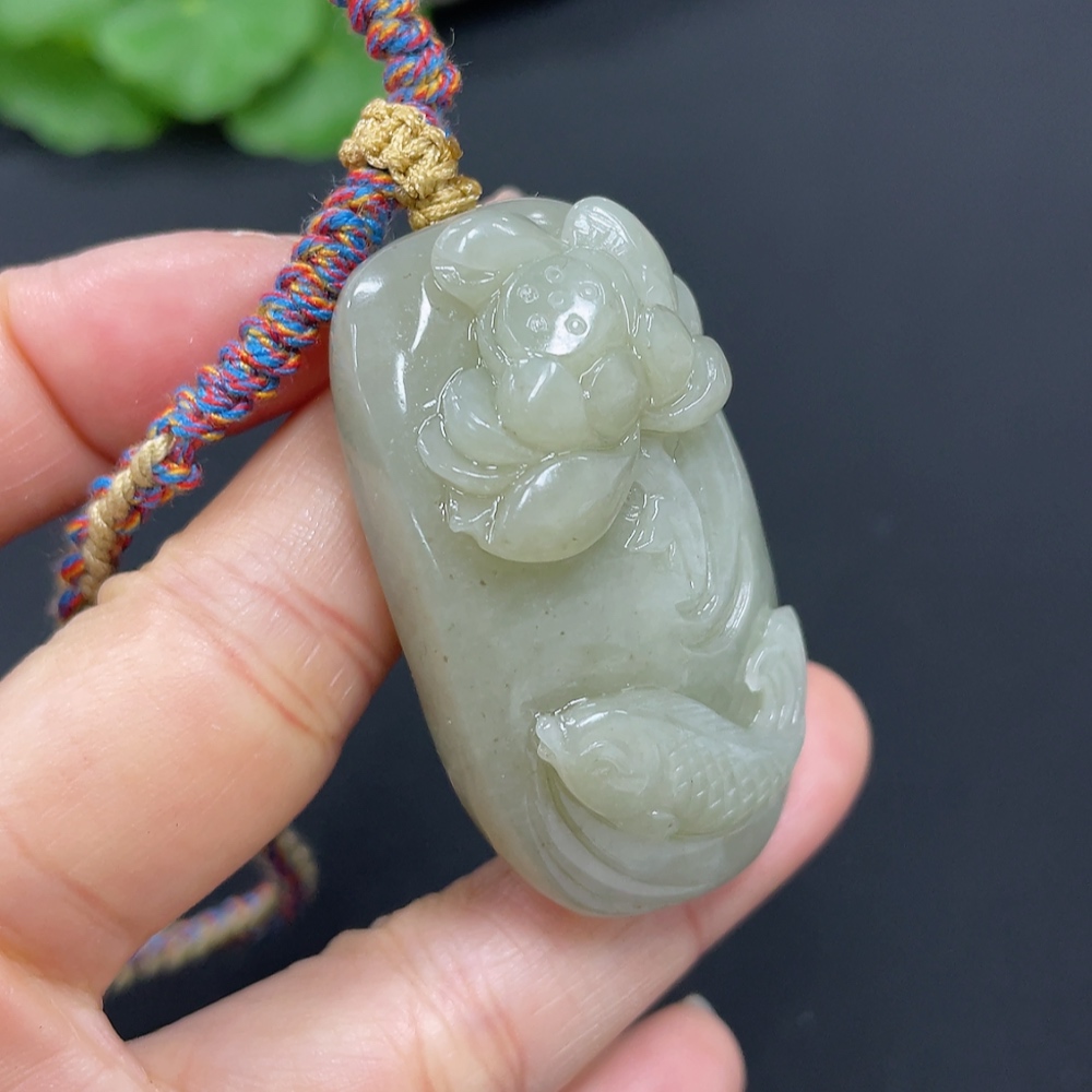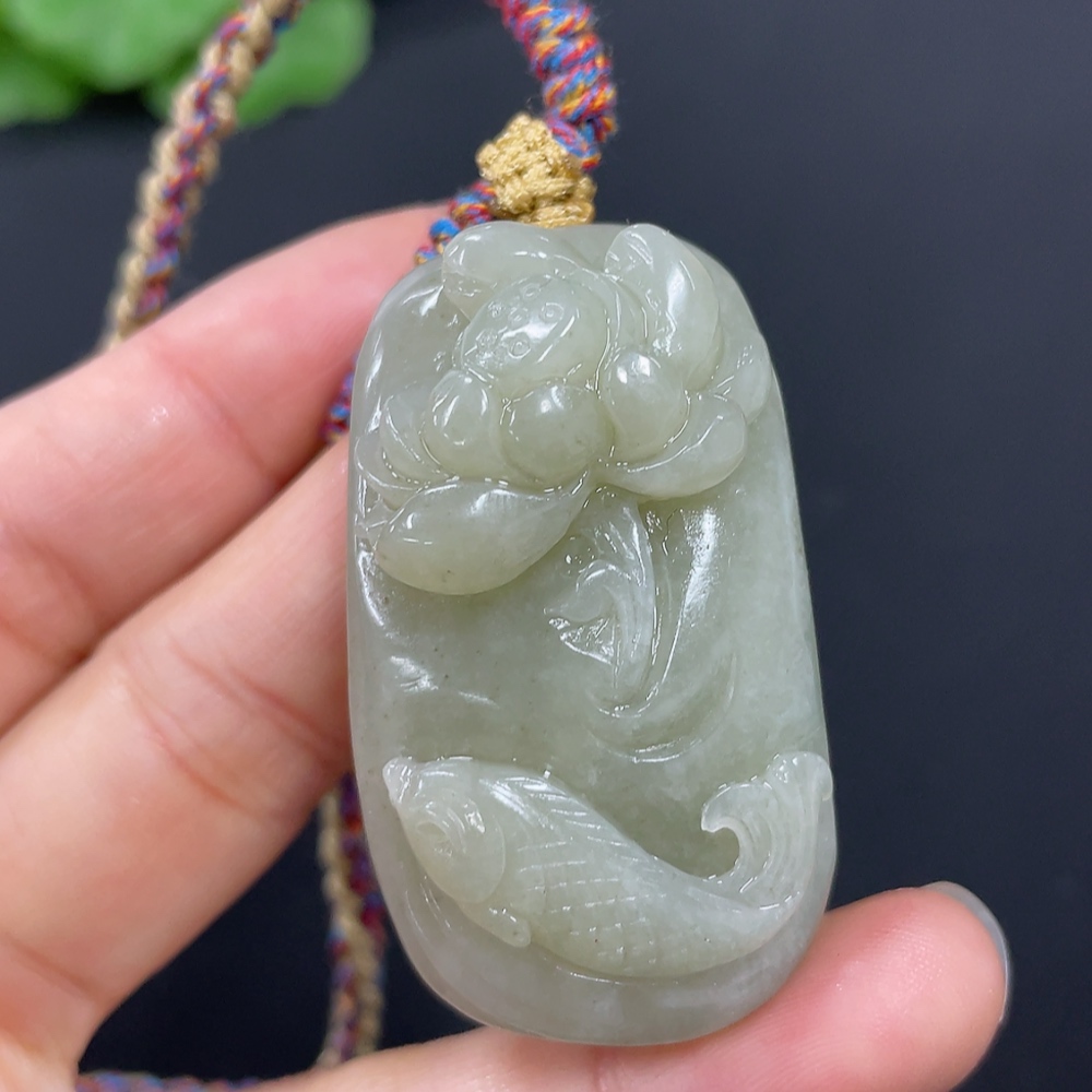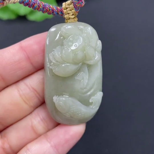 Hetian Jade Pendant Lotus and Fish