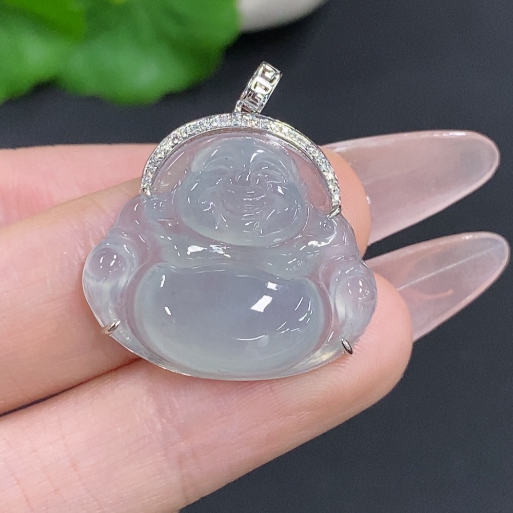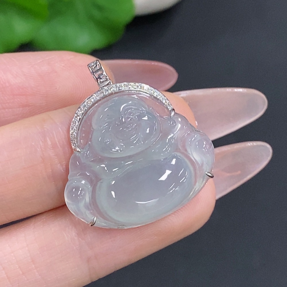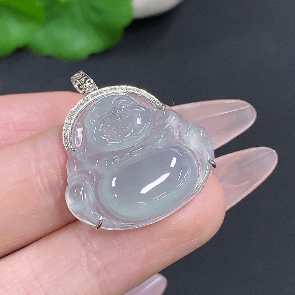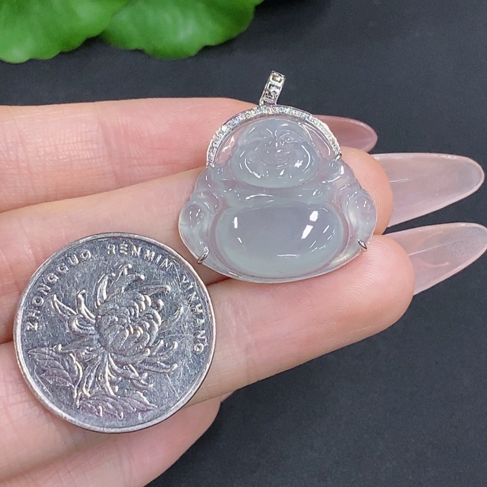 Jadeite Buddha Pendant with 18k Gold, Total Weight Approx. 4g, Diamond Accented