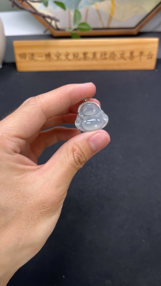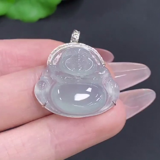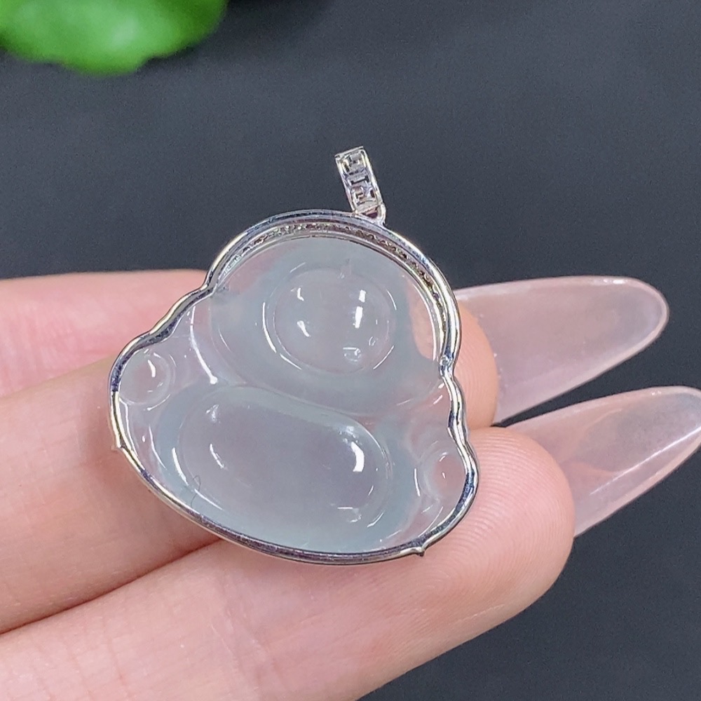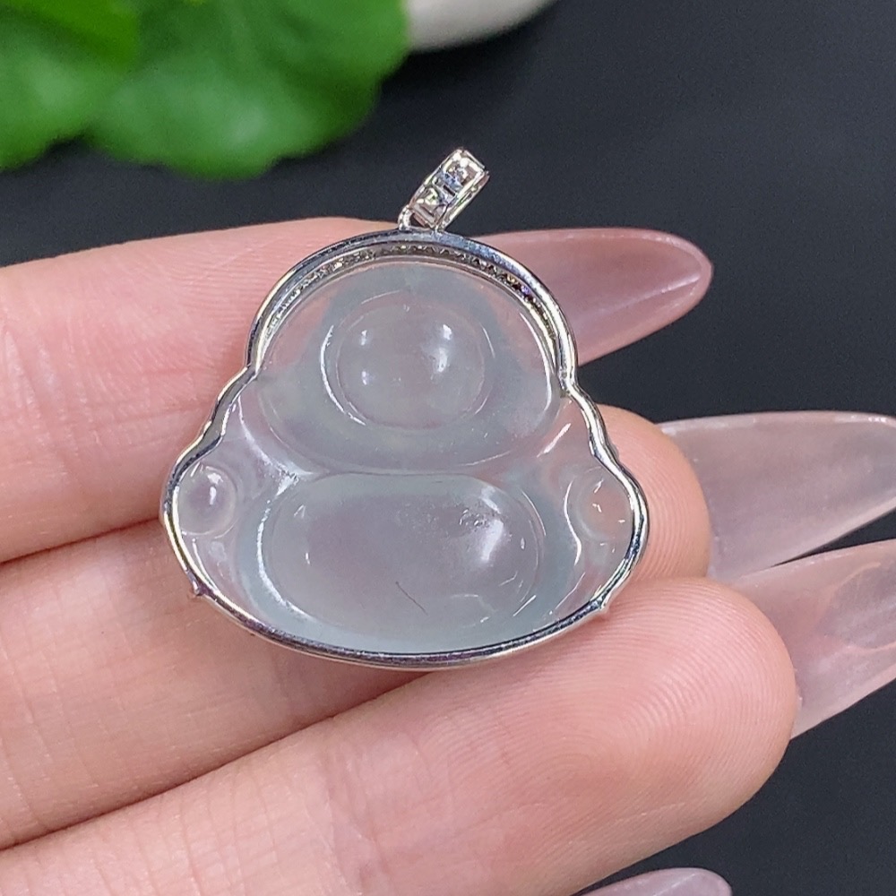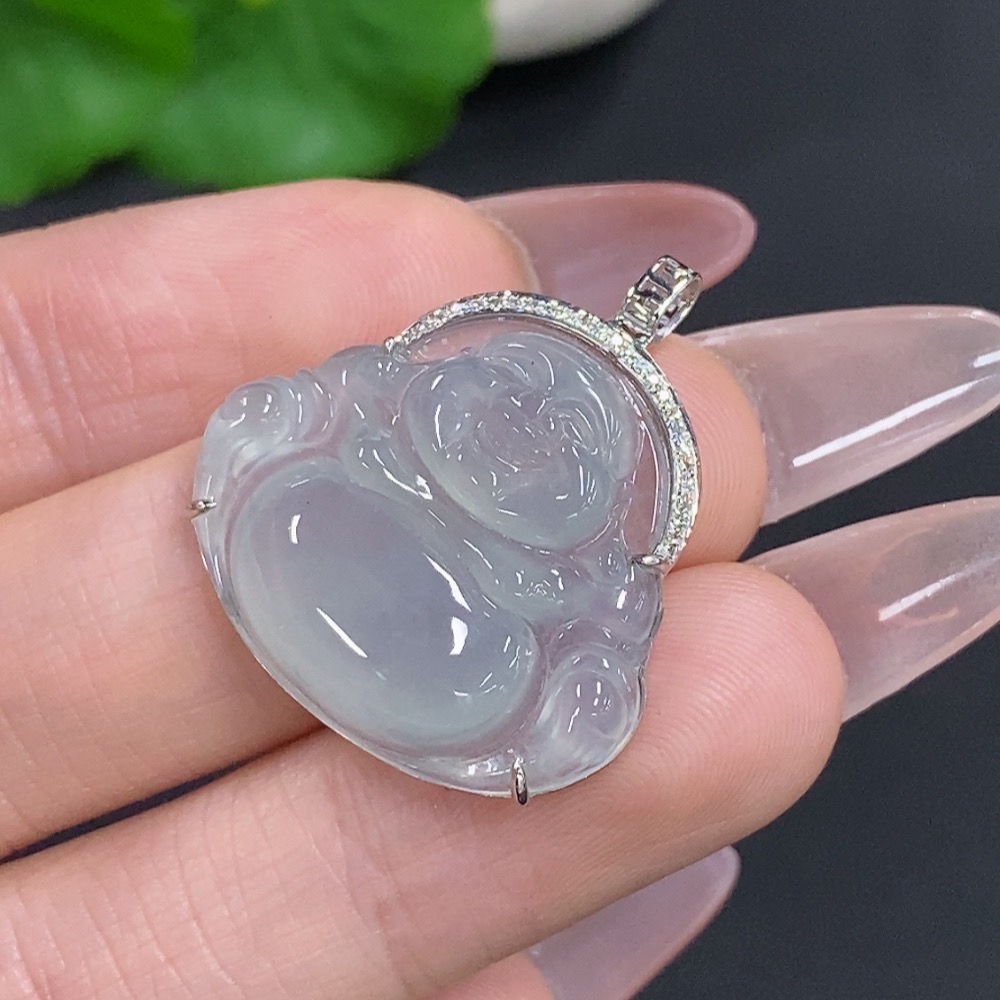 Jadeite Buddha Pendant with 18k Gold, Total Weight Approx. 4g, Diamond Accented