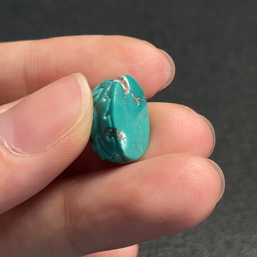 Turquoise inlay, color origin undetermined, containing other mineral components, total weight approximately 2.35g