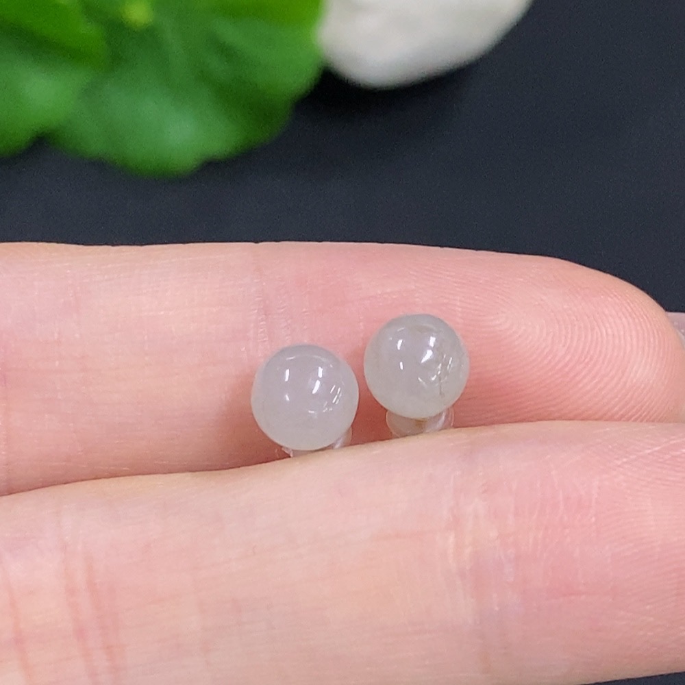 Jadeite Single Bead Stud Earrings 18k Gold Total Weight Approx. 0.9g