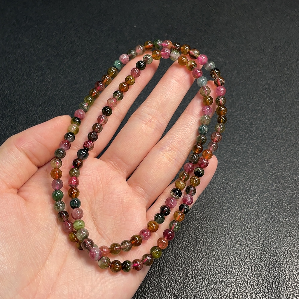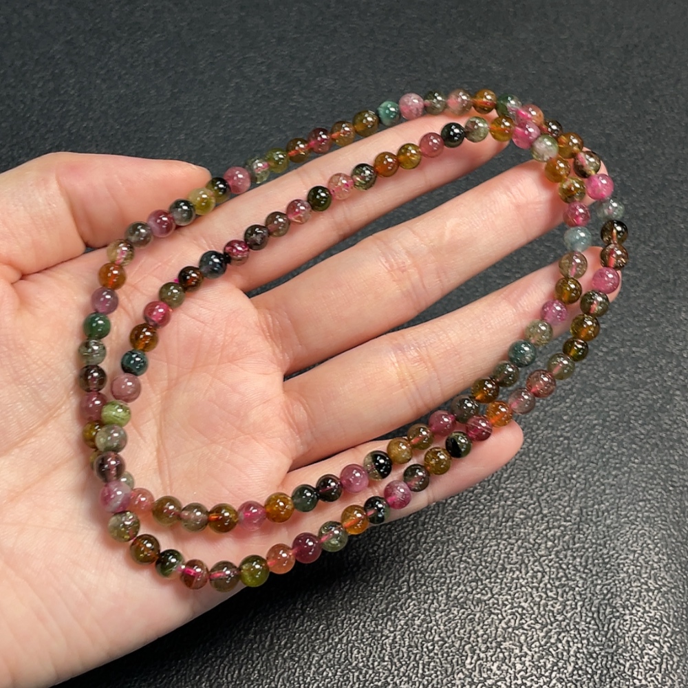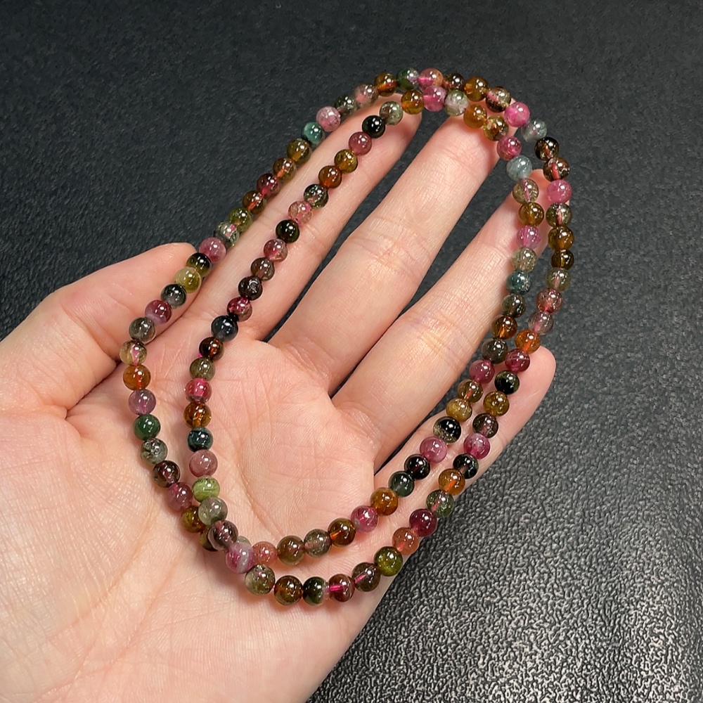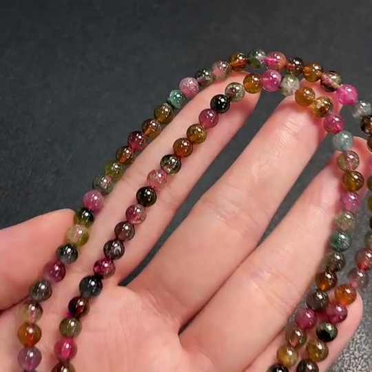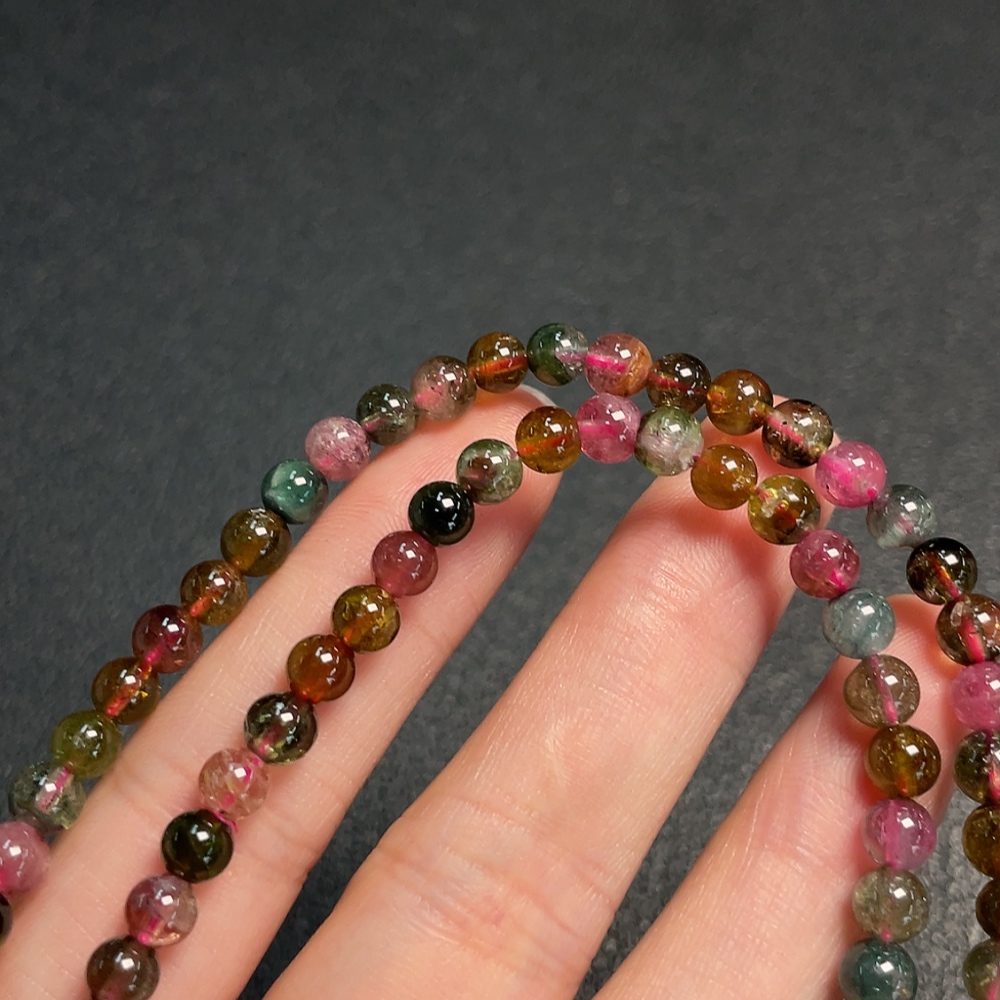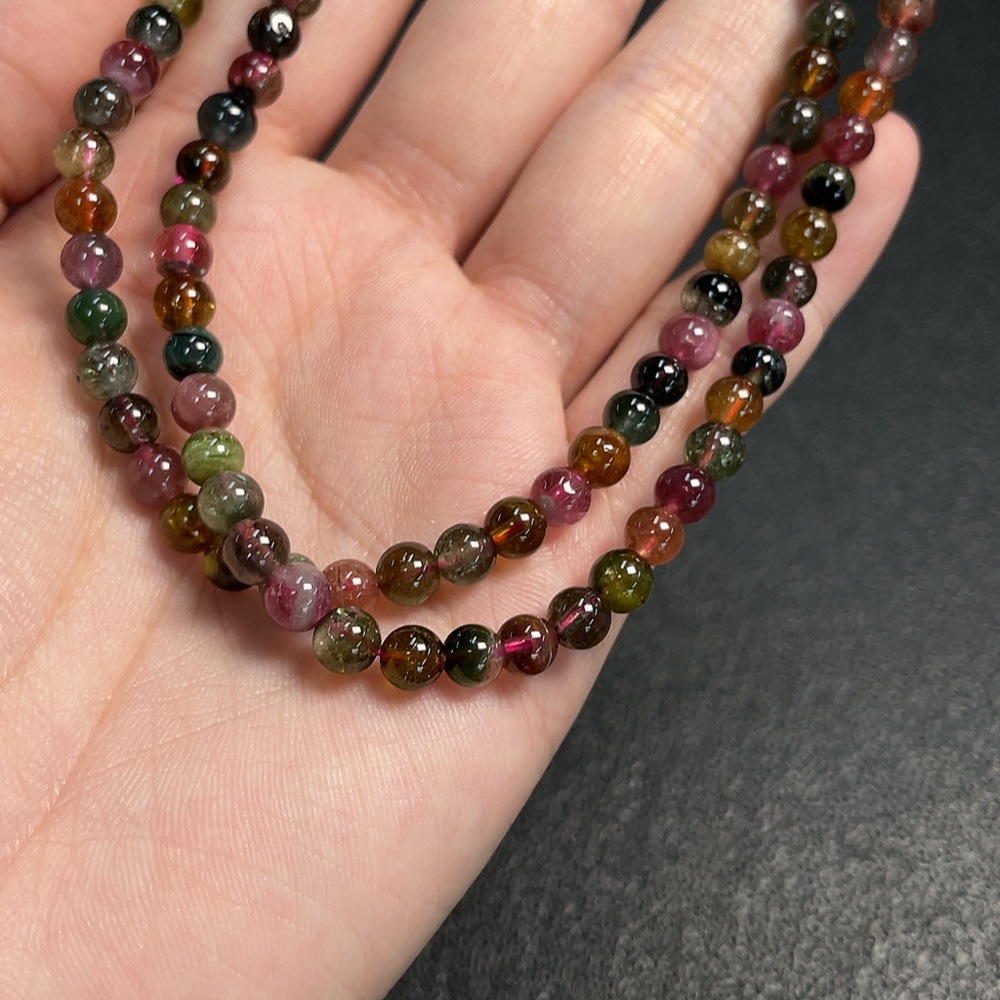 Tourmaline Bead Strand with Visible Organic Matter, Total Weight Approx. 23.07g, Size About 5.2mm