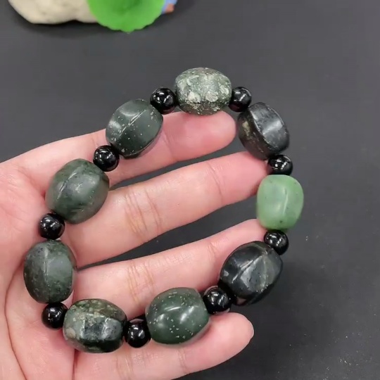 Hetian Jade Bracelet, Total Weight Approx. 74.2g, Contains Other Mineral Components, Beads Not Hetian Jade