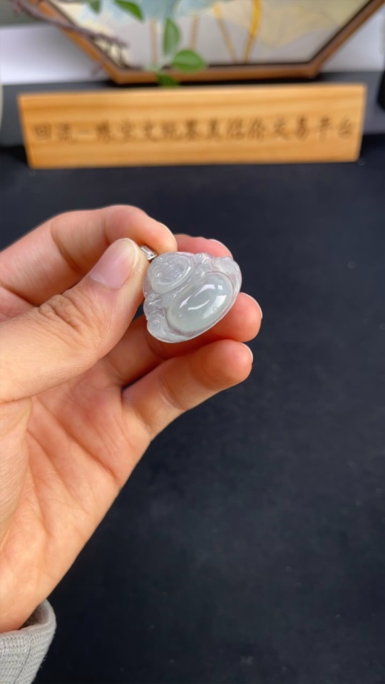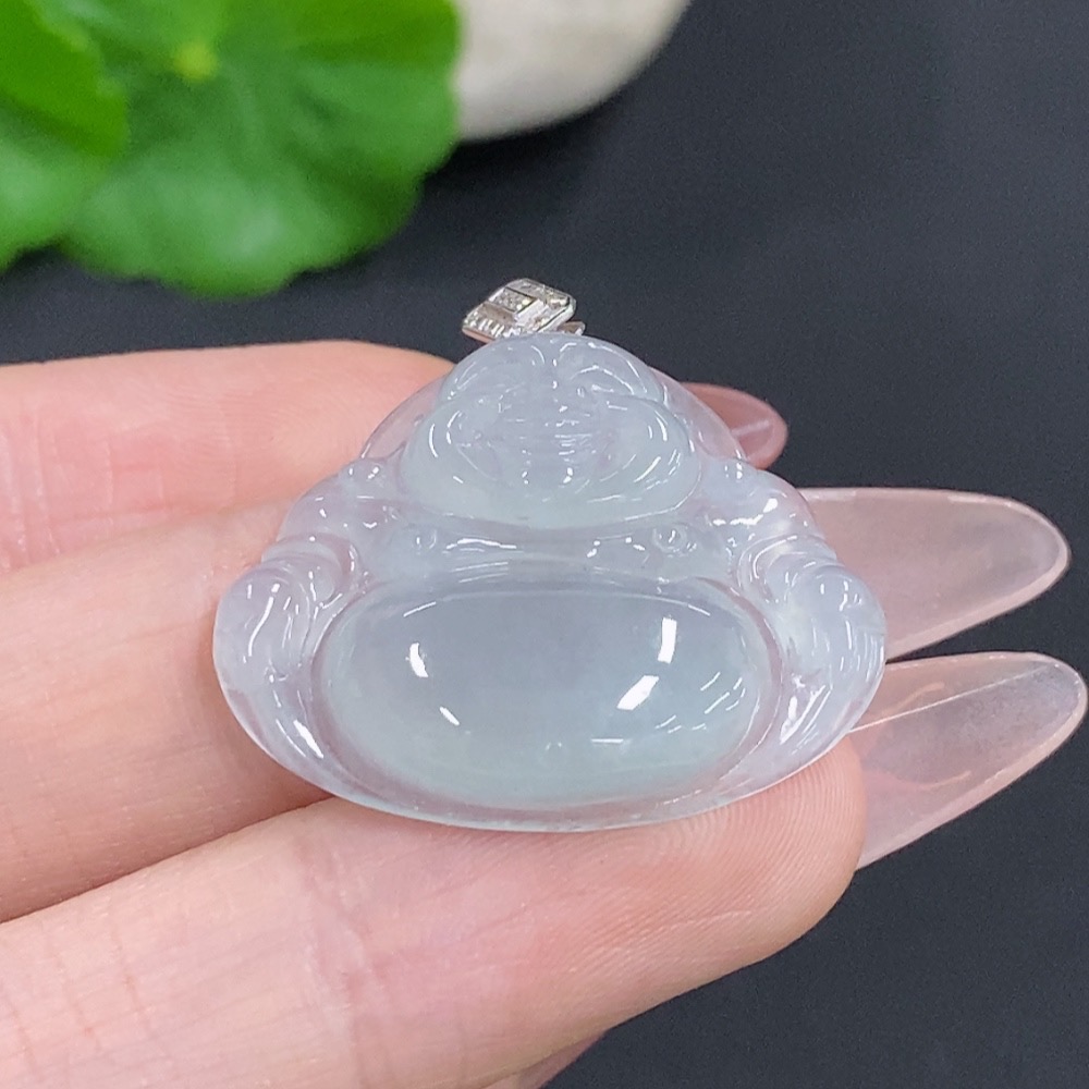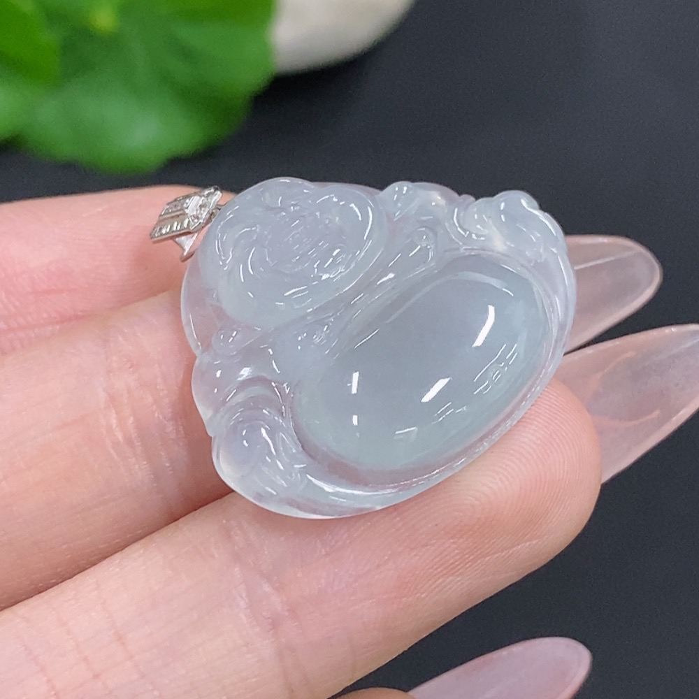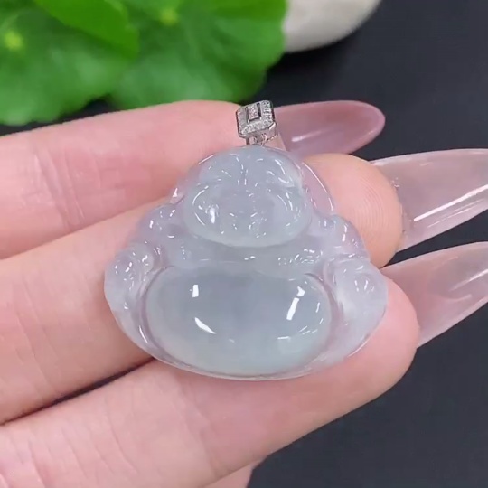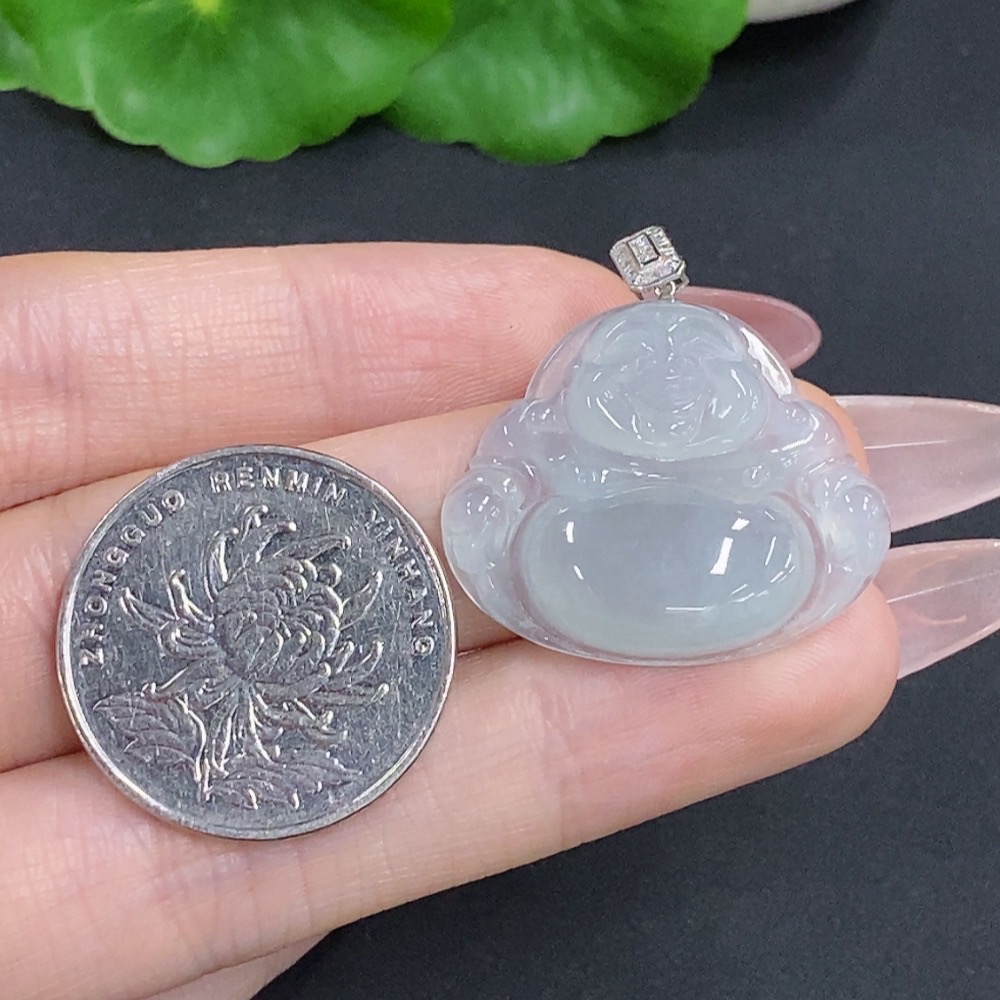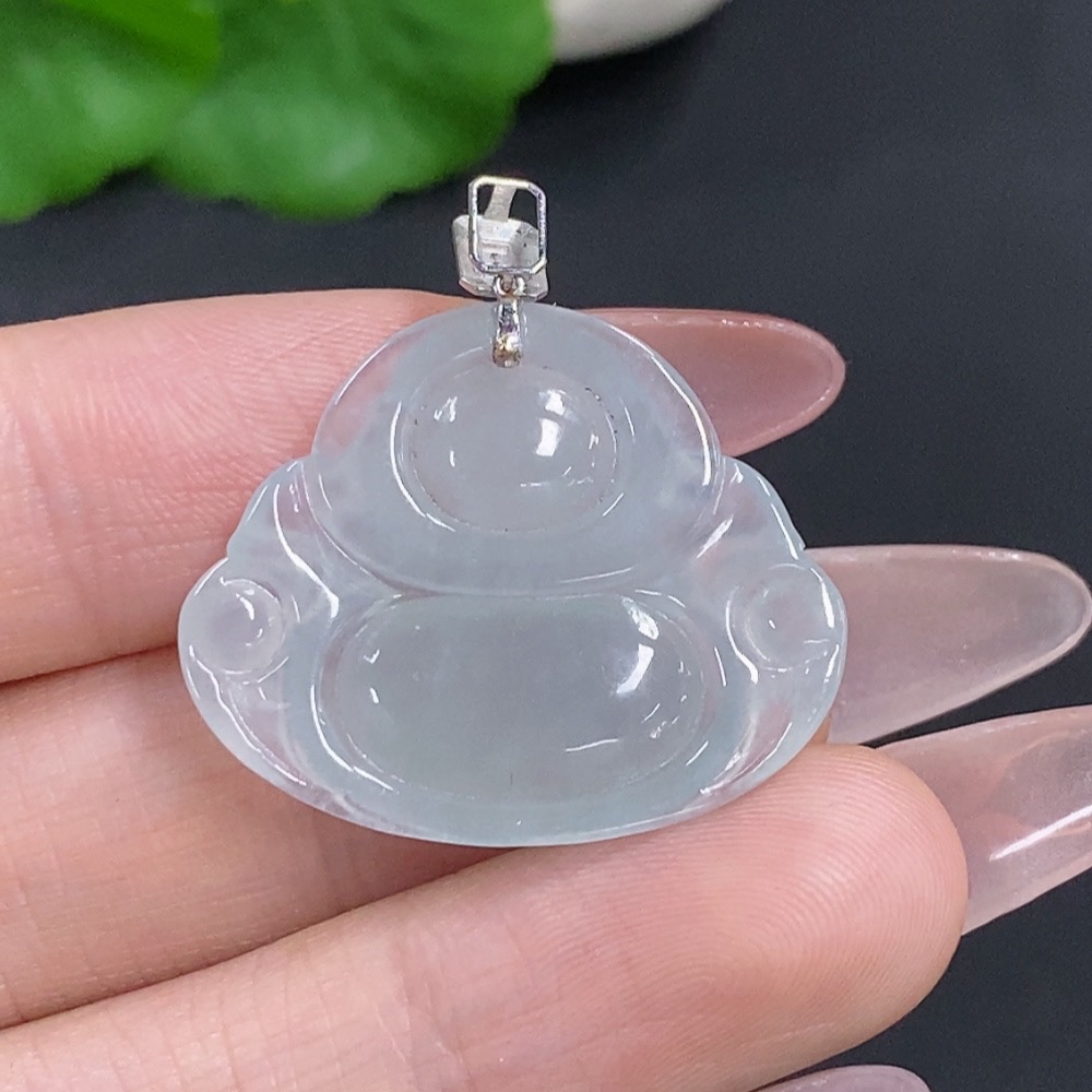Jadeite Buddha Pendant with 18K Gold Clasp, Total Weight Approximately 5.5g, Set with Diamonds