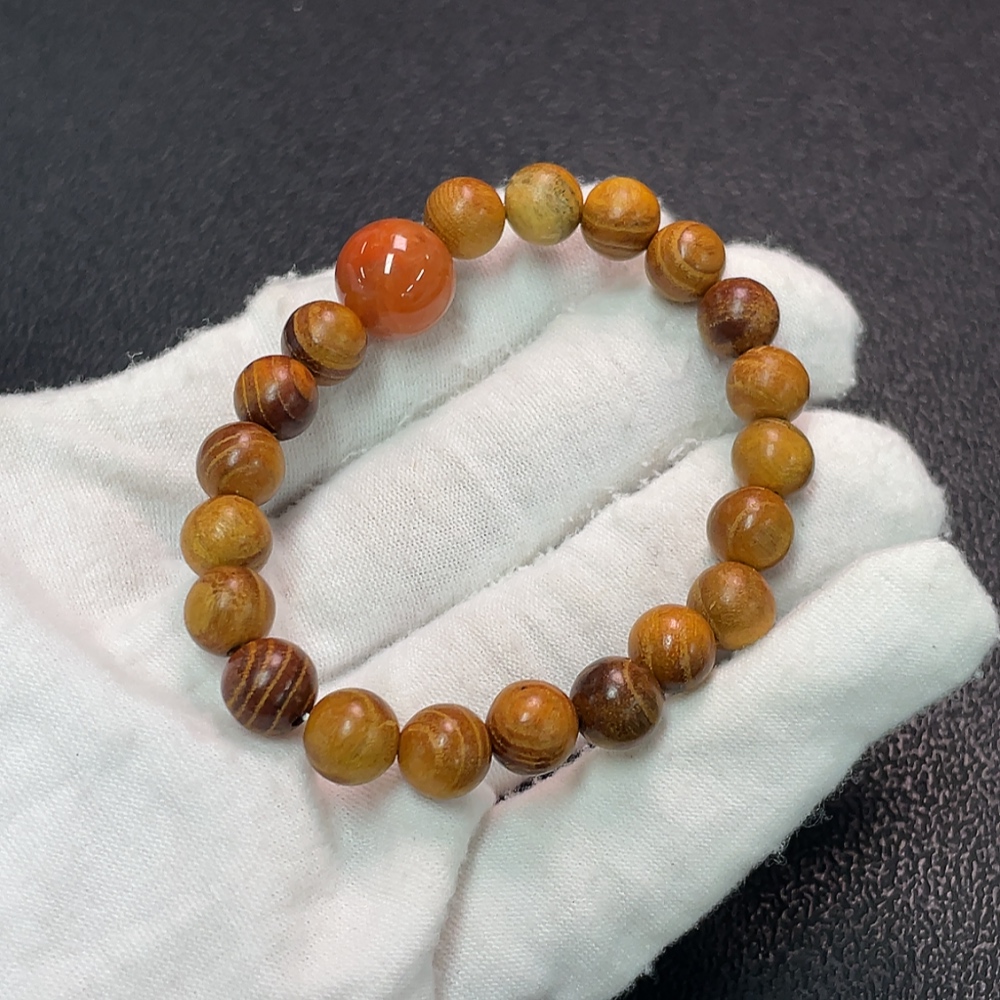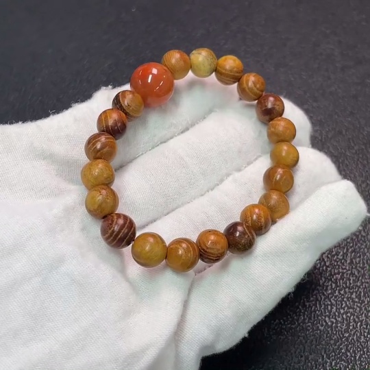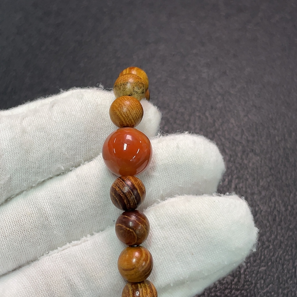 South Red Agate Bracelet with Visible Organic Matter, Total Weight Approx. 7g, Size About 12.2mm
