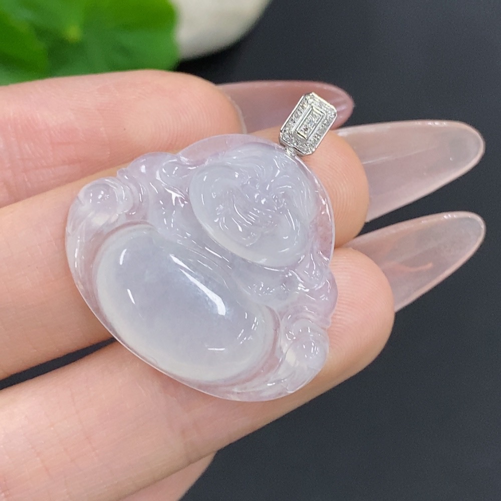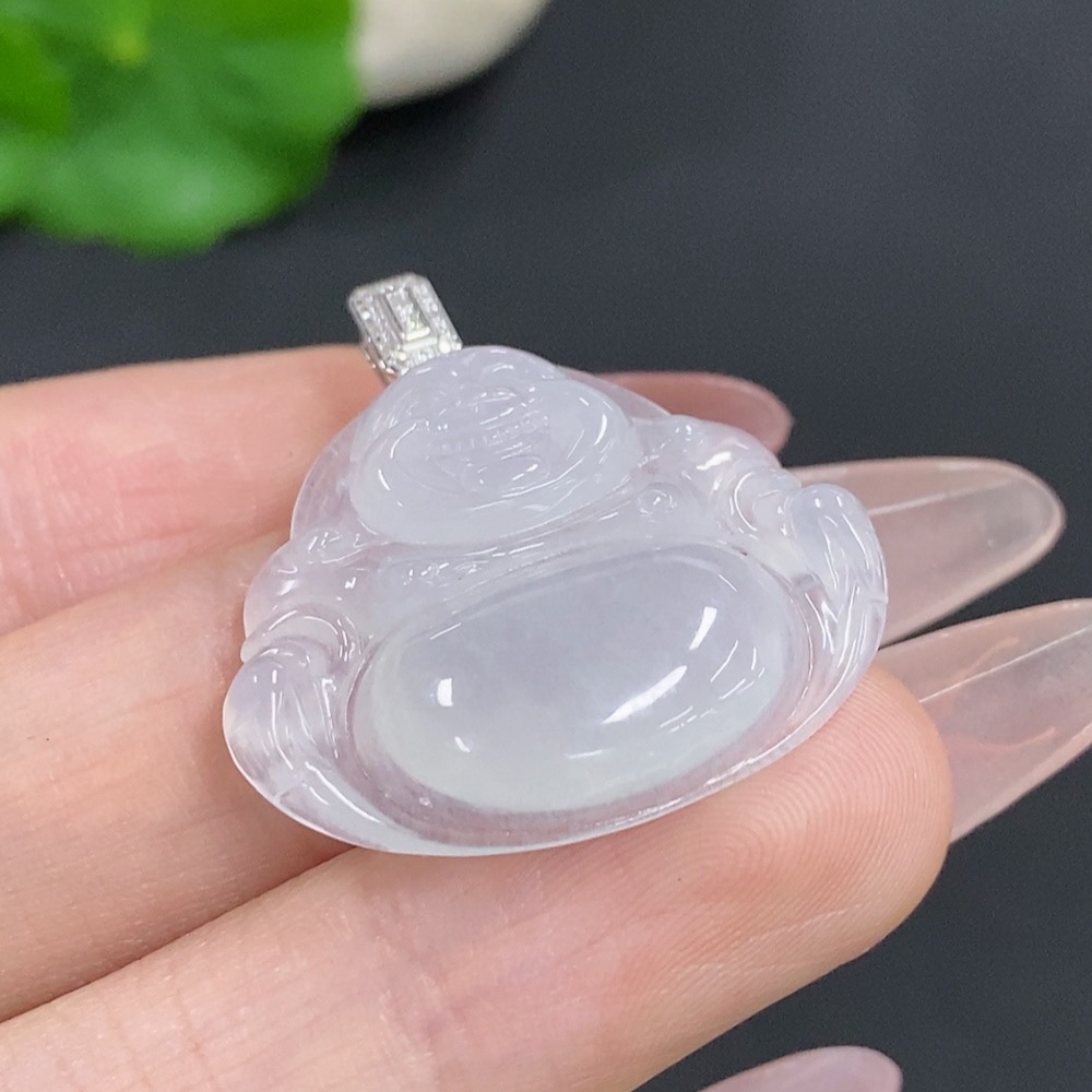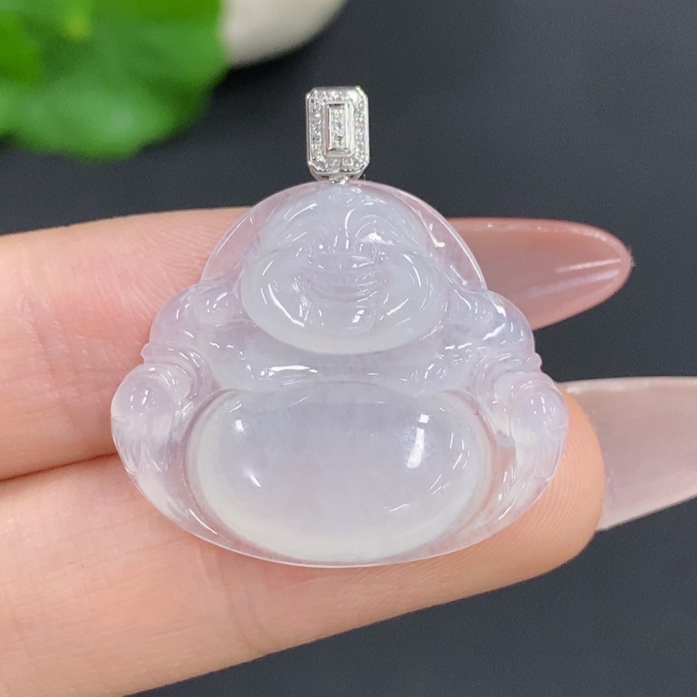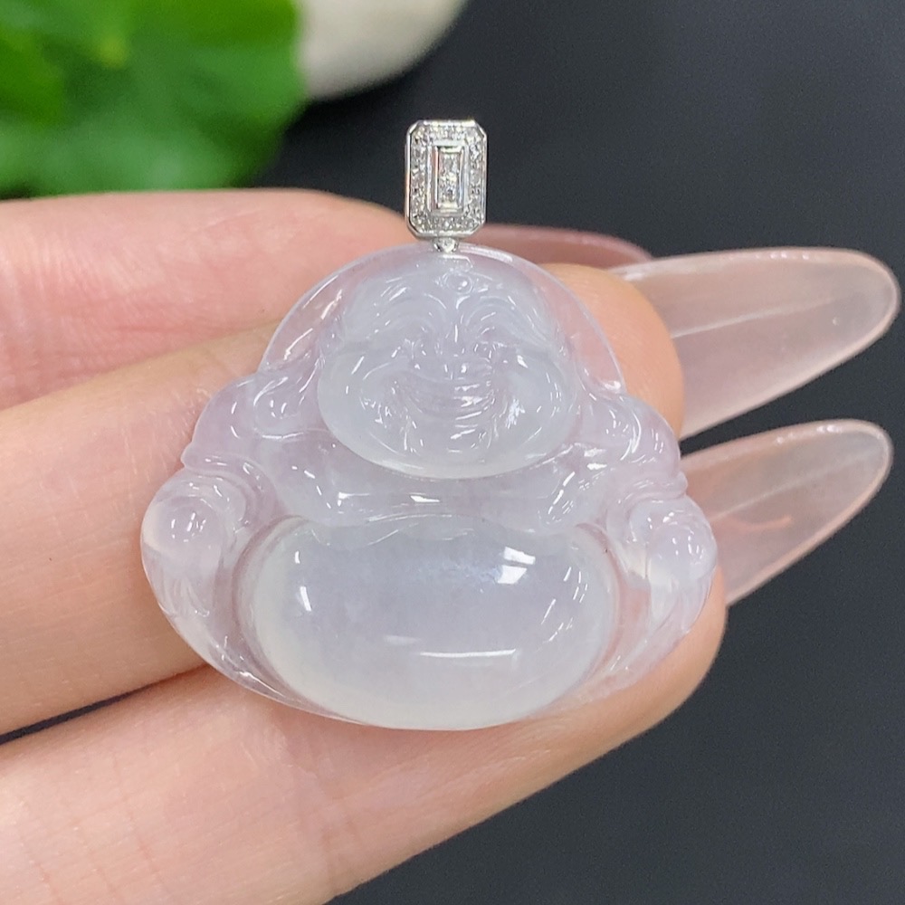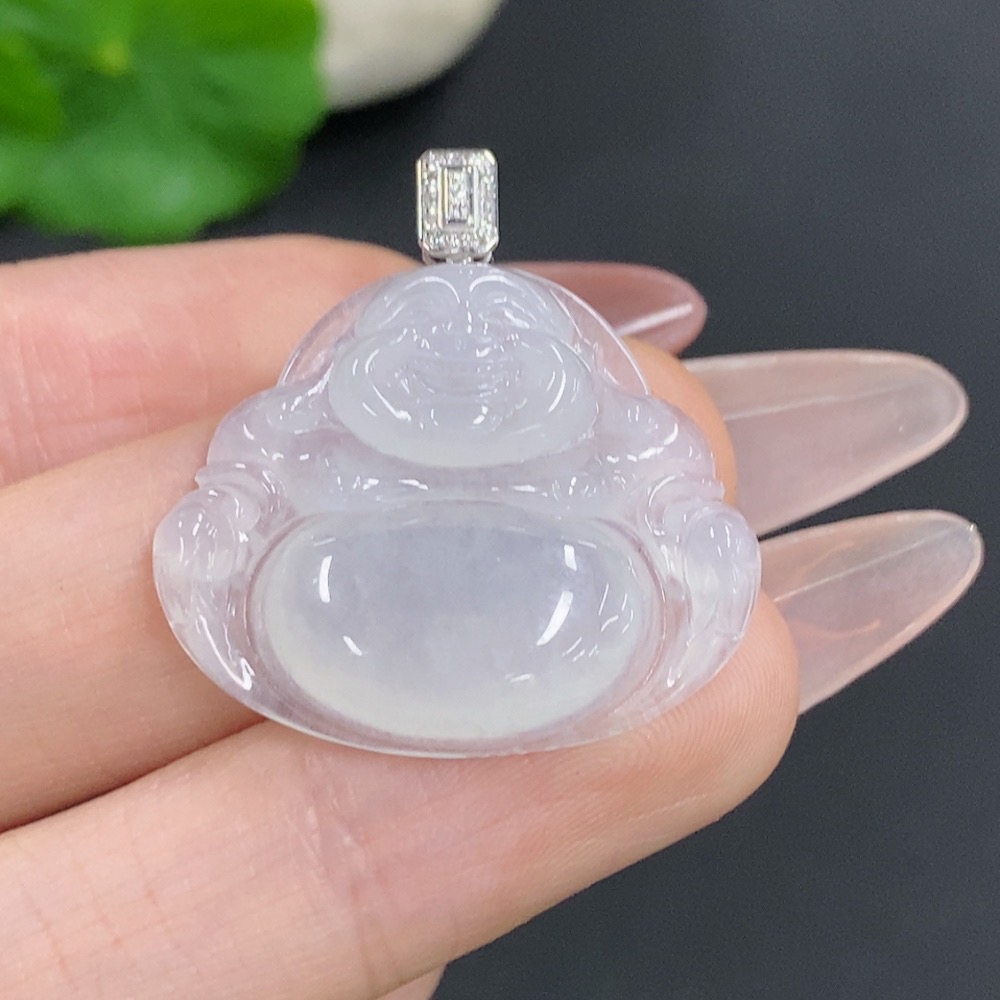 Jadeite Buddha Pendant with 18K Gold Clasp, Total Weight Approx. 5.2g, Diamond Accents