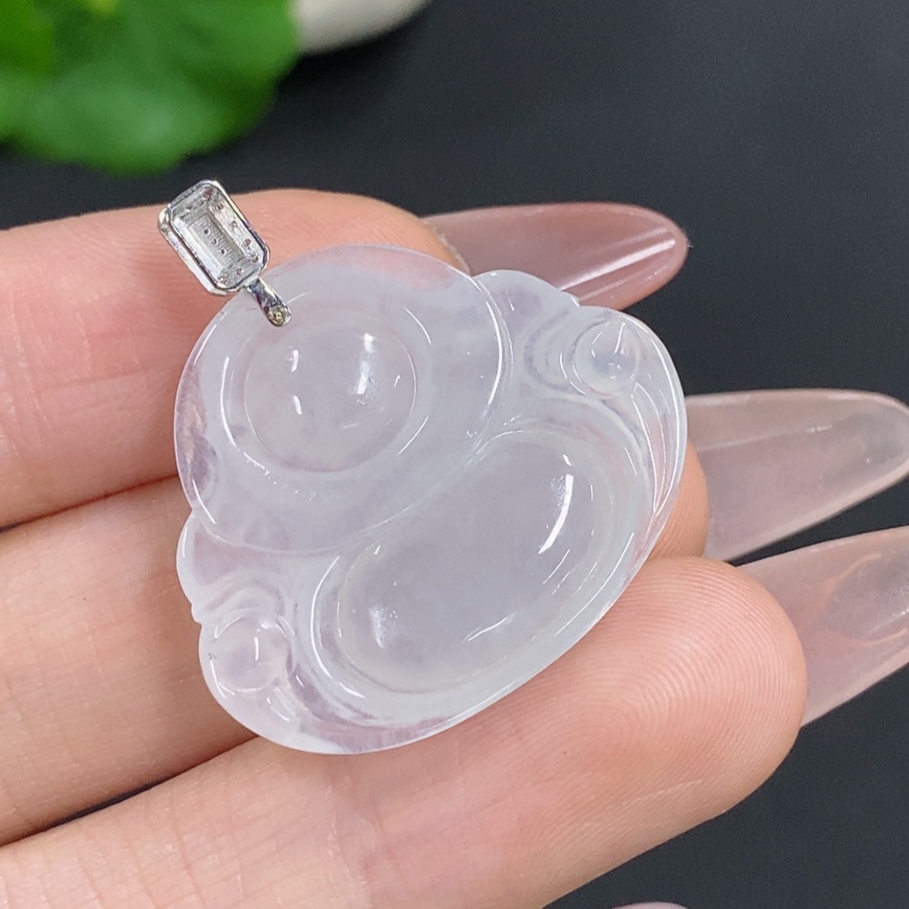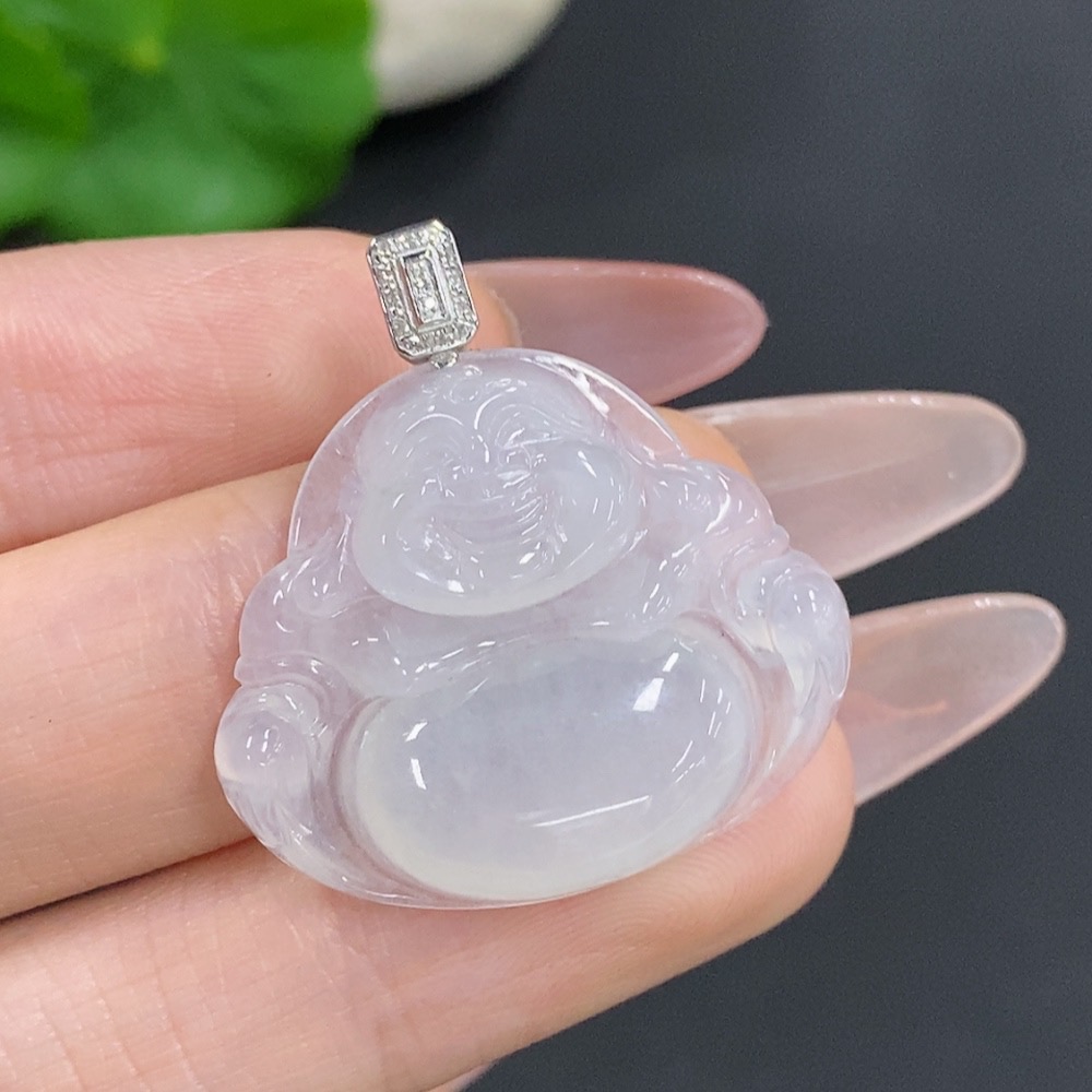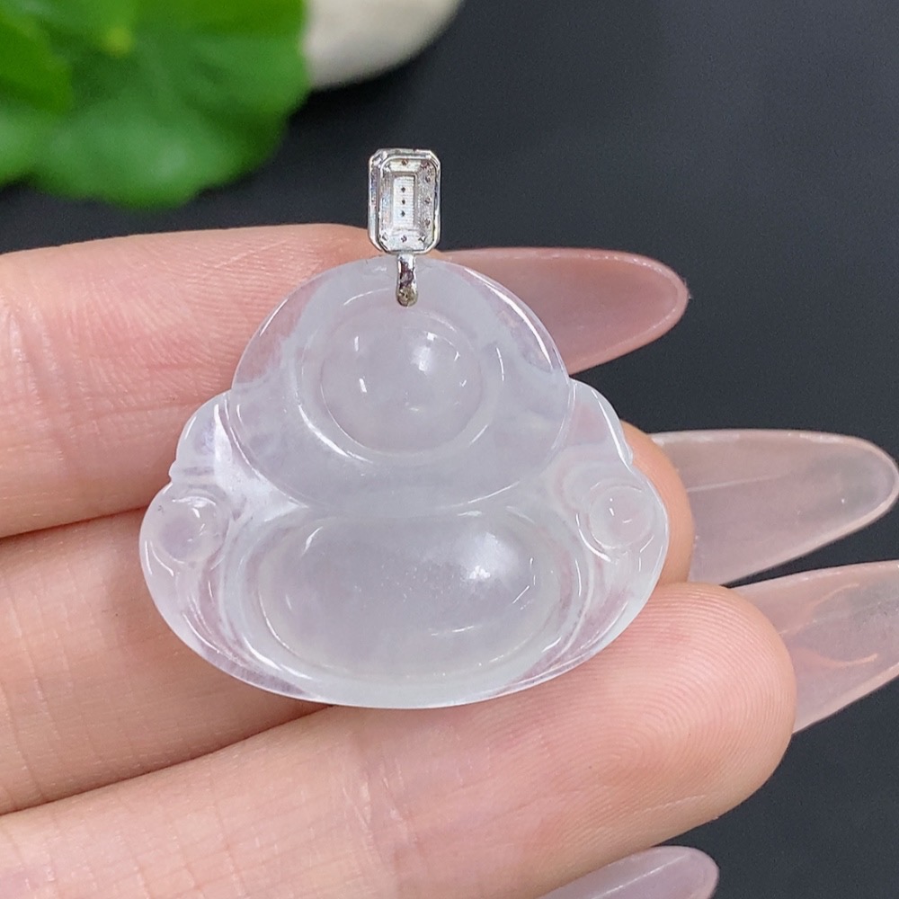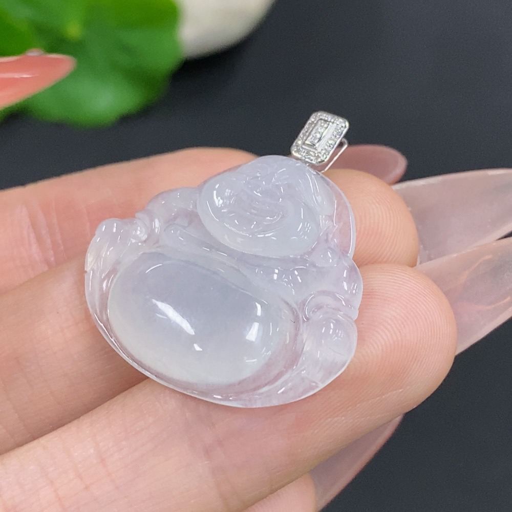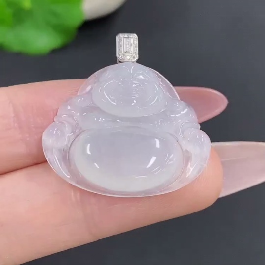 Jadeite Buddha Pendant with 18K Gold Clasp, Total Weight Approx. 5.2g, Diamond Accents