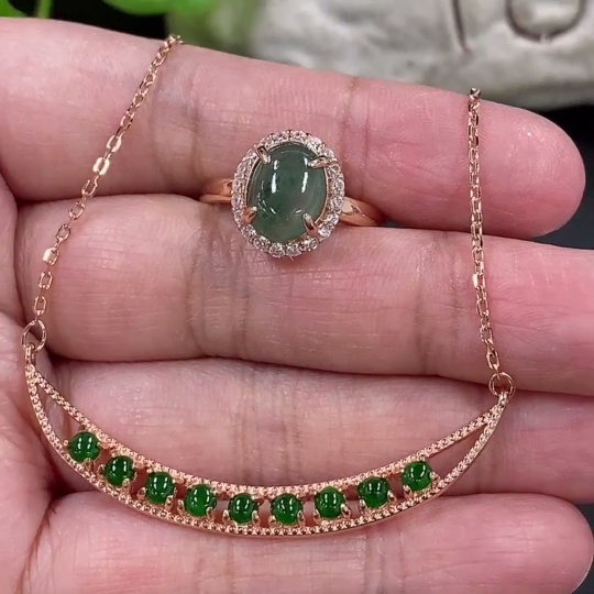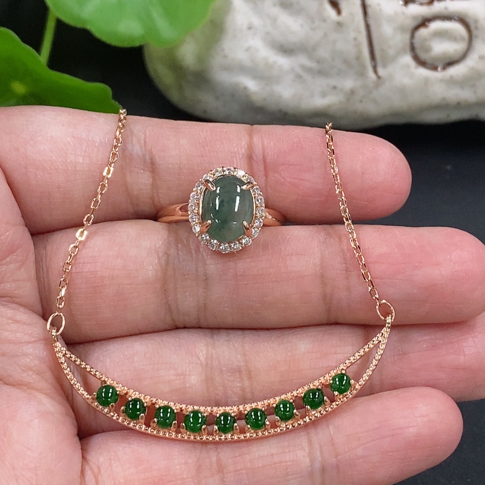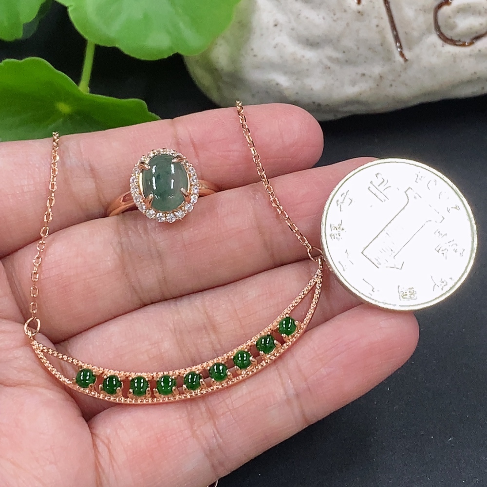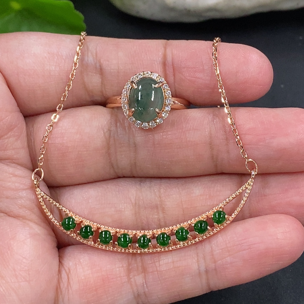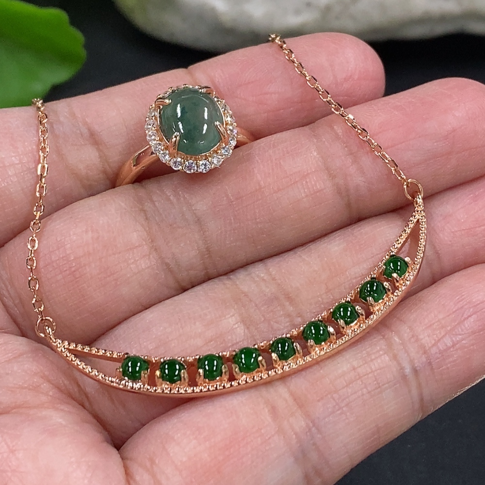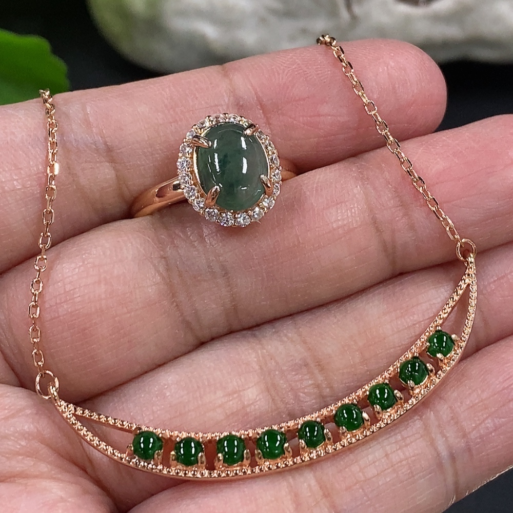 Jadeite Cabochon Pendant + Ring Non-Gold Setting Adjustable Size