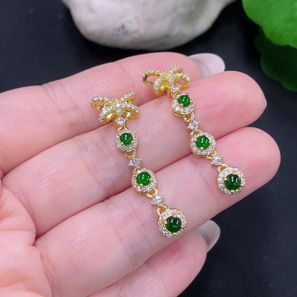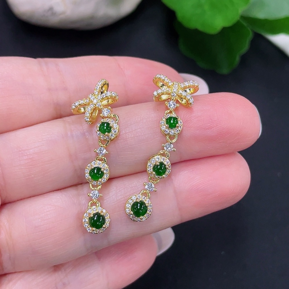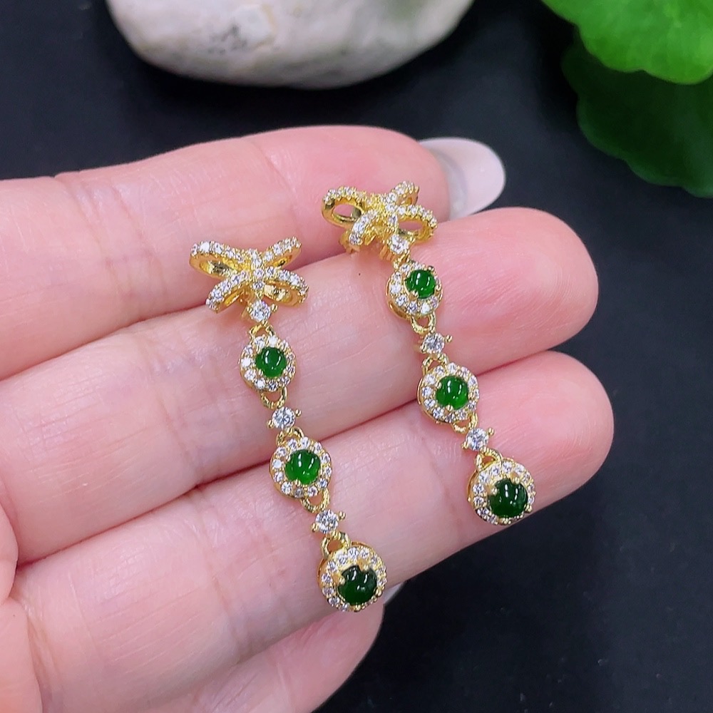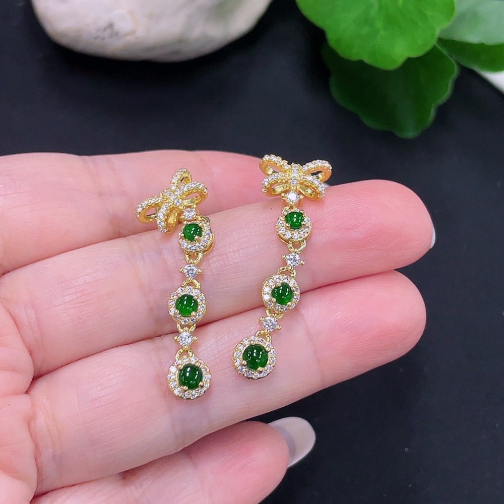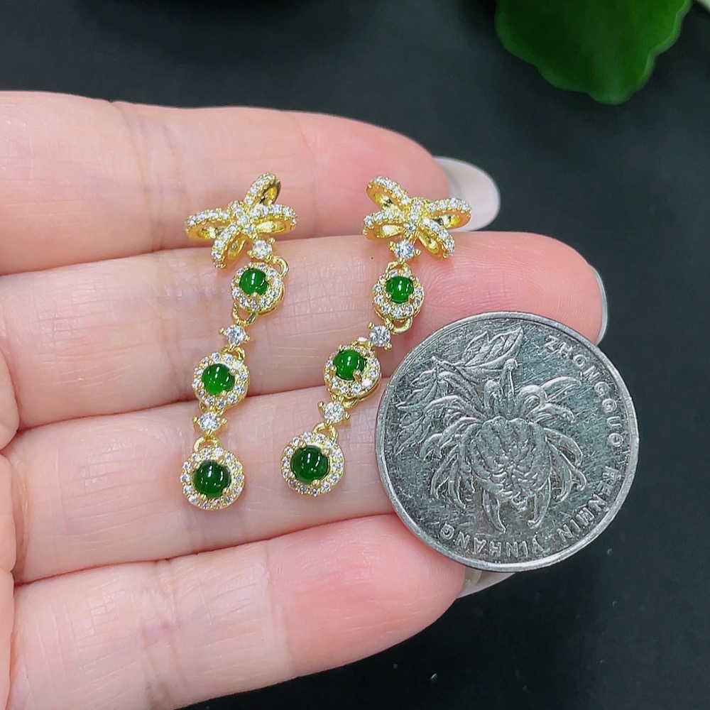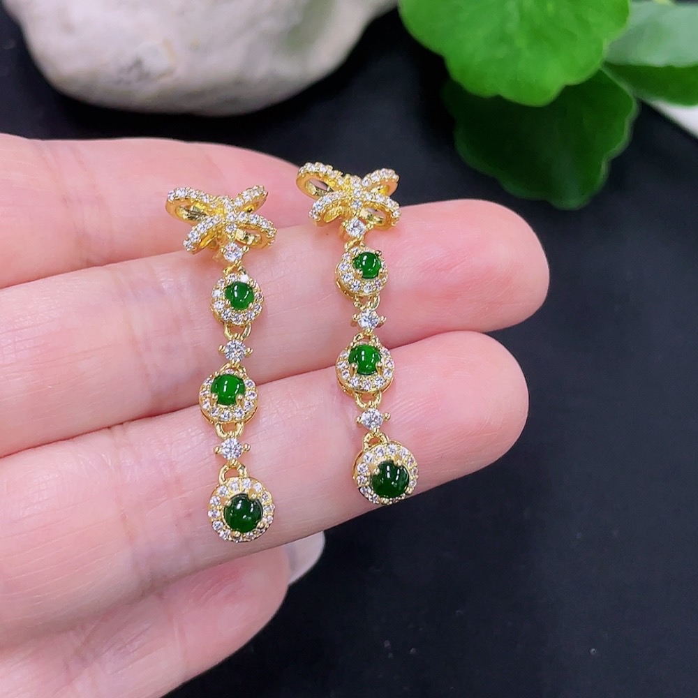 Jadeite Inlaid Earrings Non-Gold Total Weight Approx. 3.38g