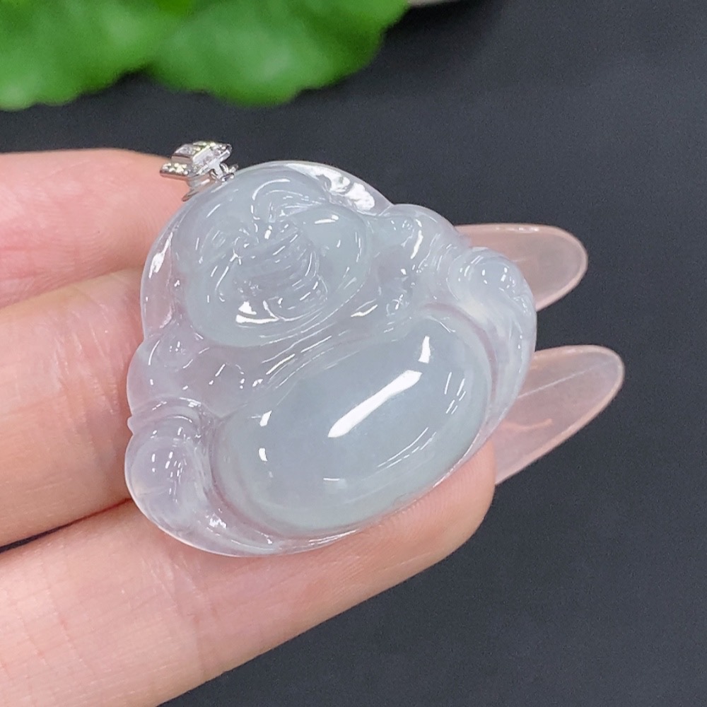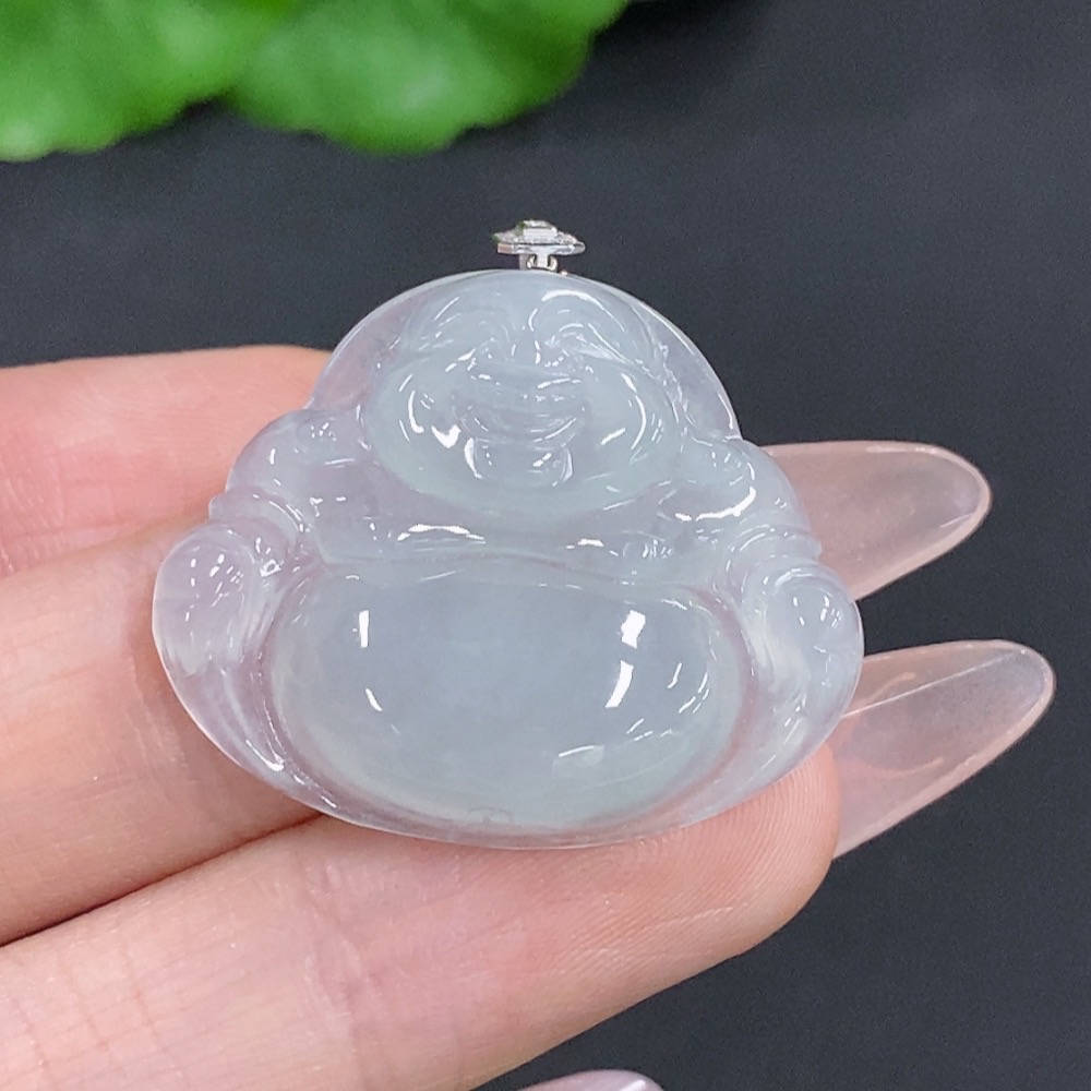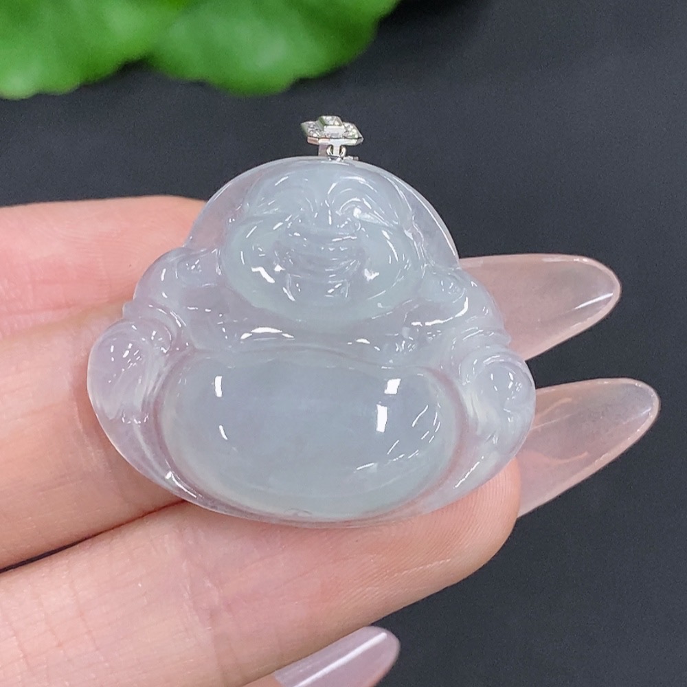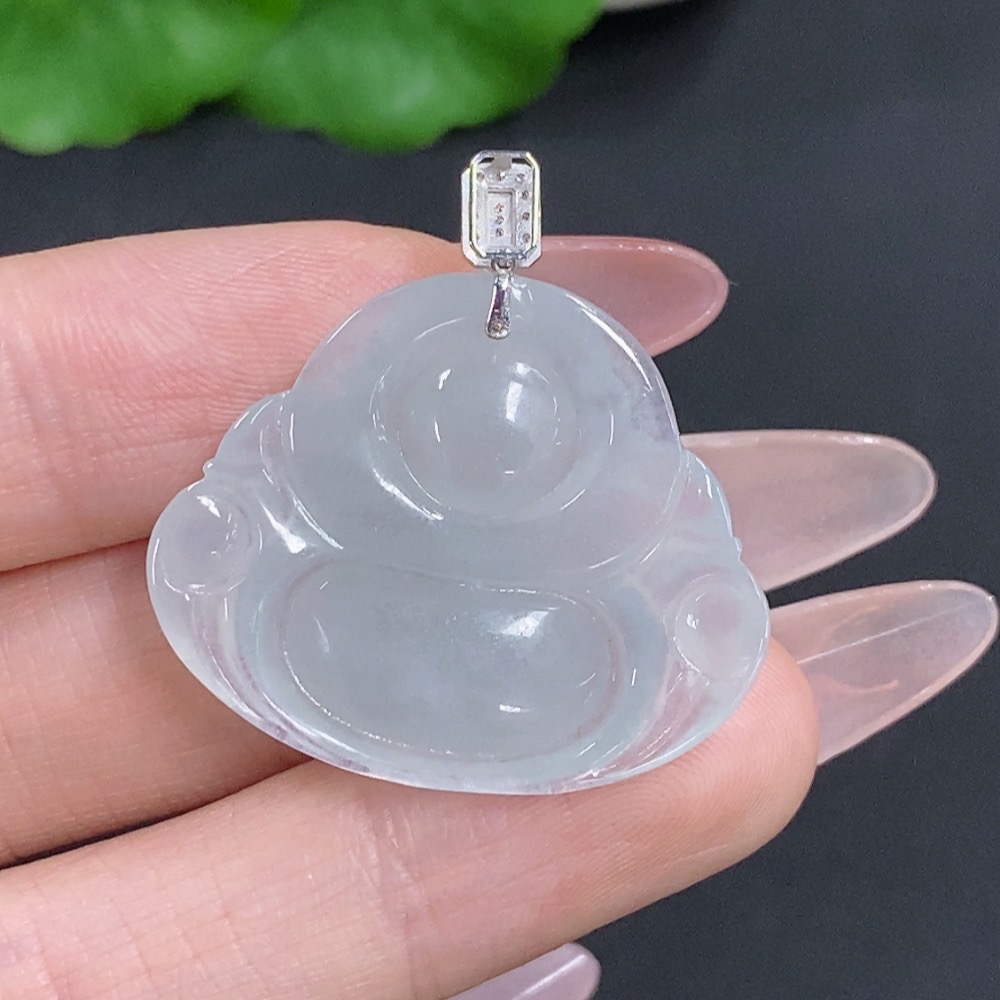 Jadeite Buddha Pendant with 18K Gold Clasp, Total Weight Approximately 6.7g, Set with Diamonds