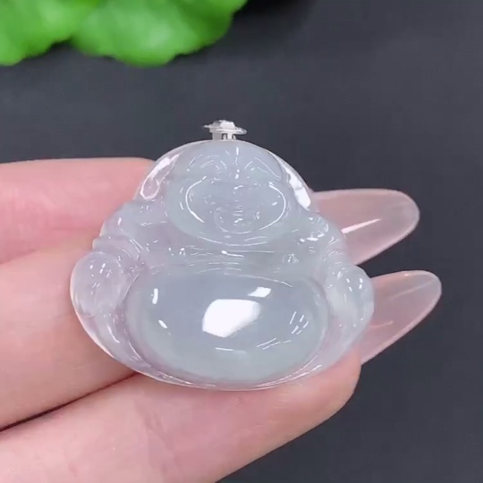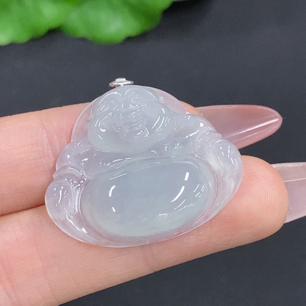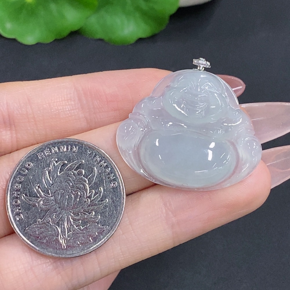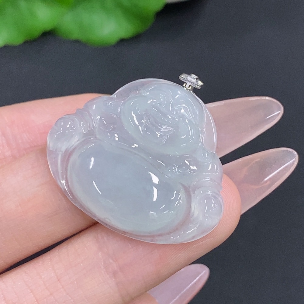 Jadeite Buddha Pendant with 18K Gold Clasp, Total Weight Approximately 6.7g, Set with Diamonds