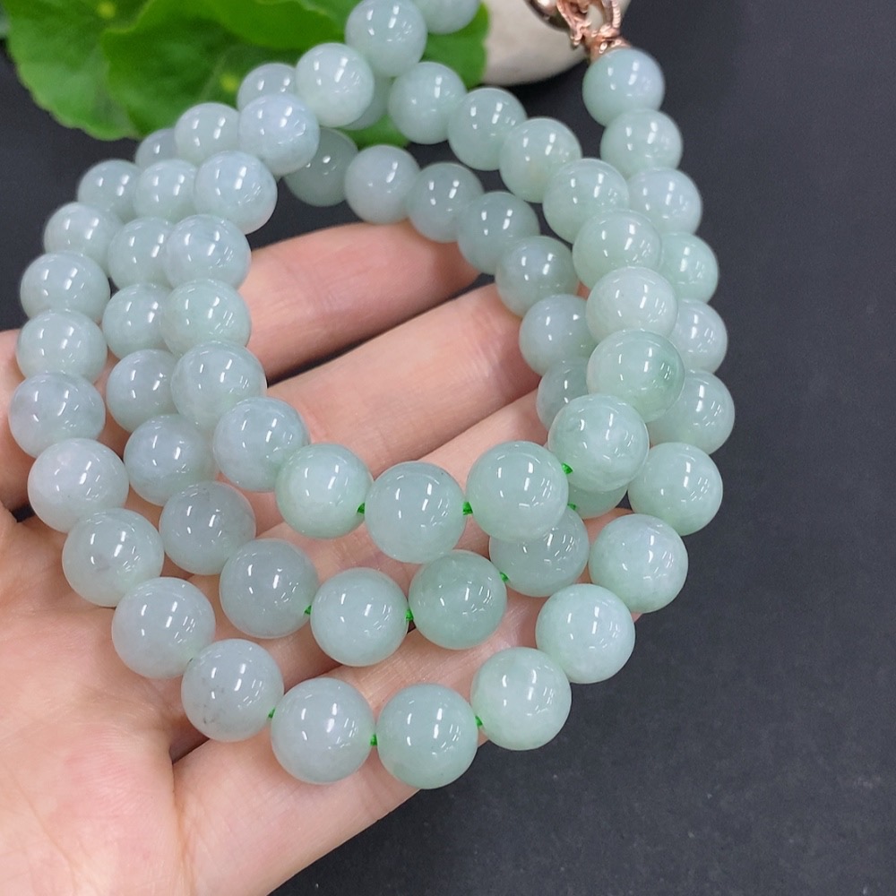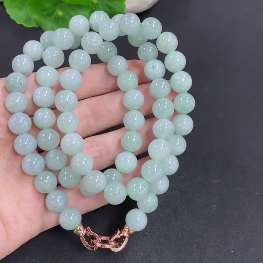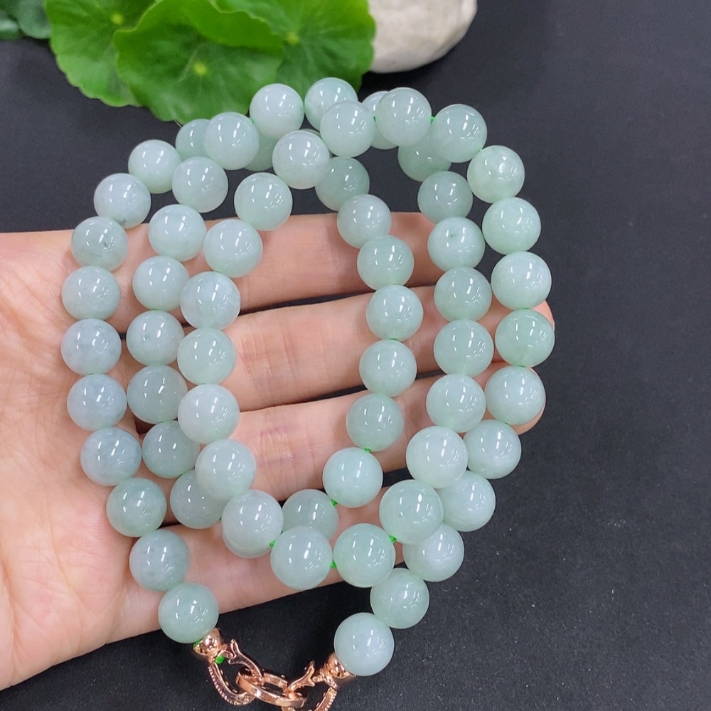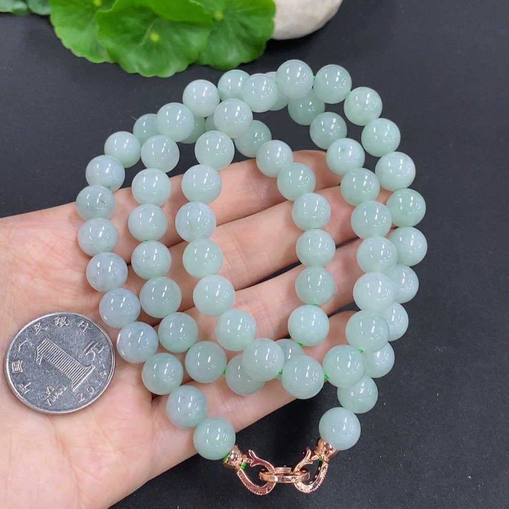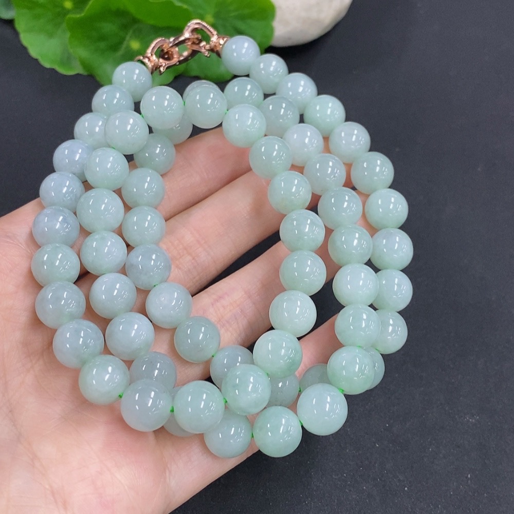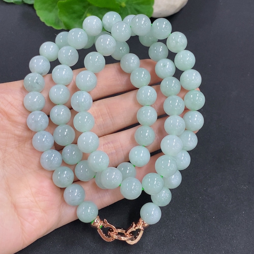 Jadeite Bead Necklace Approx. 9.5mm Non-Gold Total Weight Approx. 104.4g