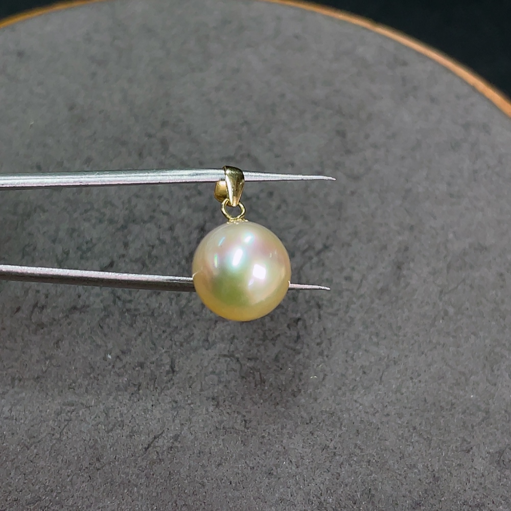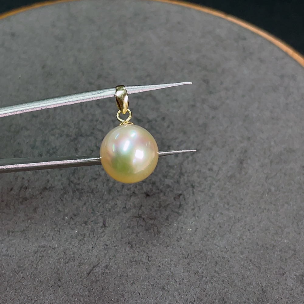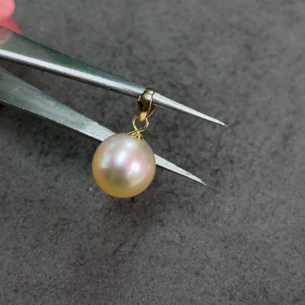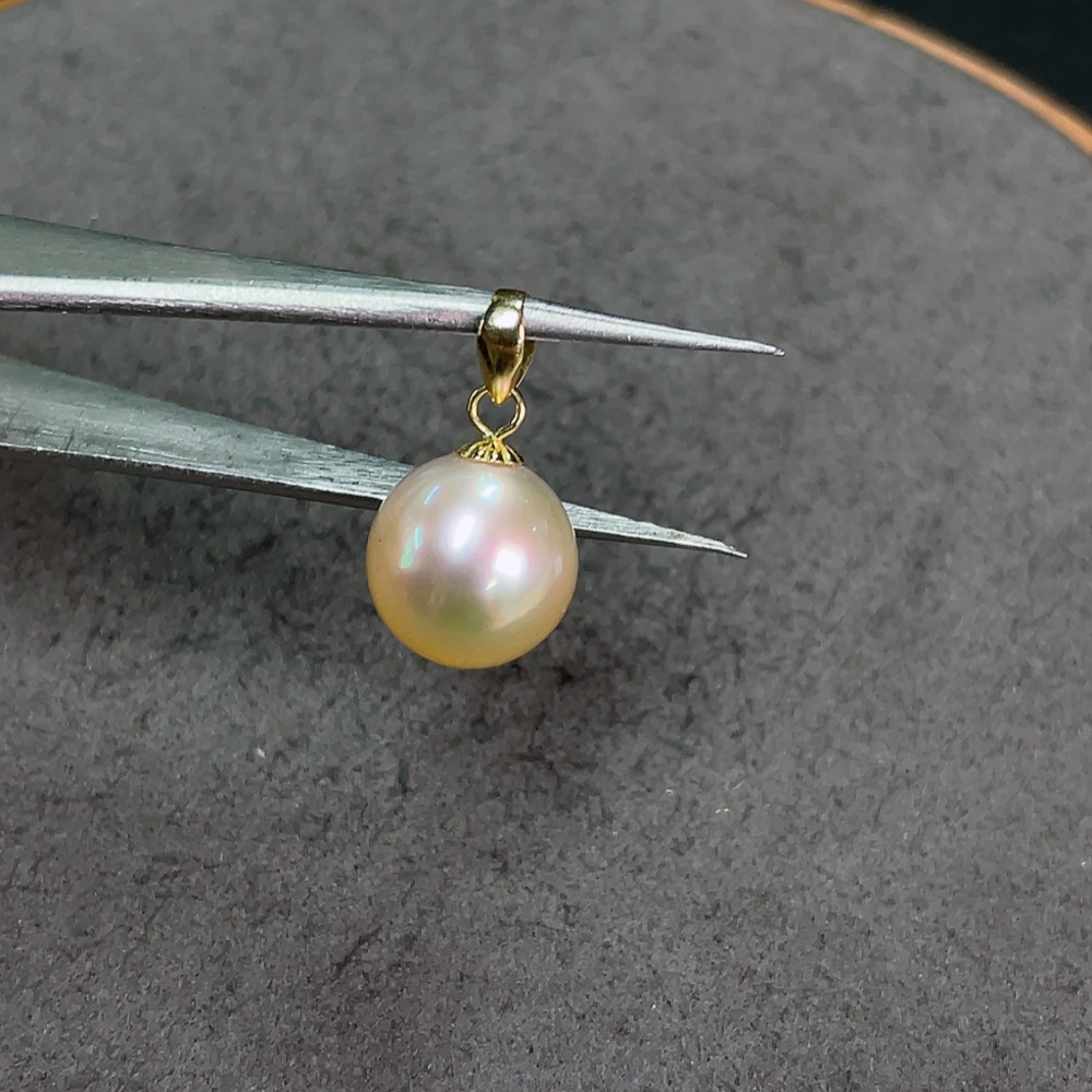 18k seawater pearl pendant, color origin undetermined, total weight approximately 1.72g, size around 10mm