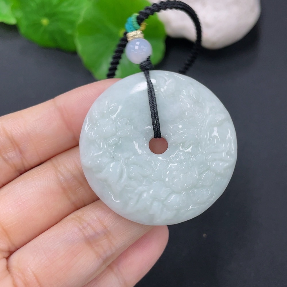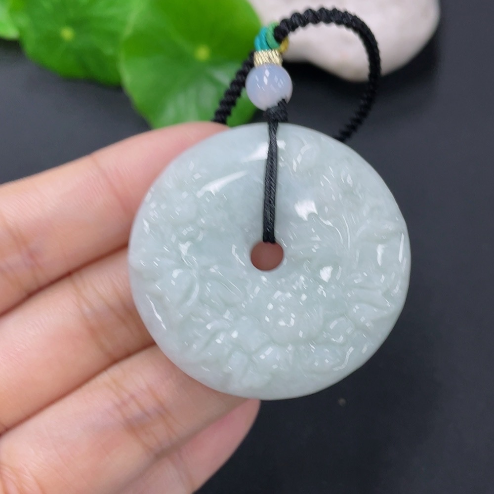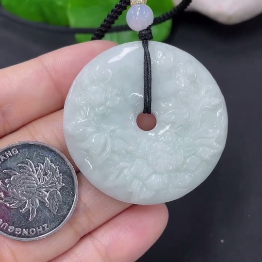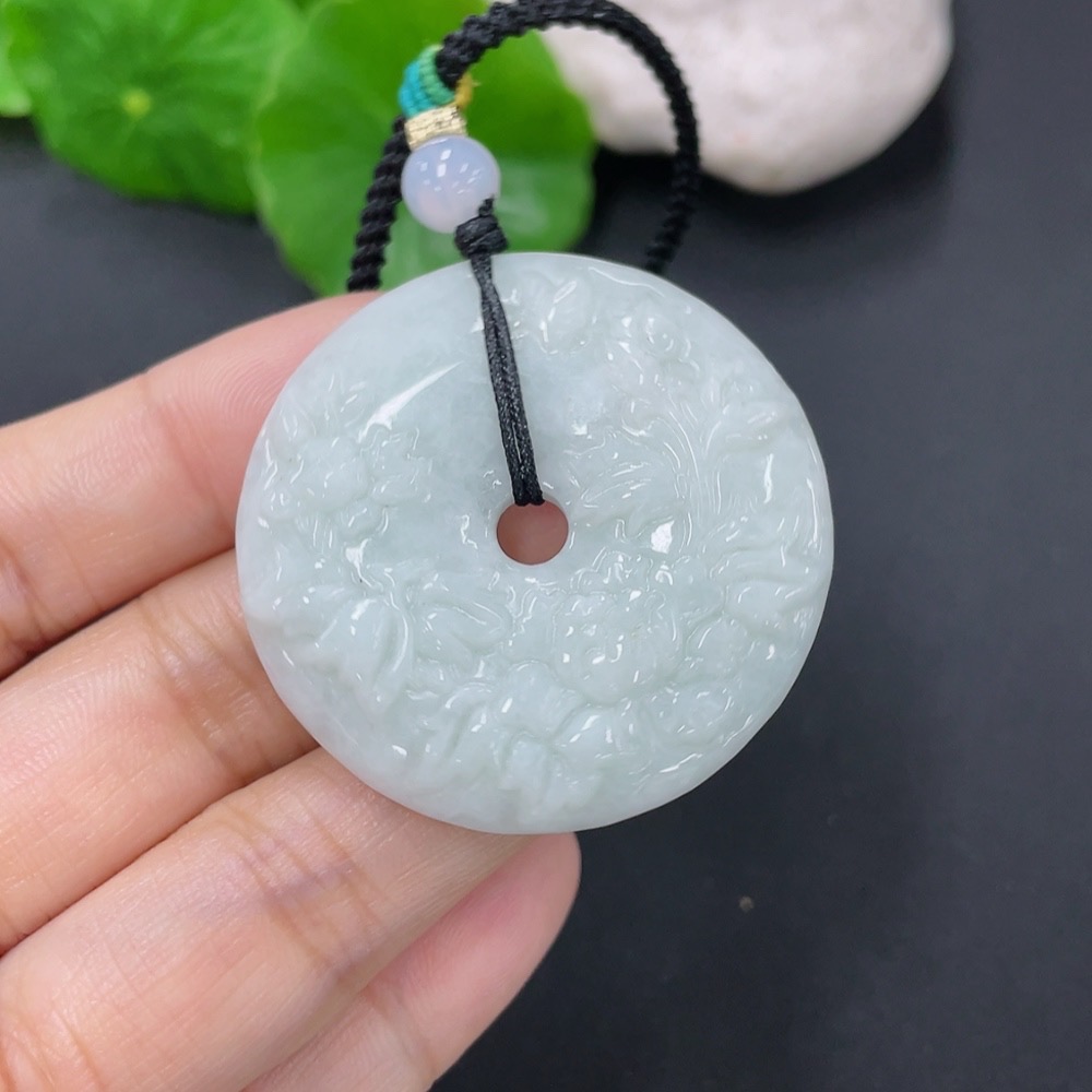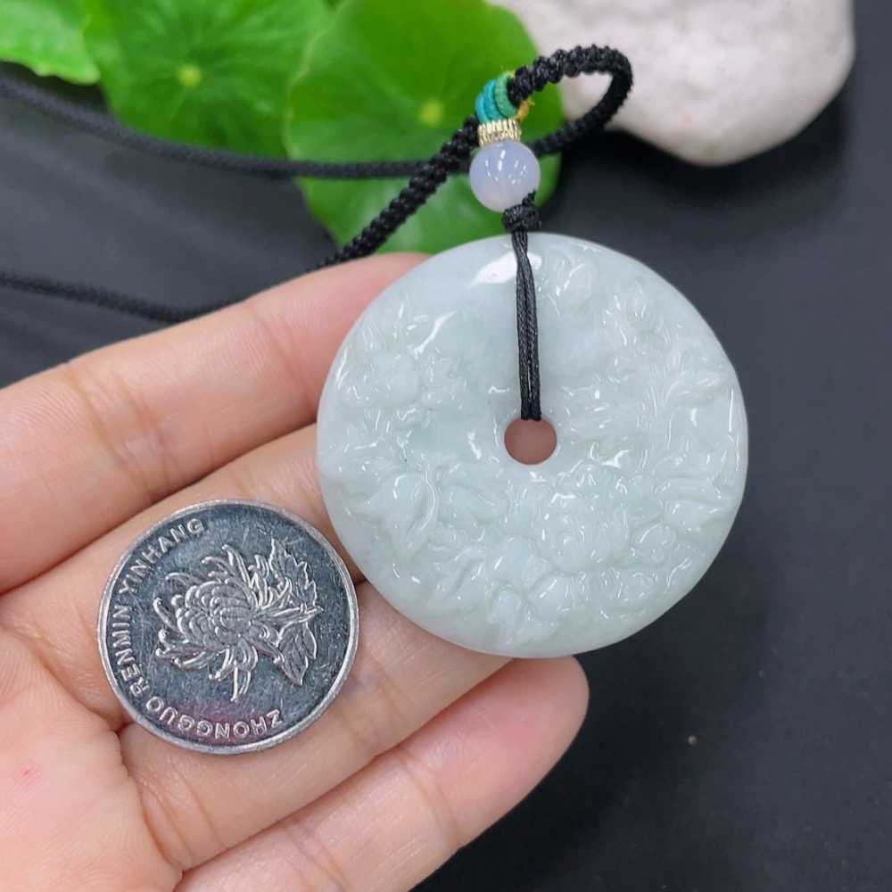 Jadeite Floral Pendant Ornament Total Weight Approx. 18.3g (Including Cord Weight) (Matching Beads Non-Grade A)