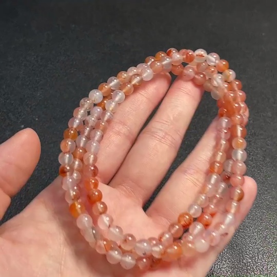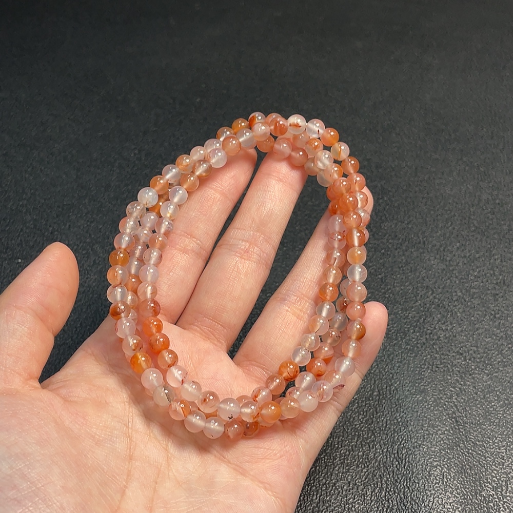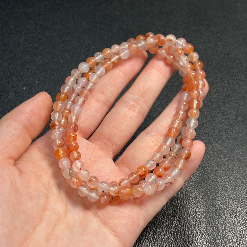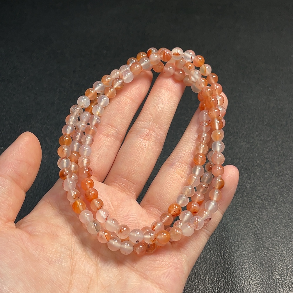 Southern Red Agate Bead Necklace with Visible Organic Matter, Total Weight Approximately 32g, Bead Size About 5.7mm
