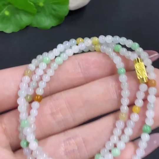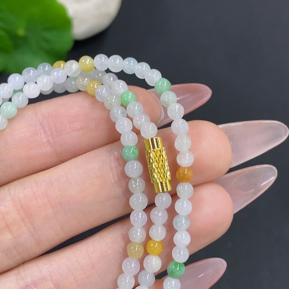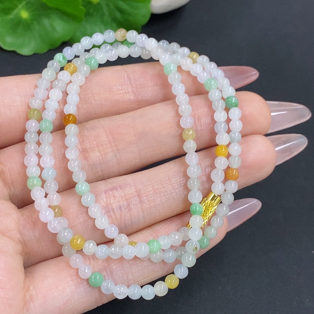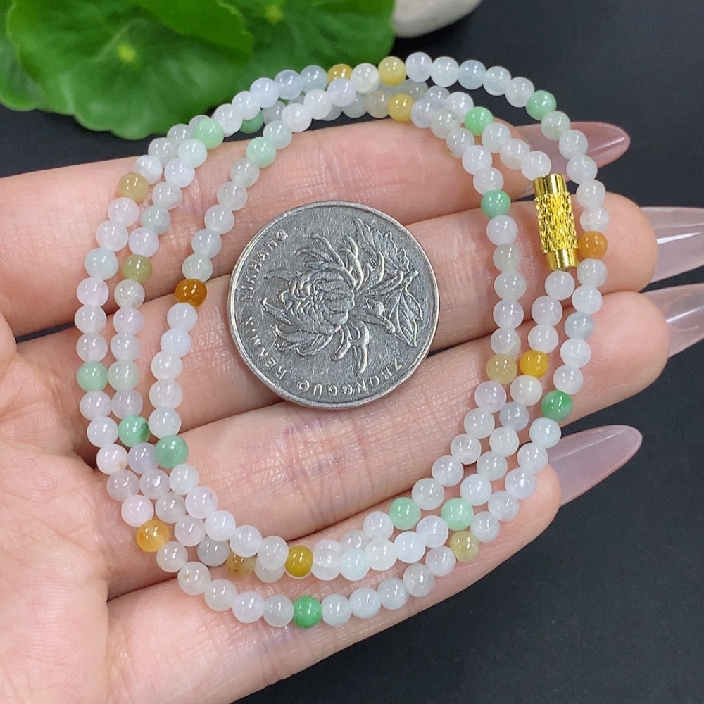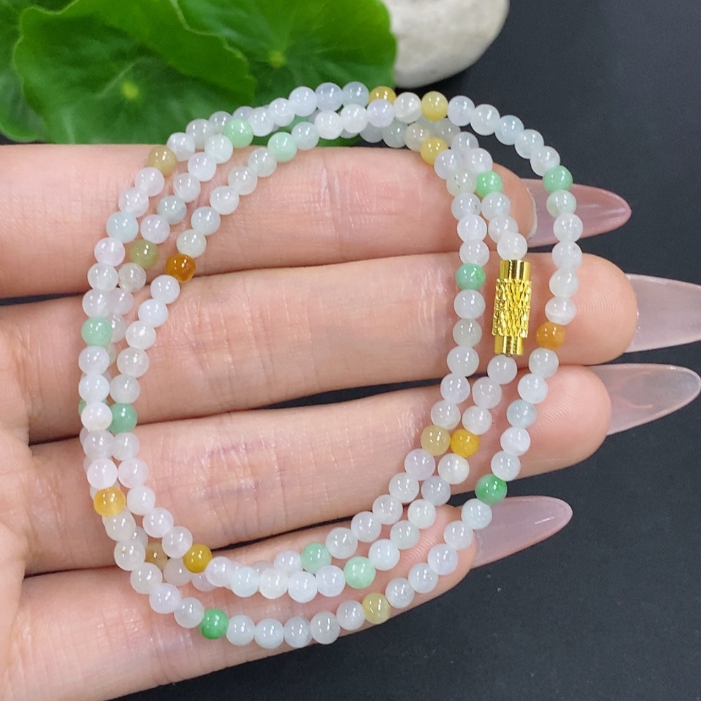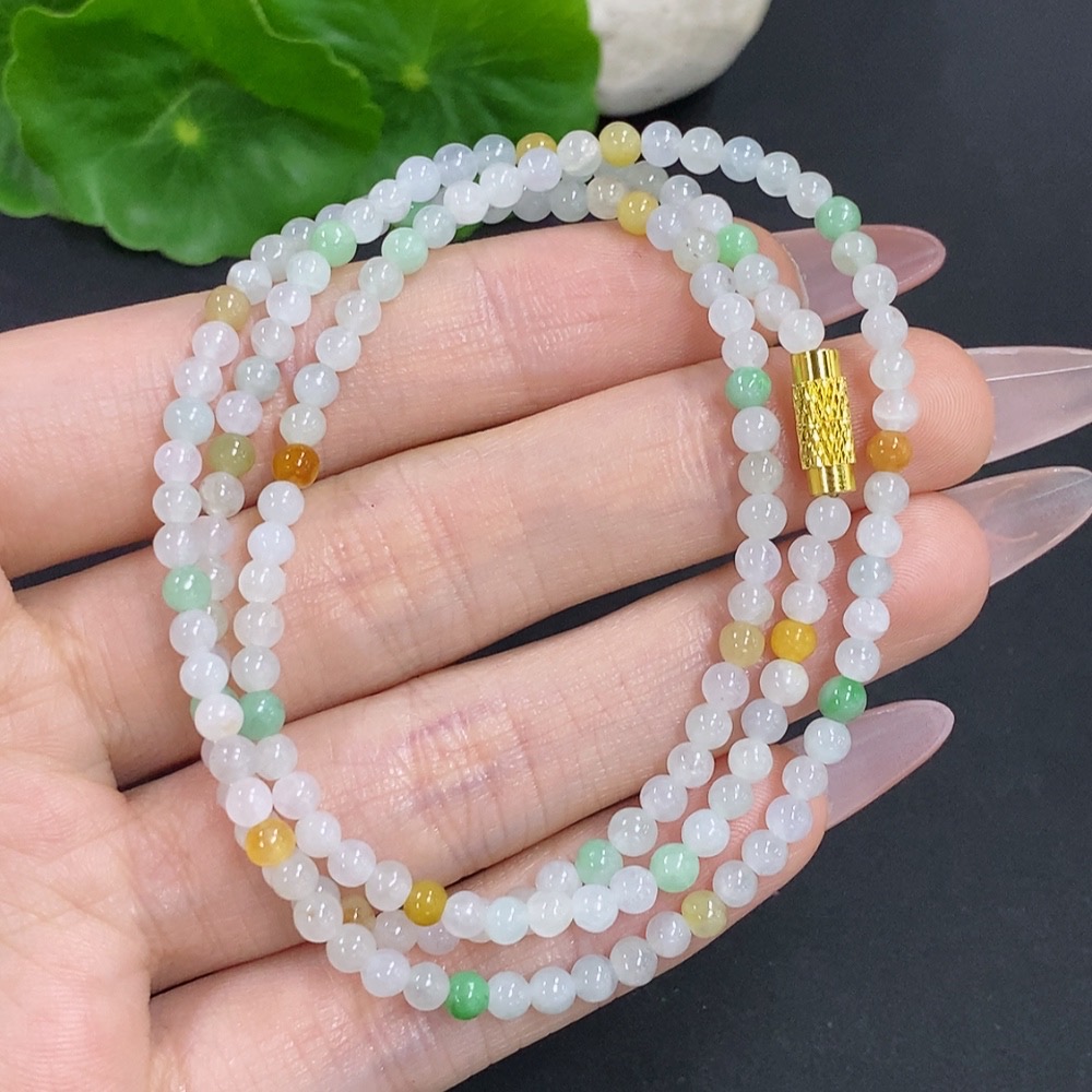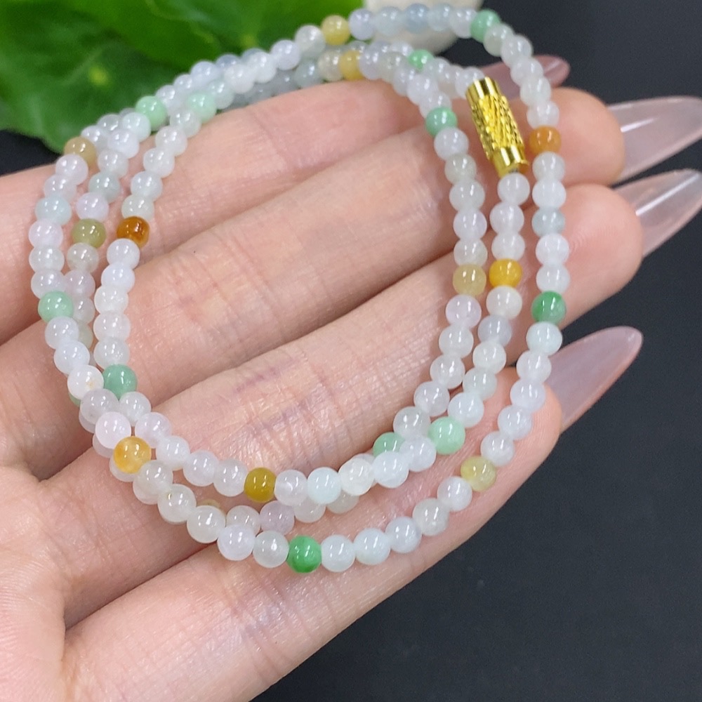 Jadeite Bead Necklace Non-Gold Total Weight Approx.12.3g Size About 3.4mm