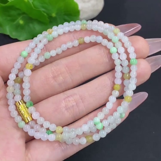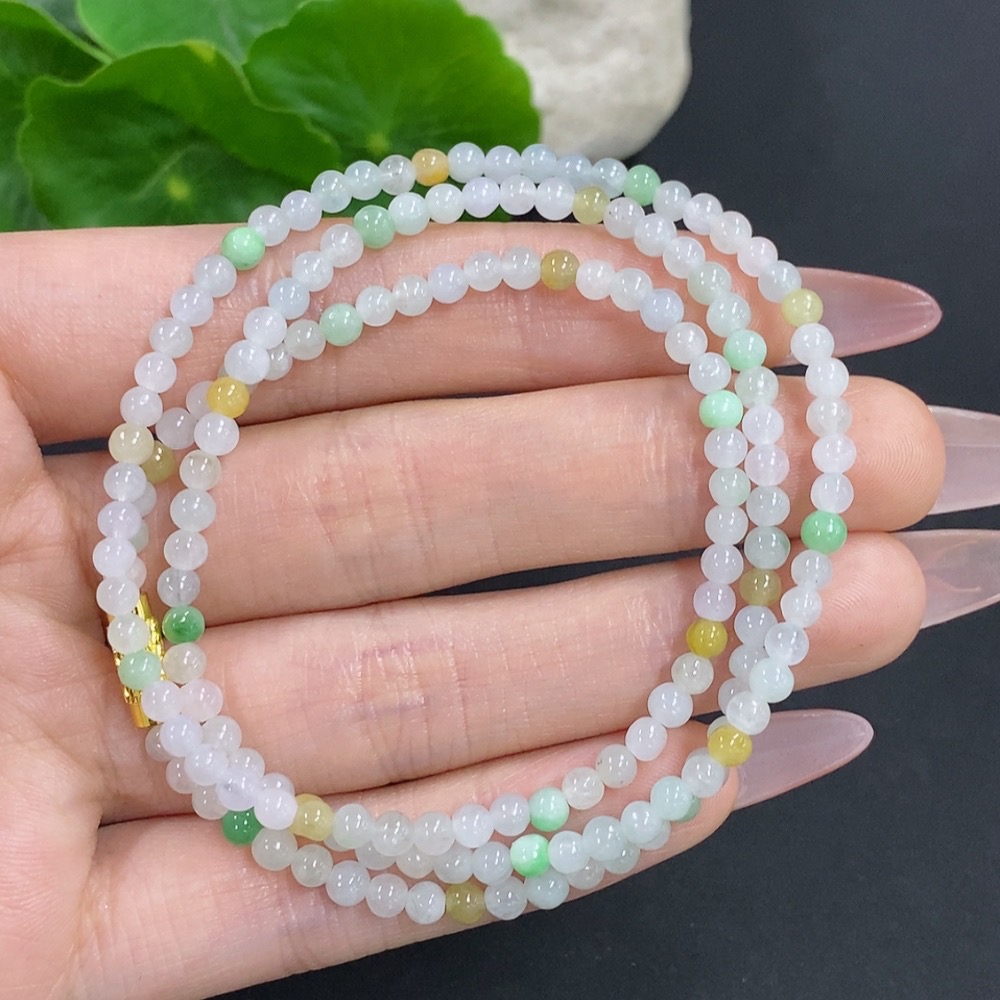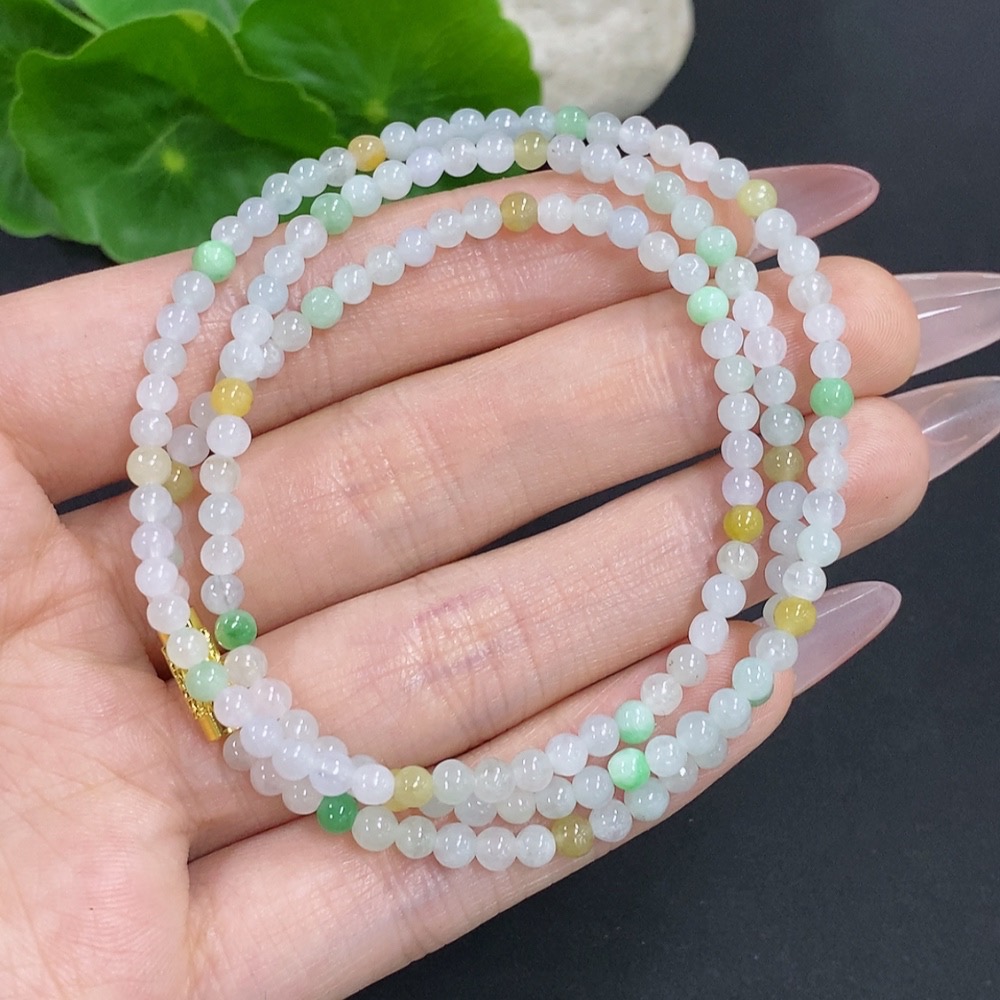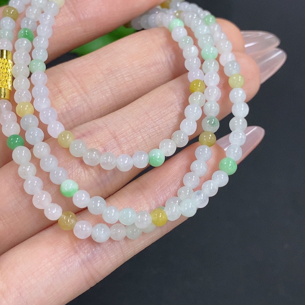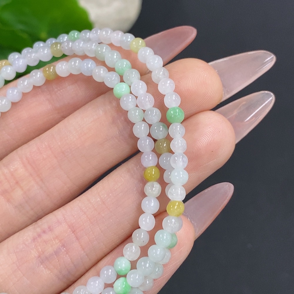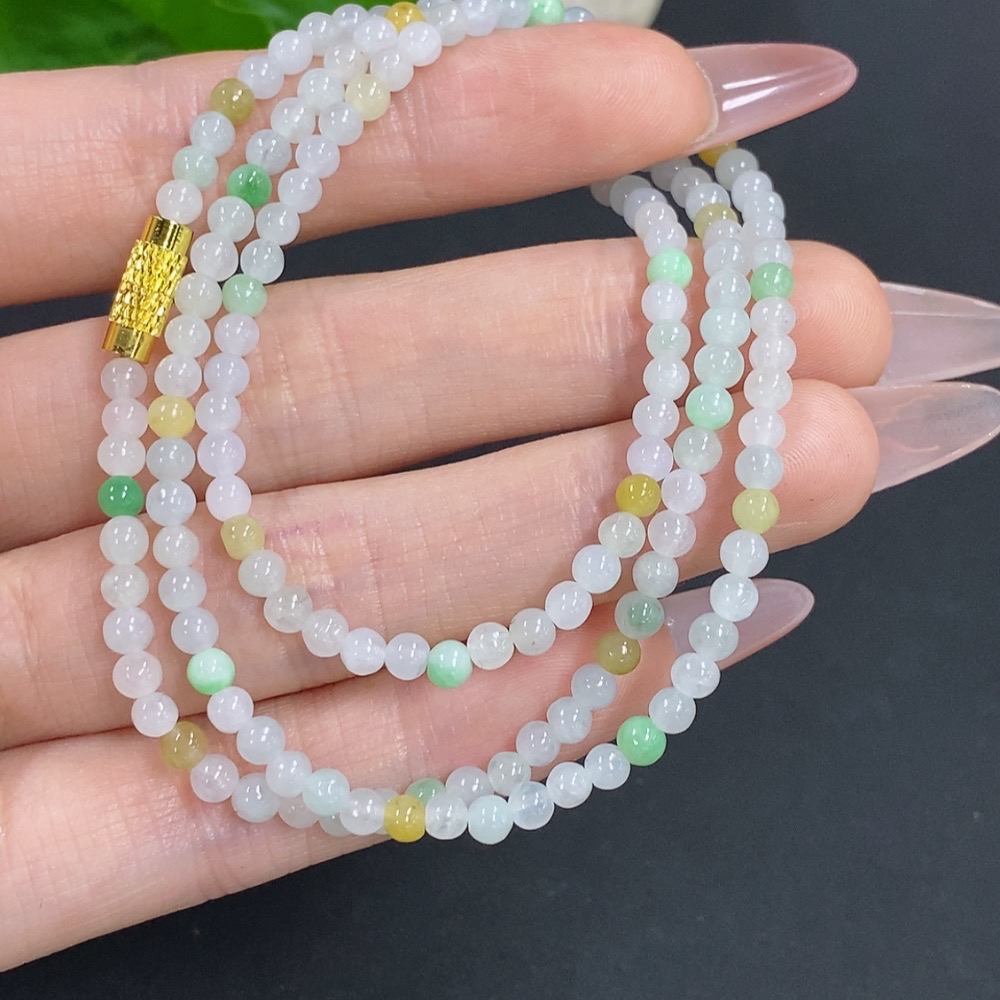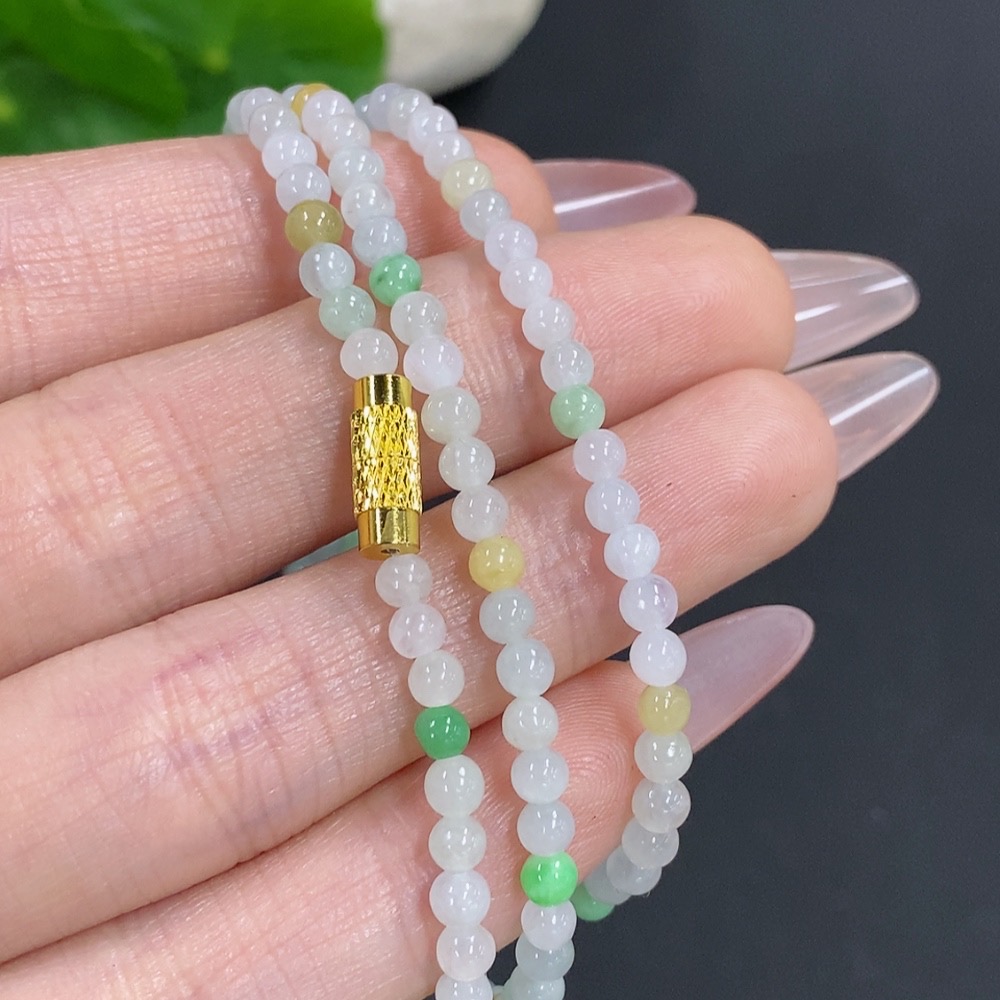 Jadeite Bead Necklace Non-Gold Total Weight Approx. 12.3g Size About 3.4mm