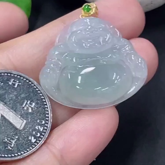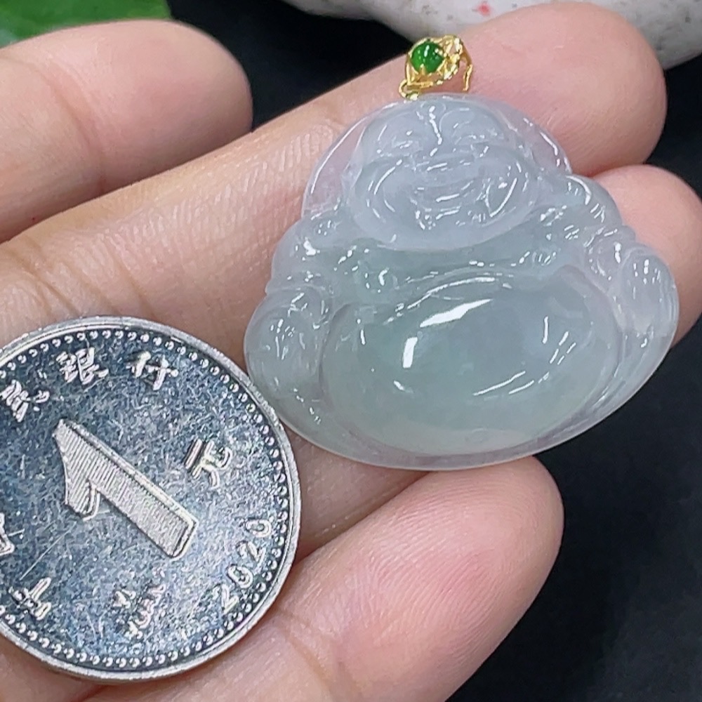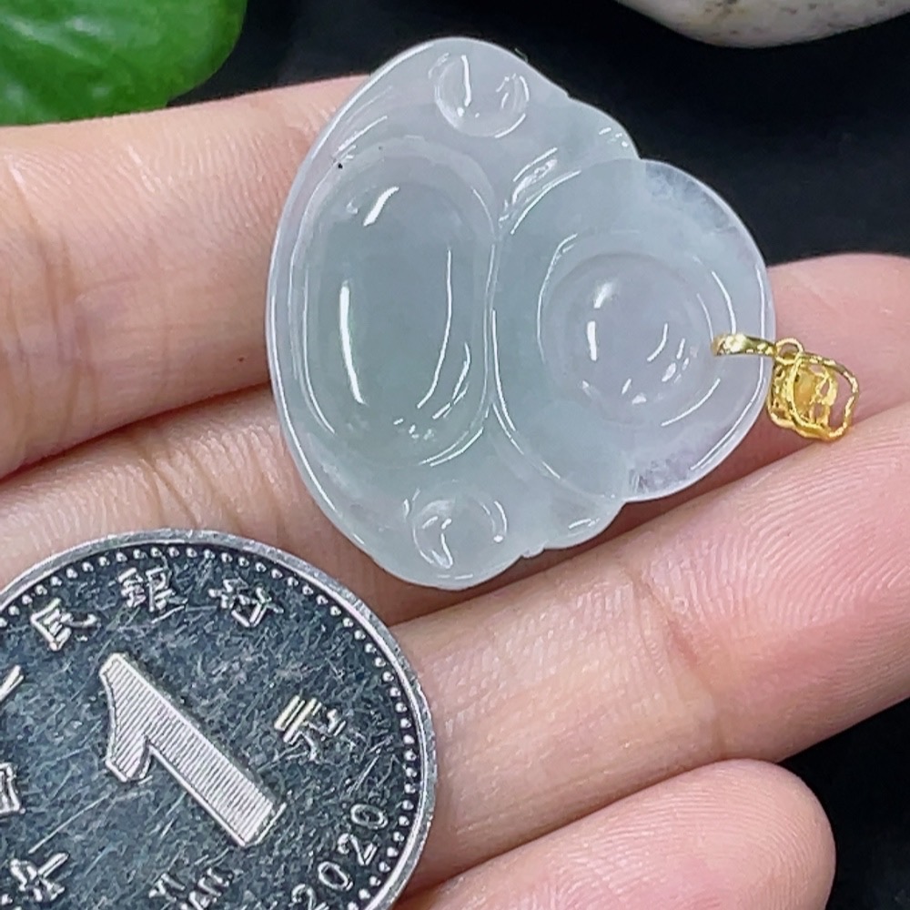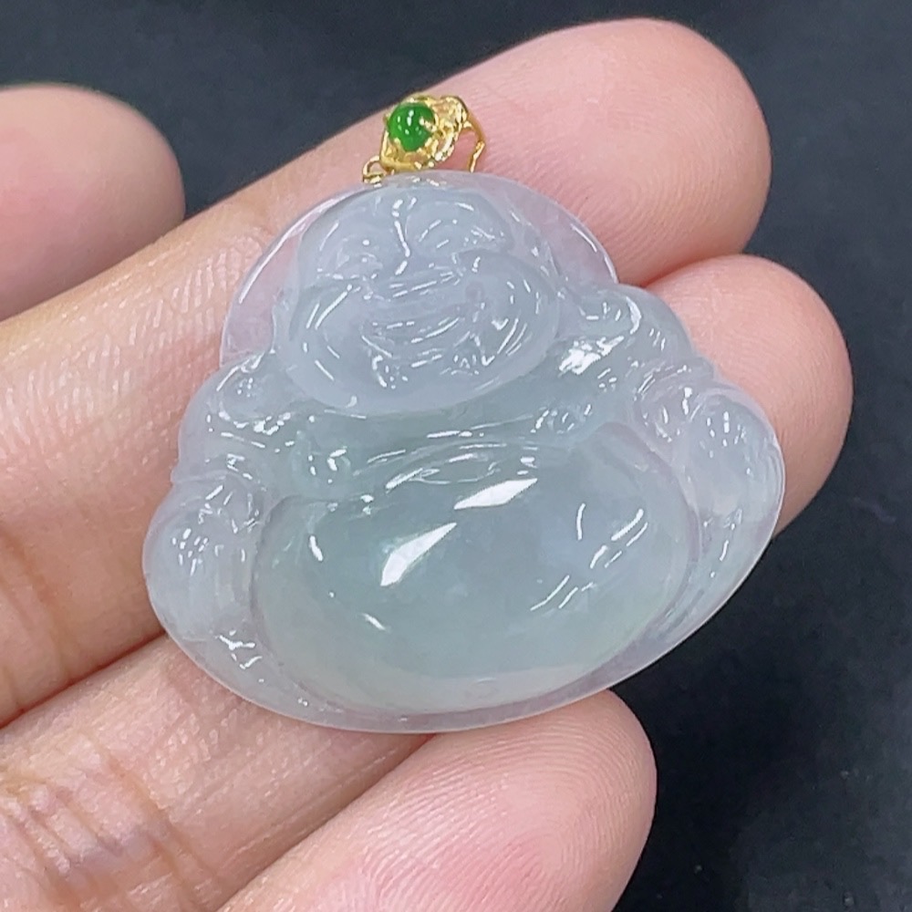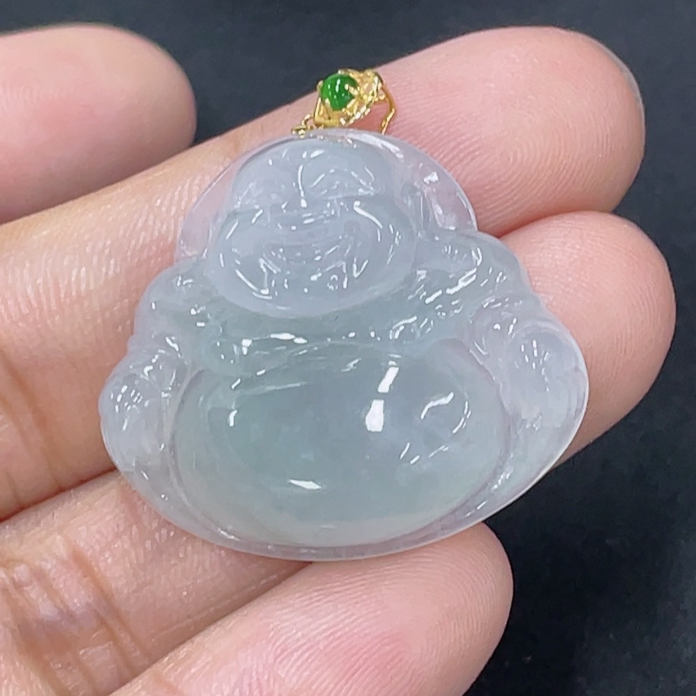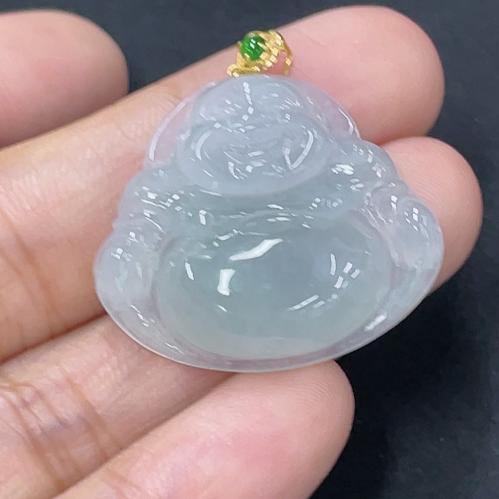 Jadeite Buddha Pendant with 18K Gold Clasp, Total Weight Approx. 5.7g