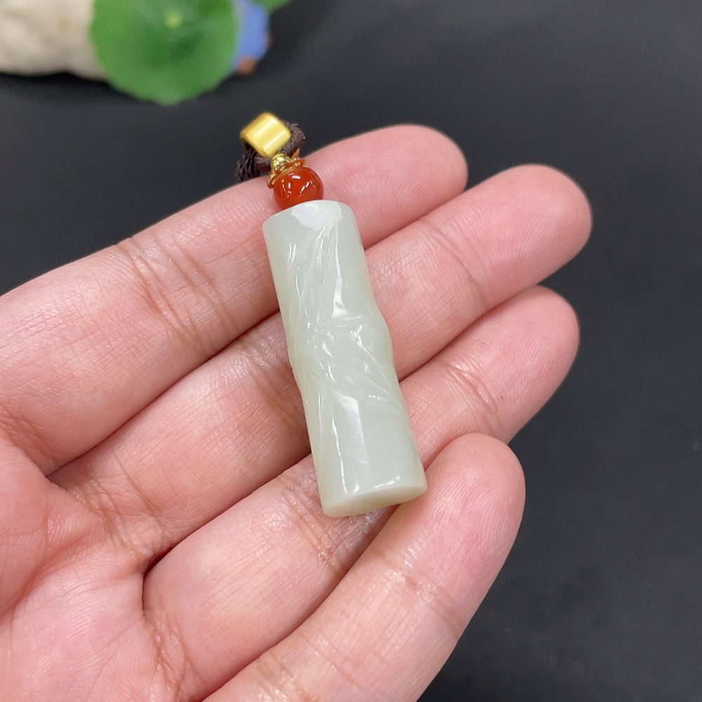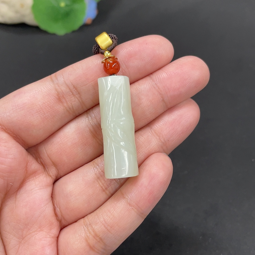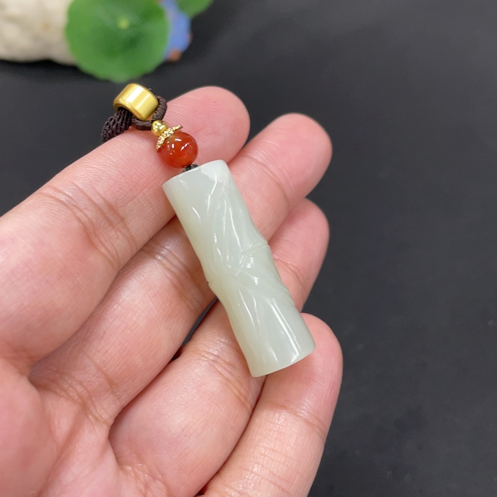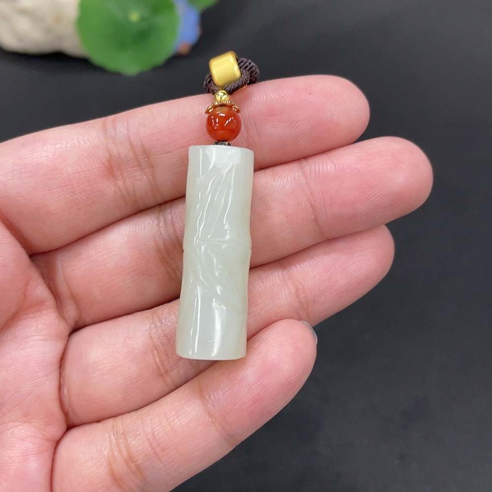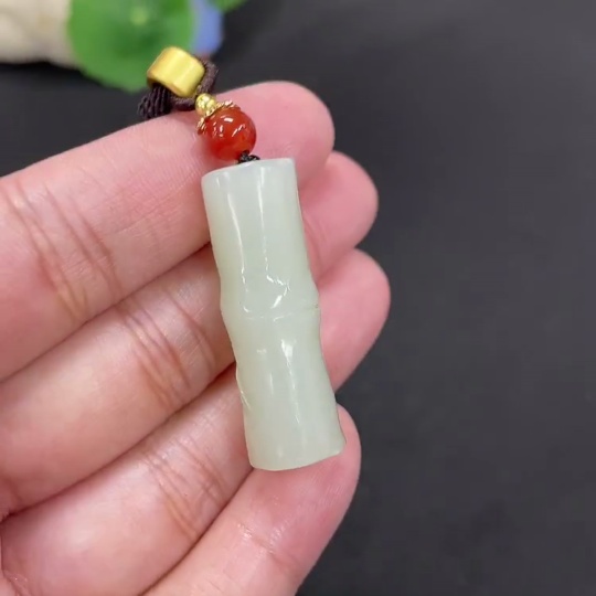 Hetian Jade Pendant Bamboo Joint Total Weight Approx. [with rope] 14g
