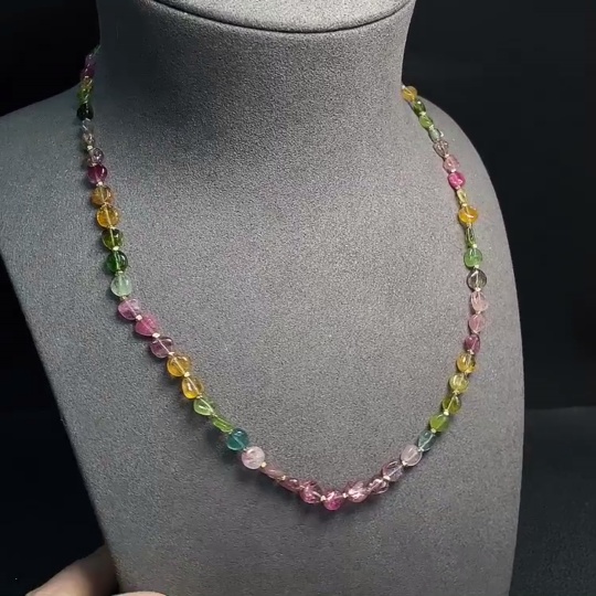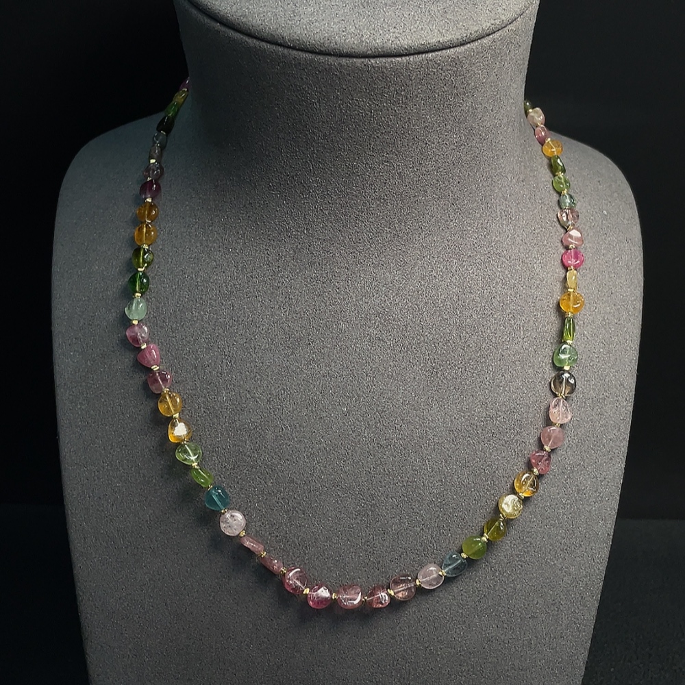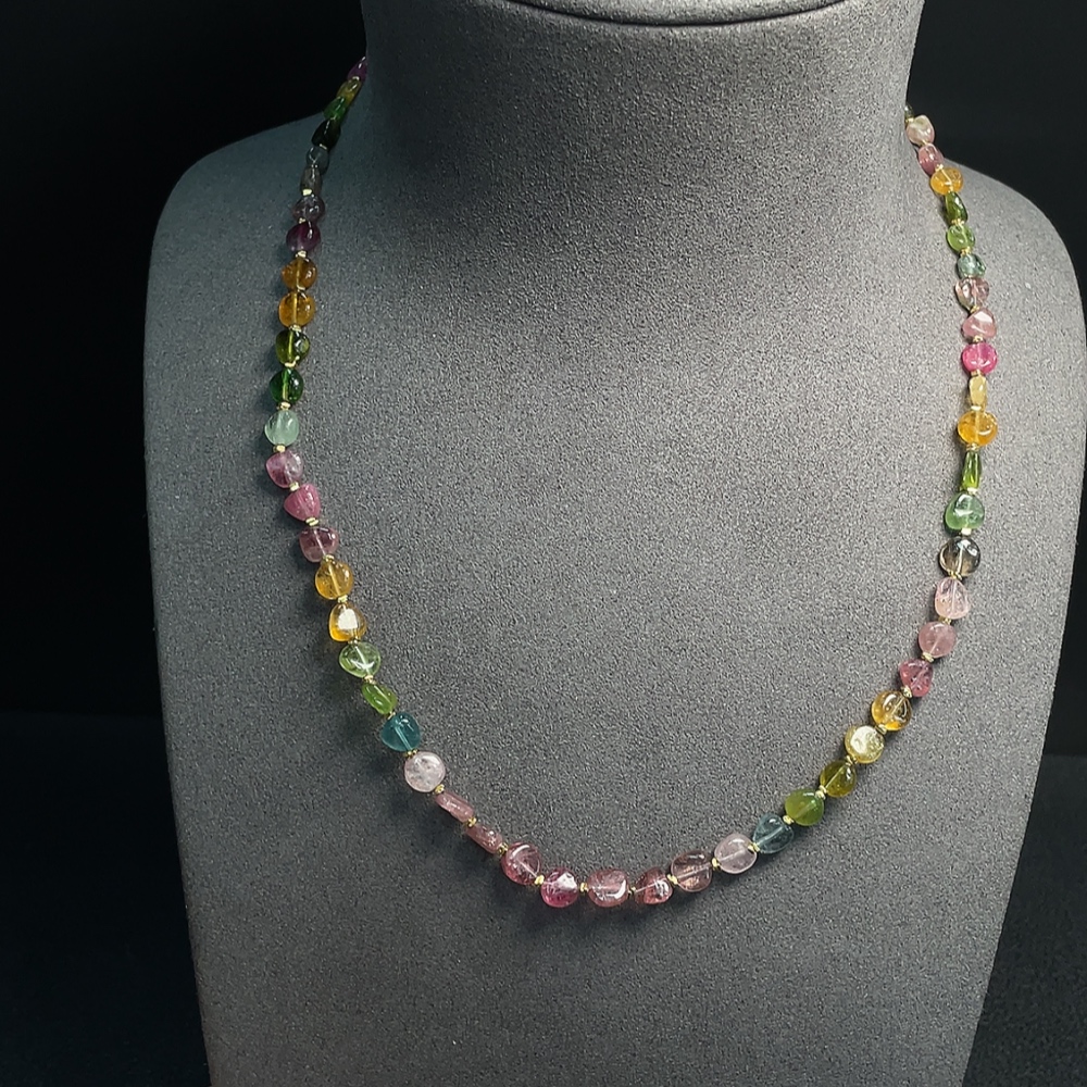 Tourmaline Bead Necklace Non-Gold Visible Organic Matter Total Weight Approx. 14.45g