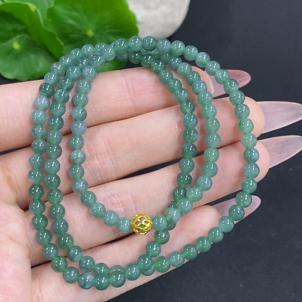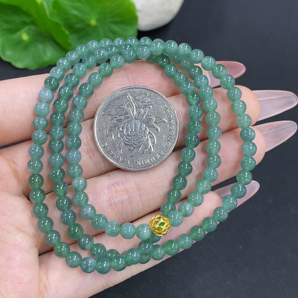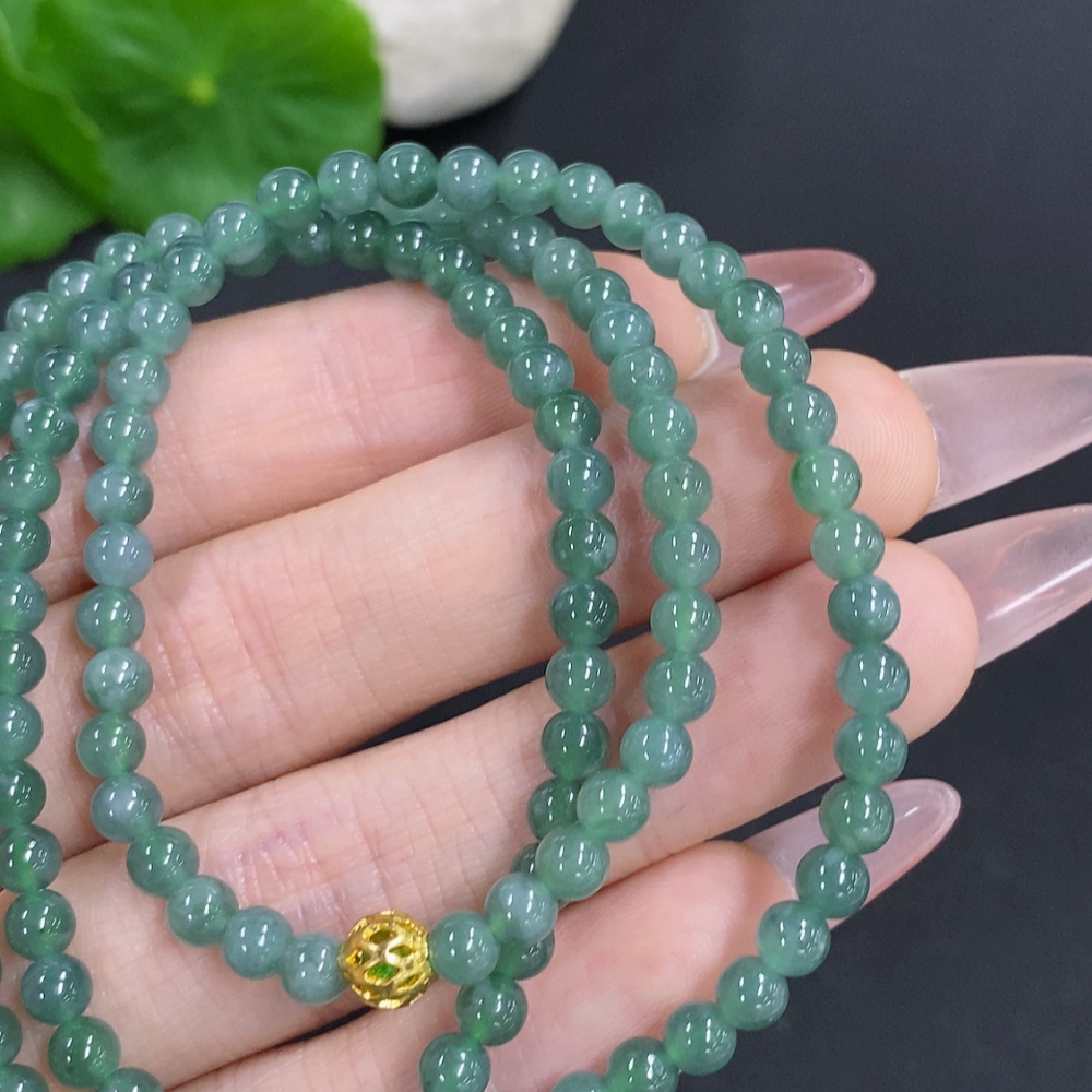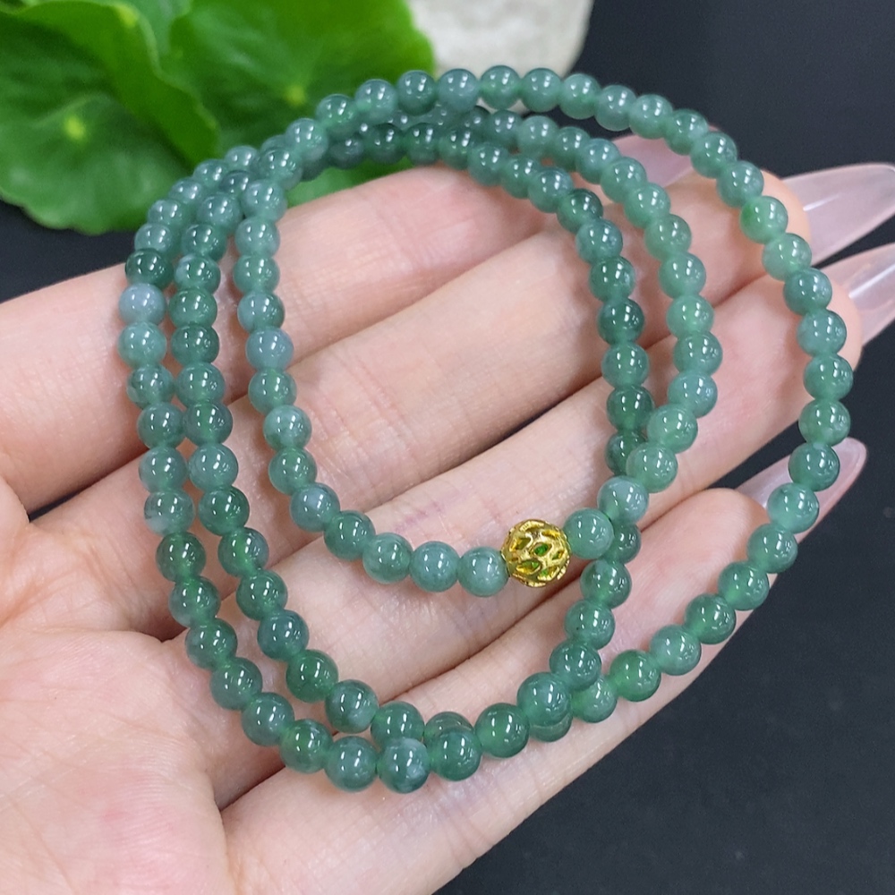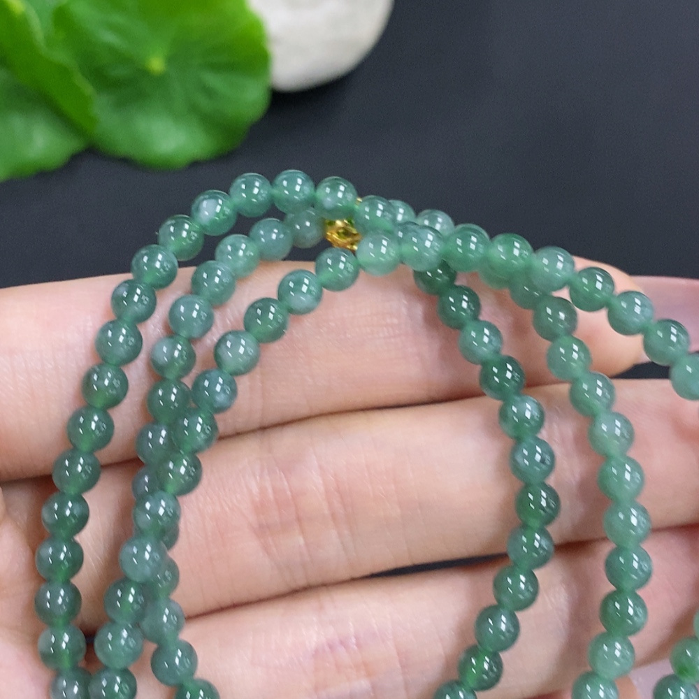 Jadeite Bead Necklace Approximately 4.3mm Total Weight About 18g Non-Gold Beads