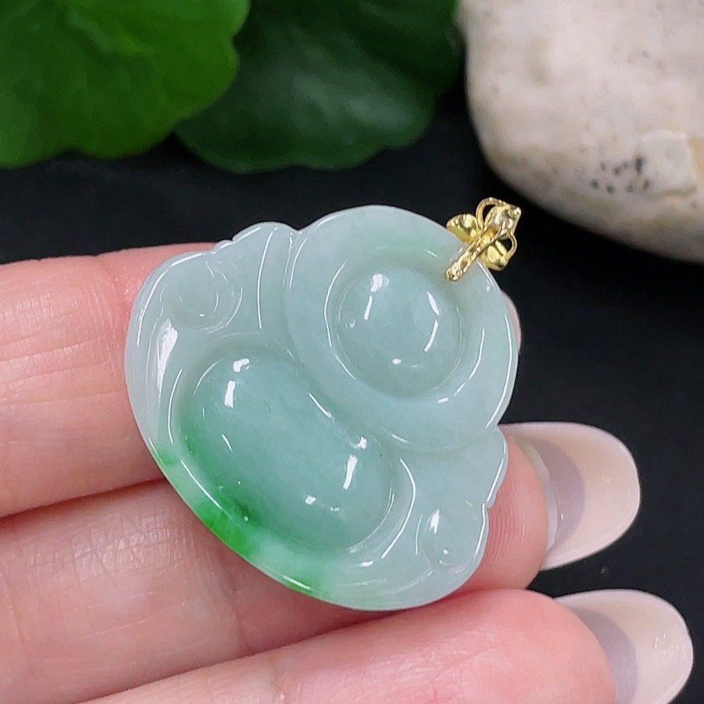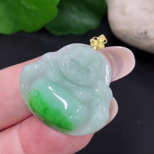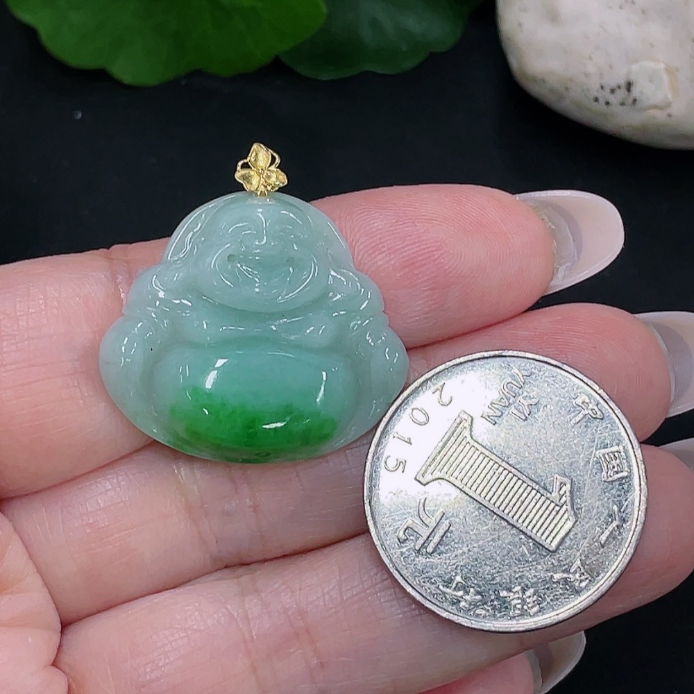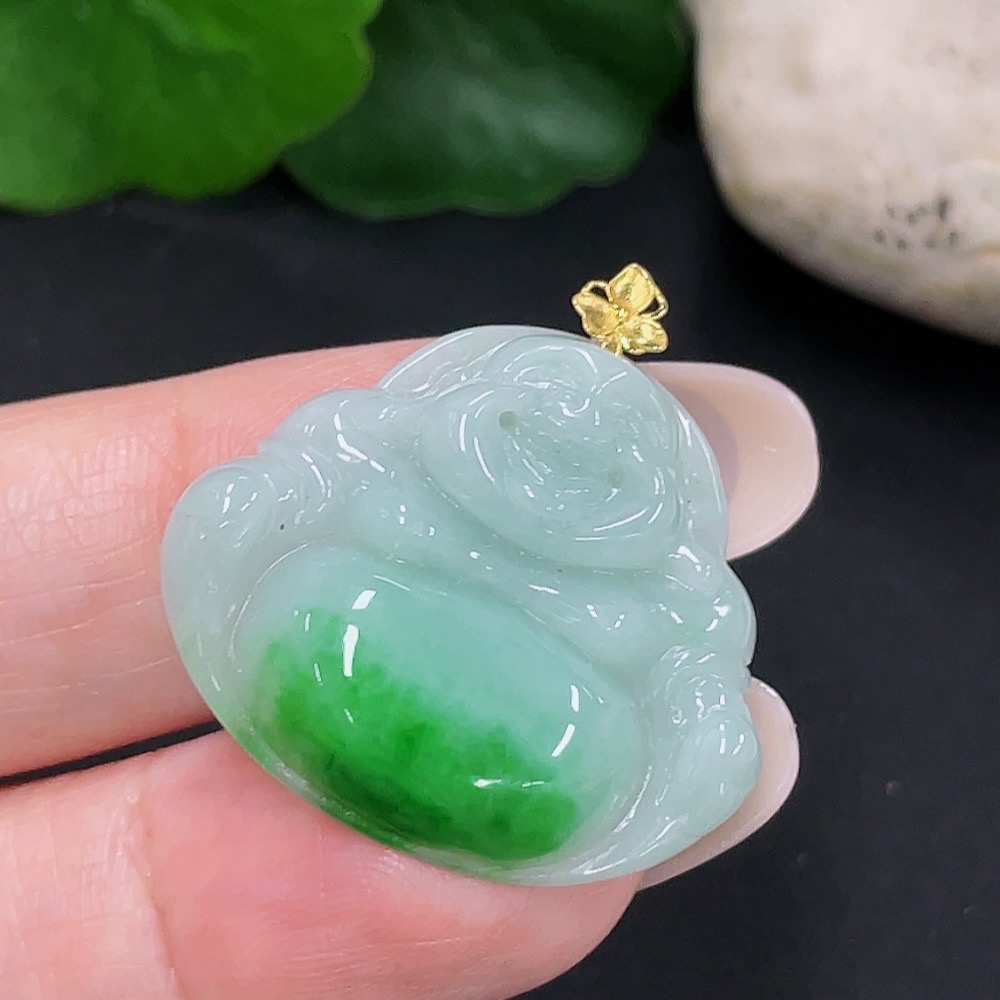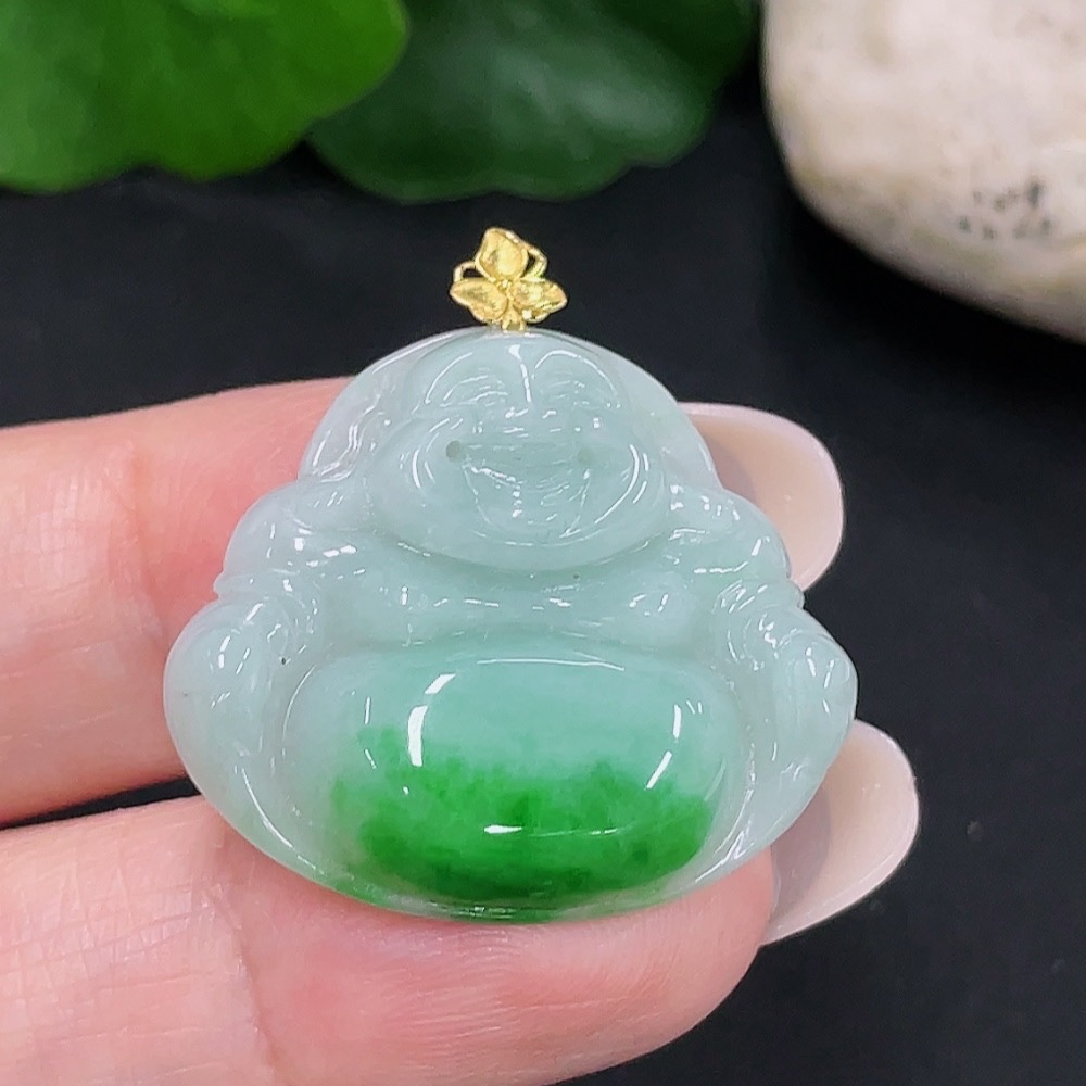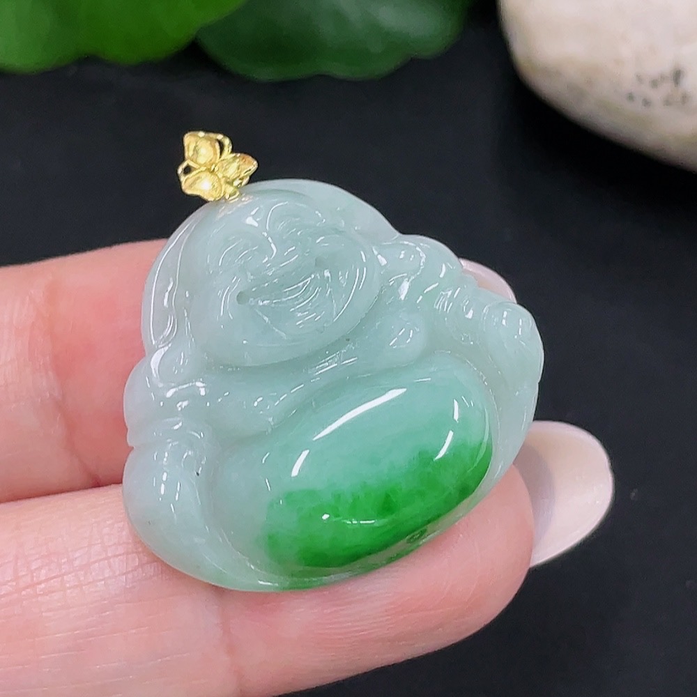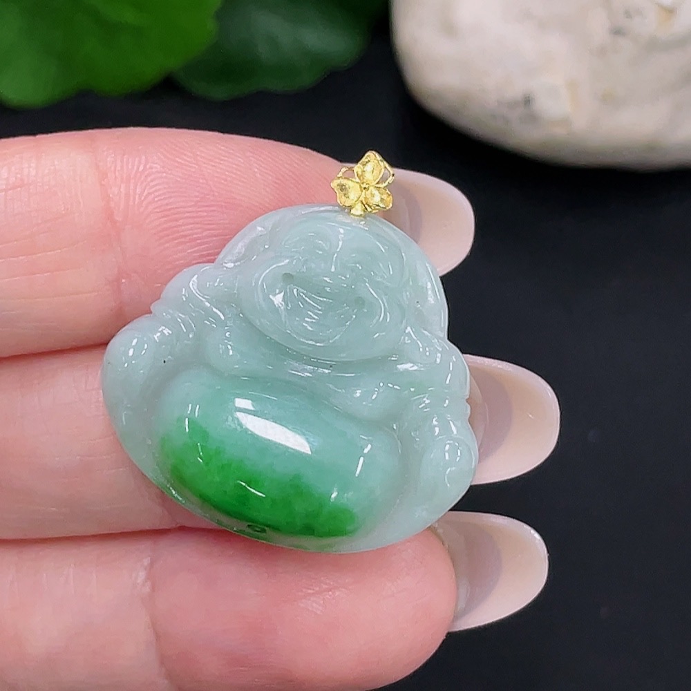 Jadeite Buddha Pendant, Total Weight Approx. 5.79g, 18K Gold Clasp